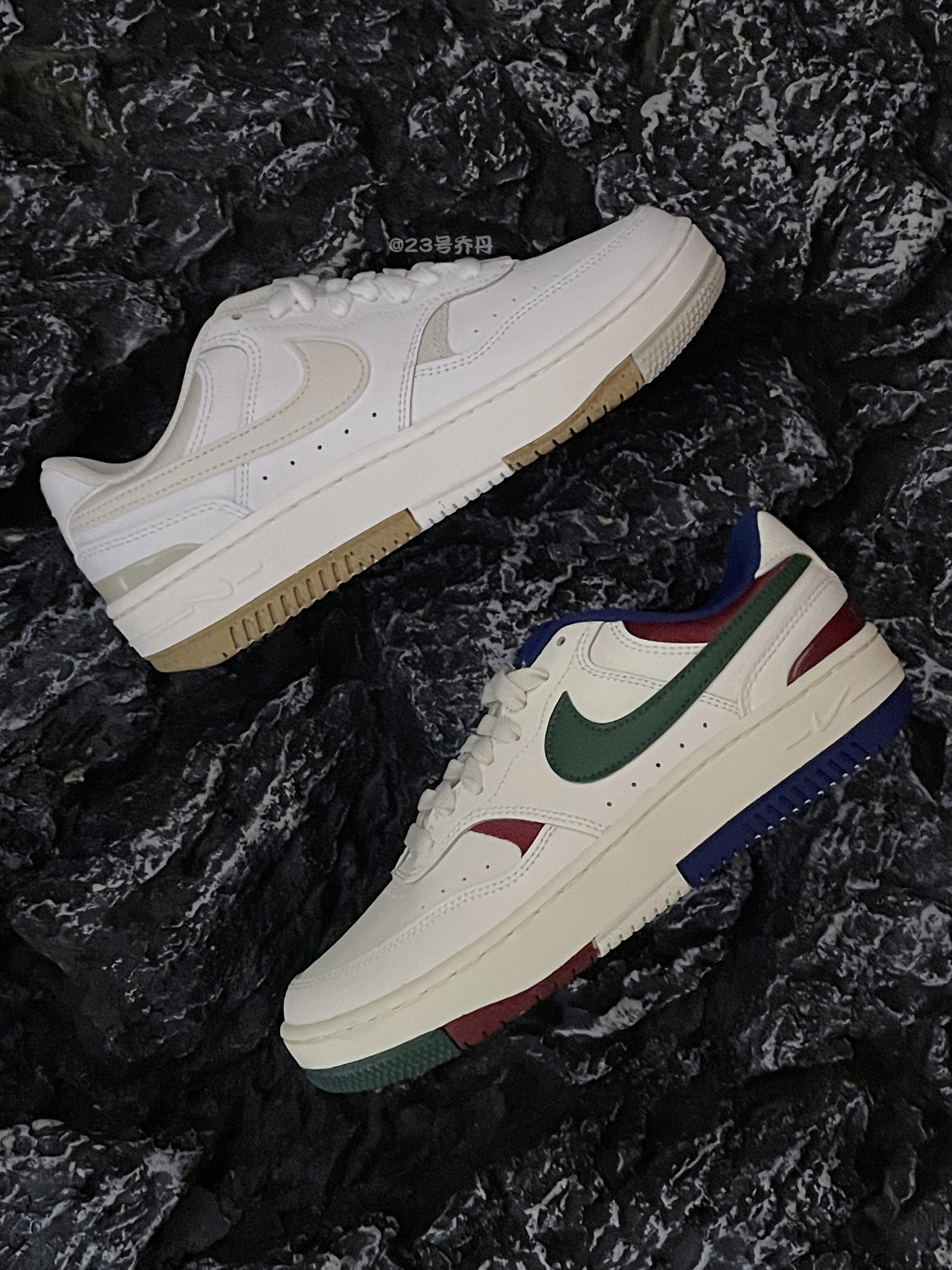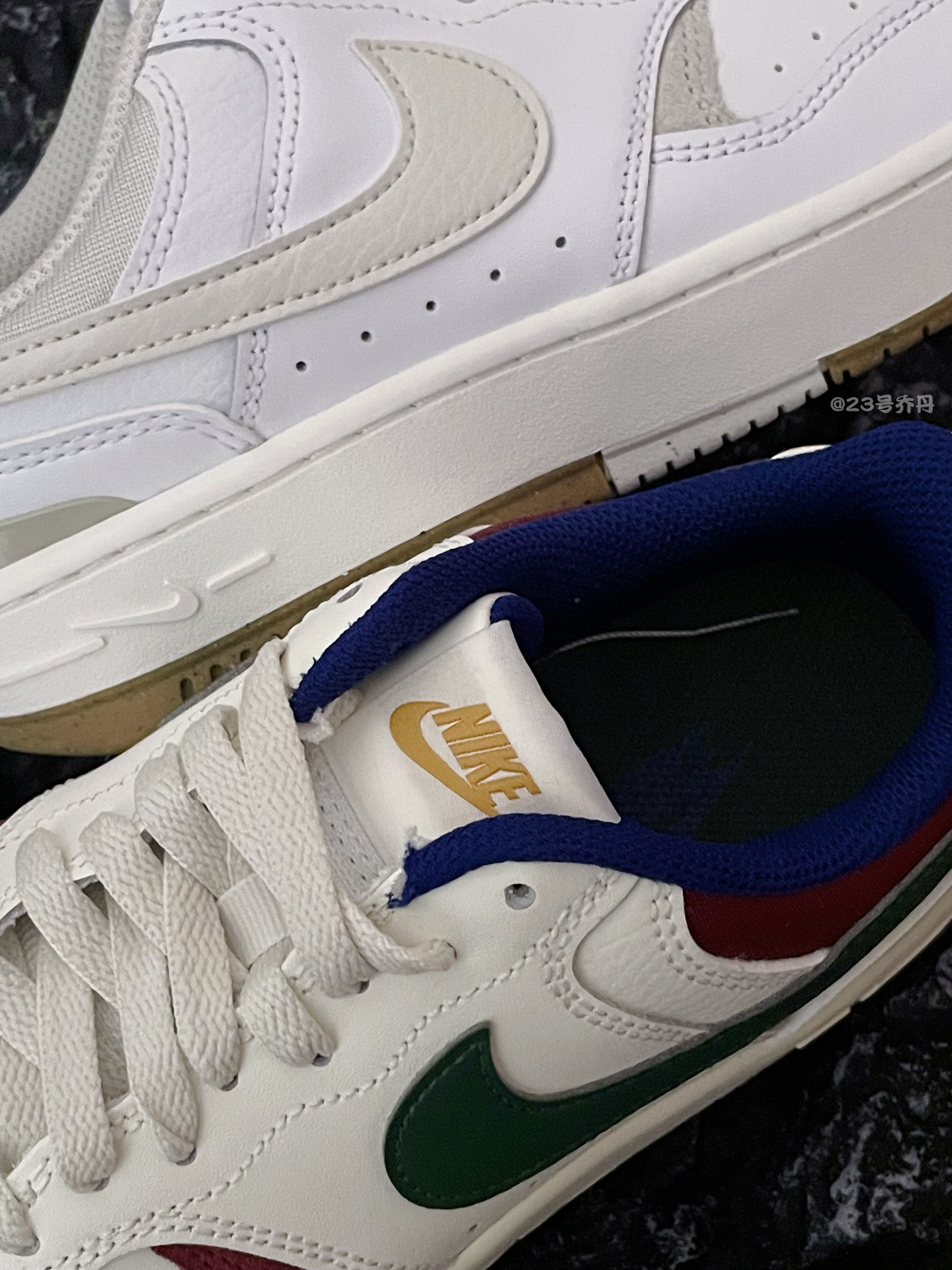 今天给大家分享两双颜值和性价比都不错的 Nike Gamma Force『白绿蓝』&『白米』板鞋👟 🌟『白绿蓝』采用了白色/墨绿/宝蓝等搭配 米白色做旧的中底和多色拼接大底收尾 🌟『白米』则由白色和米色为主色调 米白色的中底和白灰棕的橡胶大底收尾 鞋面均选用了易于打理的光滑皮革材质 并且呈现出了多层次的拼接效果 鞋头的透气孔使用了全新的排列方式 鞋舌与鞋尾均设计有品牌Logo...
