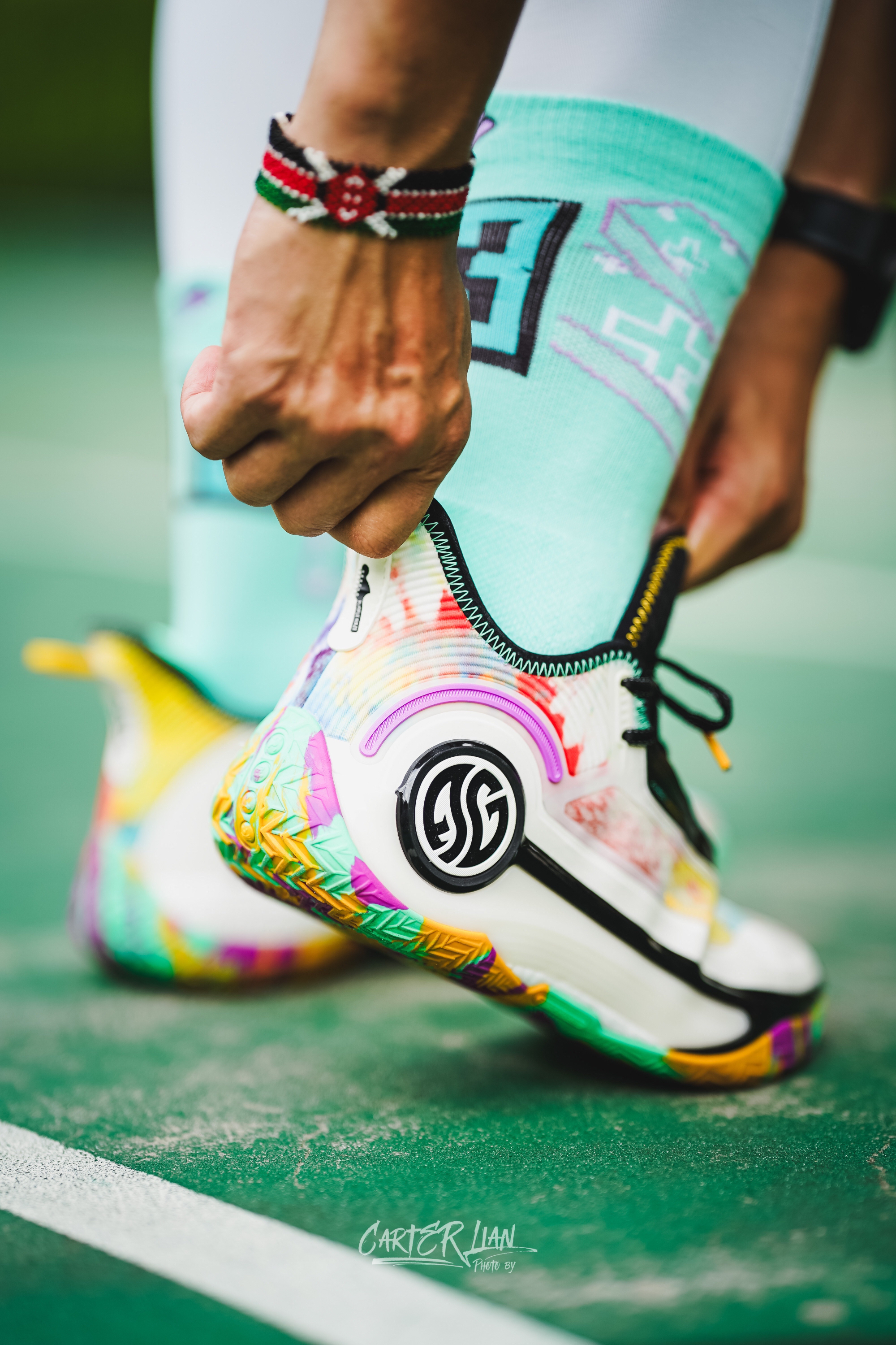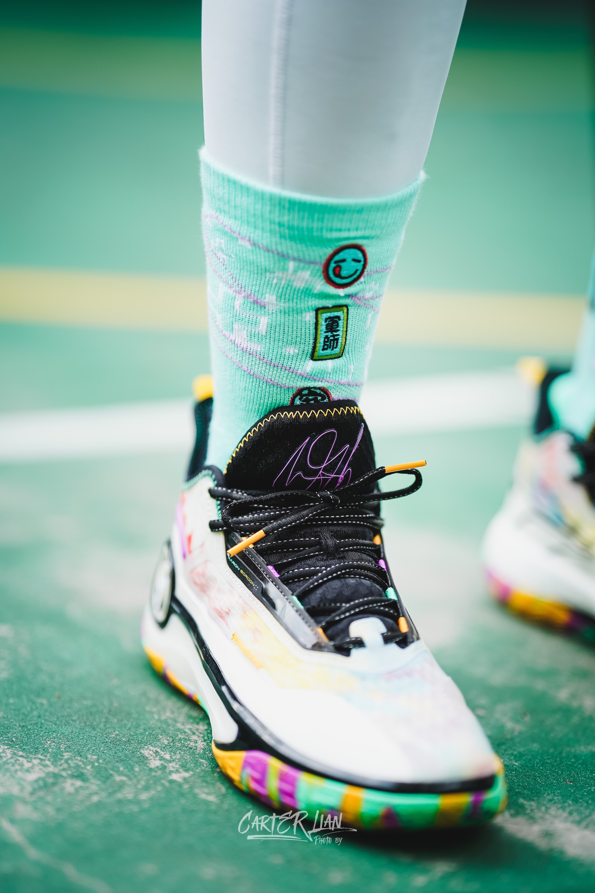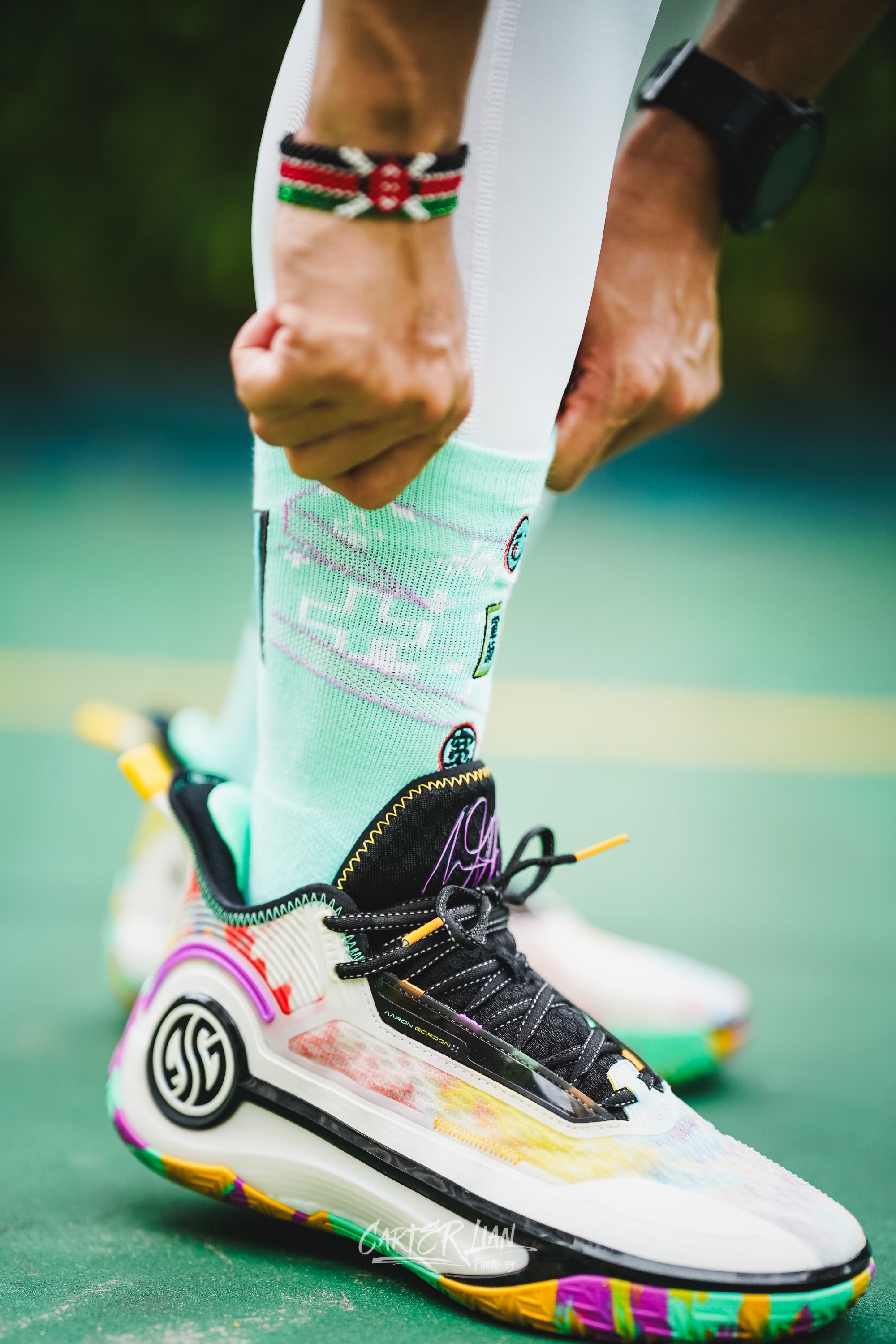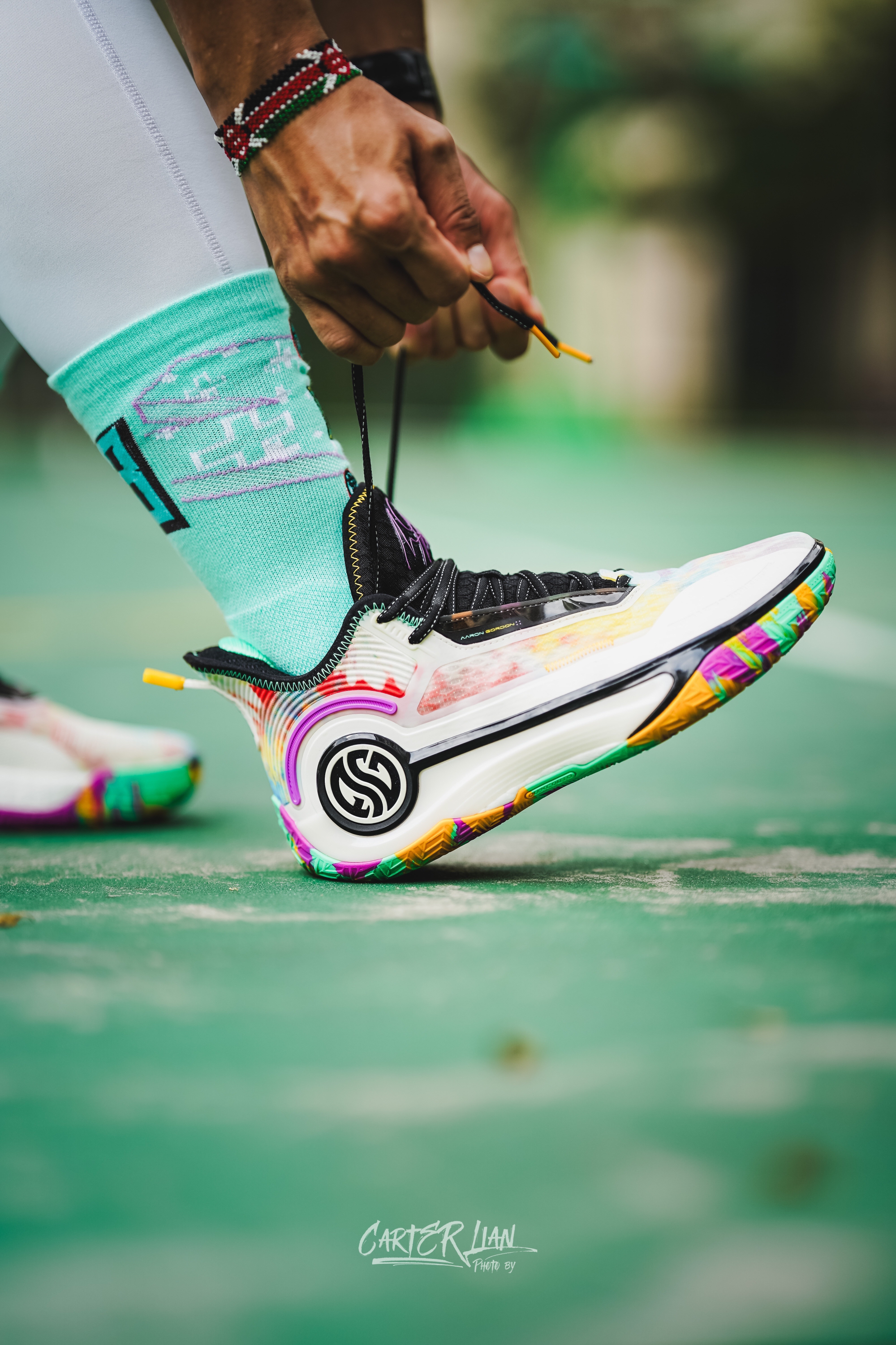 最近戈登中国行应该没啥看到阿隆戈登上脚AG4了,配色上这双吉他之神整个配色上还是非常丰富的,鞋面和鞋底都是非常多彩的配色,后跟上还有一把吉他🎸的造型。 重量上整双鞋比之前AG系列算是来了一次大瘦身,单只42码重量已经控制在了389g左右,鞋面的双曾禅综材质,鞋面强度是可以的,缓震全掌CQT碳临界材质,脚感韧弹,重心前掌降低了,搭配面积可观前叉尼龙推进板,让你再启动中前掌有助腿的感受,后掌的缓震上...