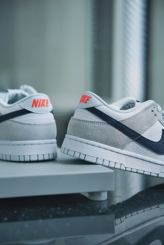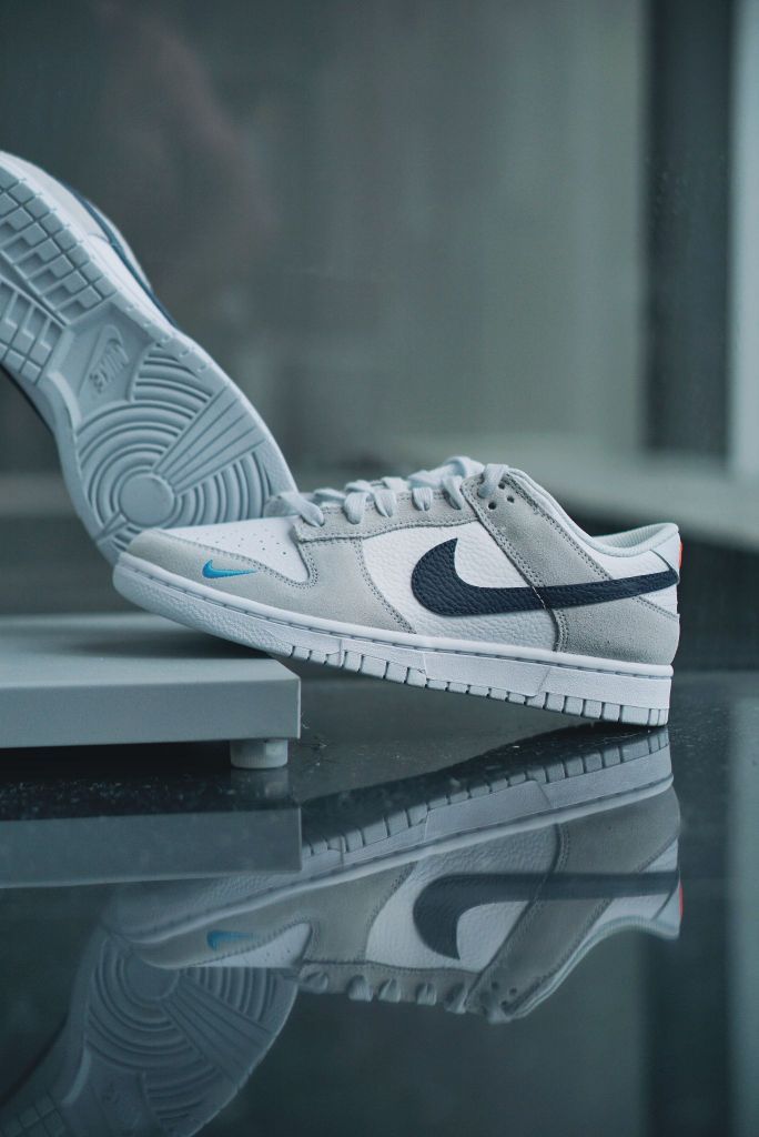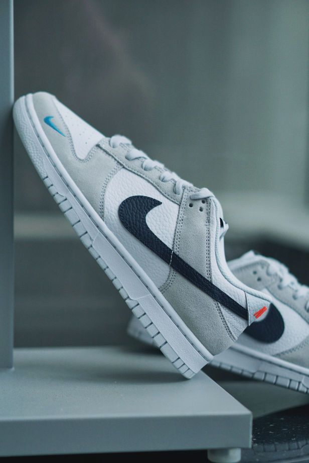 之前分享了一双黑白灰的mini swoosh dunk,确实让人很喜欢,这双灰麂皮版本的又来俘获人心了。 设计上还是采用同样的设计,在鞋头外侧放置类了一个小小的Nike logo,很精致,也给鞋子增加了细节。 鞋子采用灰色麂皮➕白色荔枝皮的组合,肉眼可见的质感很棒,穿上脚的舒适度也会提升很多。藏蓝色的swoosh和红色的刺绣来做点缀,让整体不单调。整体看上去十分和谐好看。