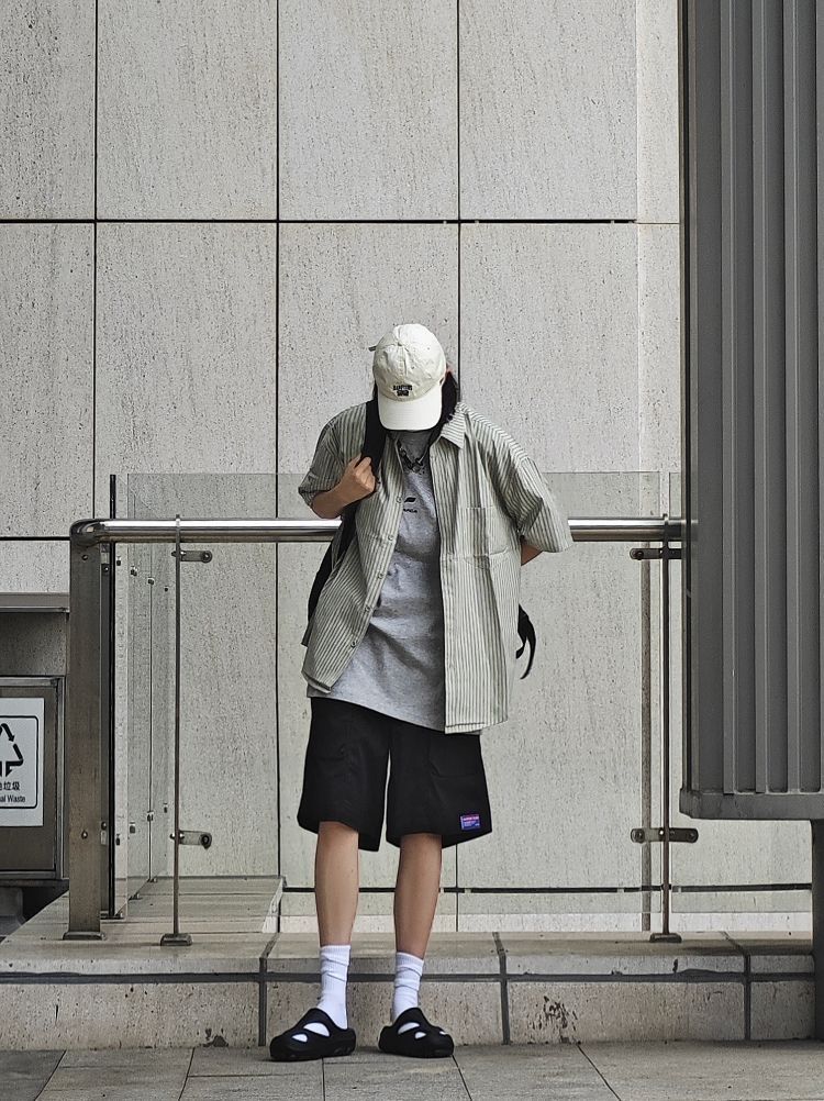 大家好,这里是舟粥 165/53kg 衬衫可以说是衣柜里必不可少的百搭单品之一🌵 无论是叠穿还是单穿都很酷✨ 而且自带少年感 很适合开学的天气☁️ 而且简单好搭配,早八套上就能出门🚪