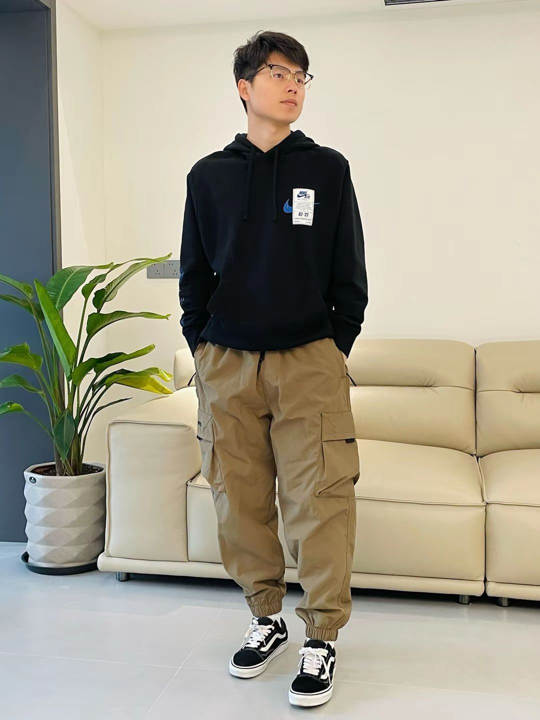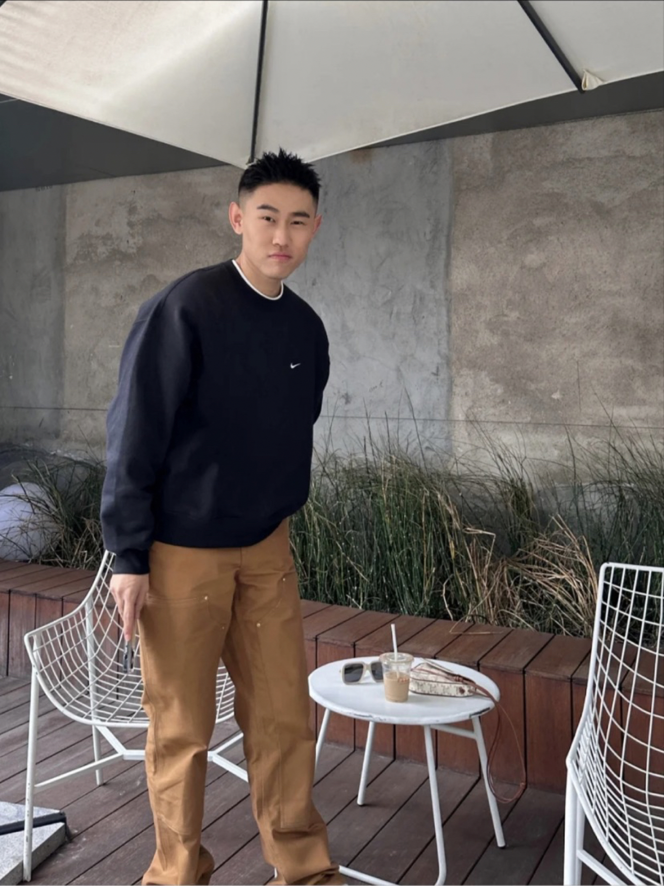 🆒卫衣是内里是加绒的,很厚实,抗风一级 我穿的是Xl码,属于比较宽松的版型 🆒小勾标款,基础款不会过时! 颜色的话不是单纯的黑色,有点石墨黑那种感觉 🆒袖口和下摆都有收口,很适合秋冬穿 图源自博主时尚禁穿6OF