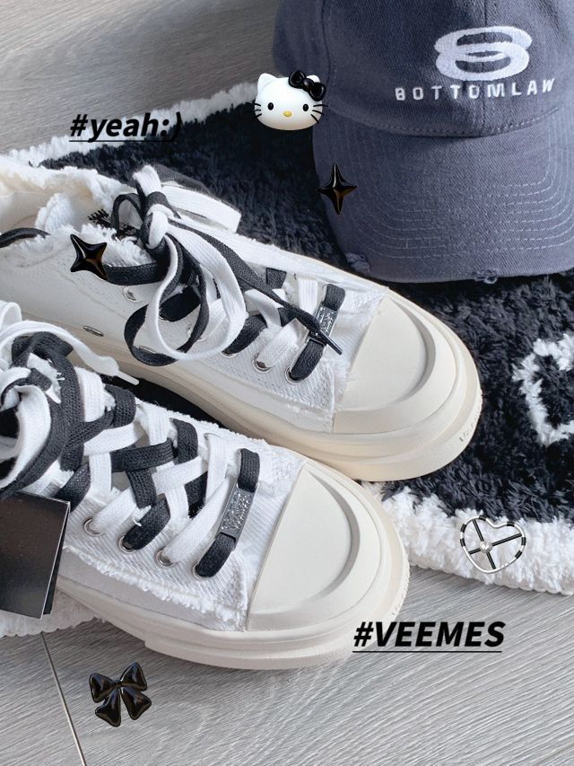 #VEEMES月牙白系列 喜欢小白鞋的真的不能错过这双 米白色自带氛围感怎么搭都不会出错 尤其是喜欢破坏感设计的宝子们! 双色鞋带太好看不过了!真的太特别啦! 还有一点增高效果让你在姐妹中“凸”出来哈哈 最重要的是巨巨巨百搭! 四季都很需要这样一双小白鞋! 🏷️:VEEMES