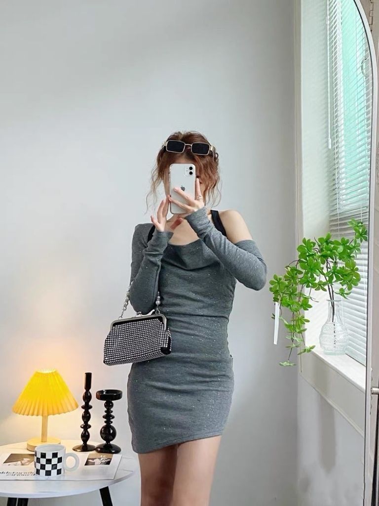 穿搭公式:墨镜🕶+连衣裙👗+高跟鞋👠 秋天如何当辣妹?这条连衣裙就能搞定,这种修身版型,能很好的显现身体曲线,使你更加出众,在人群中眼前一亮 这款面料使用闪闪亮片做点缀,日常或者出席活动穿都很好看,有魅力