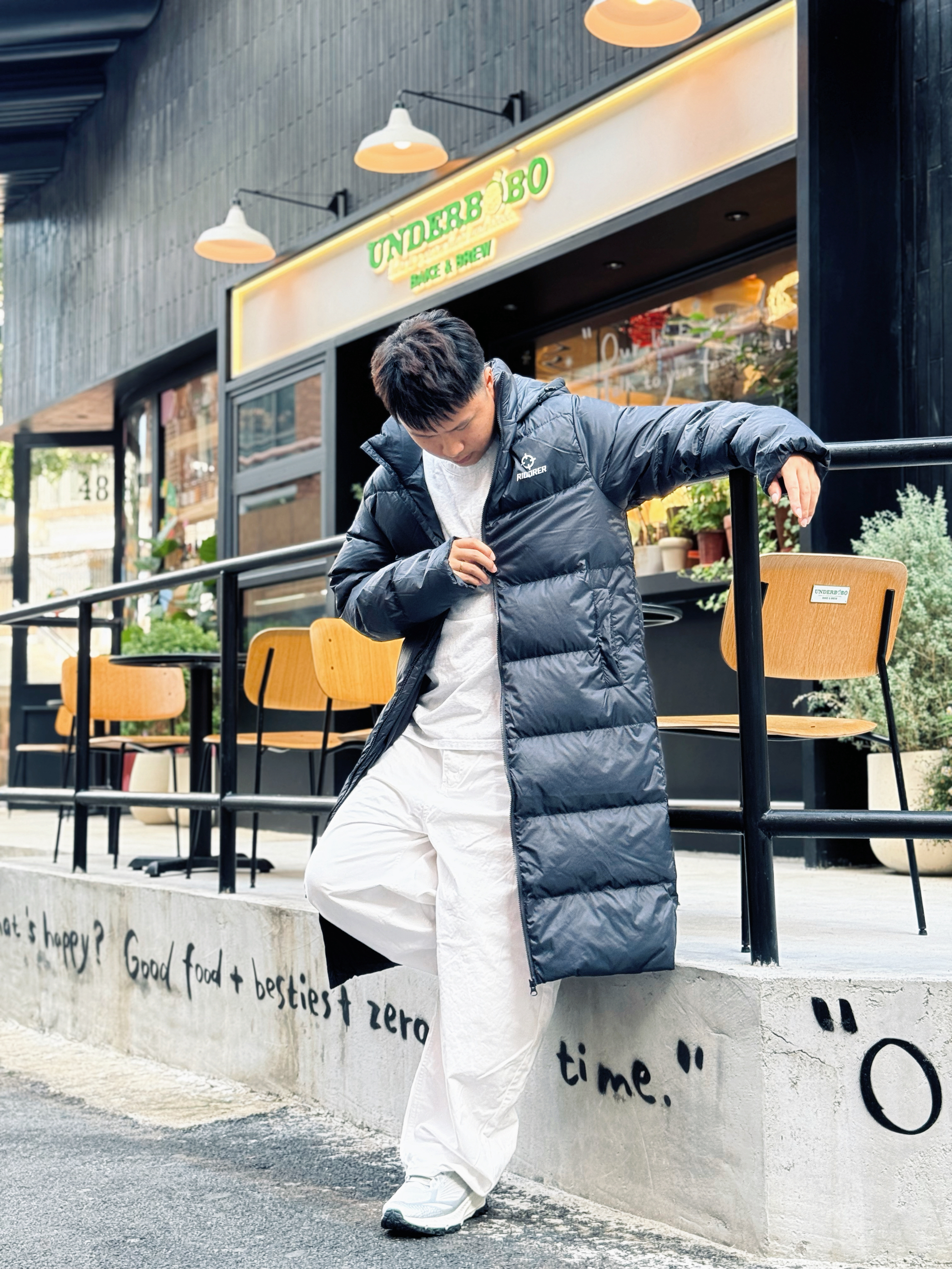 穿搭公式:长款羽绒服+休闲裤+运动鞋 这款墨绿色的羽绒服相较于大众的黑白羽绒服来说更加新颖出众,而且颜色较深,颜色有易弄脏,比黑色的更容易吸毛 整体版型较长,可以到大腿中间的位置,保暖效果很好,风大的时候可能会进风