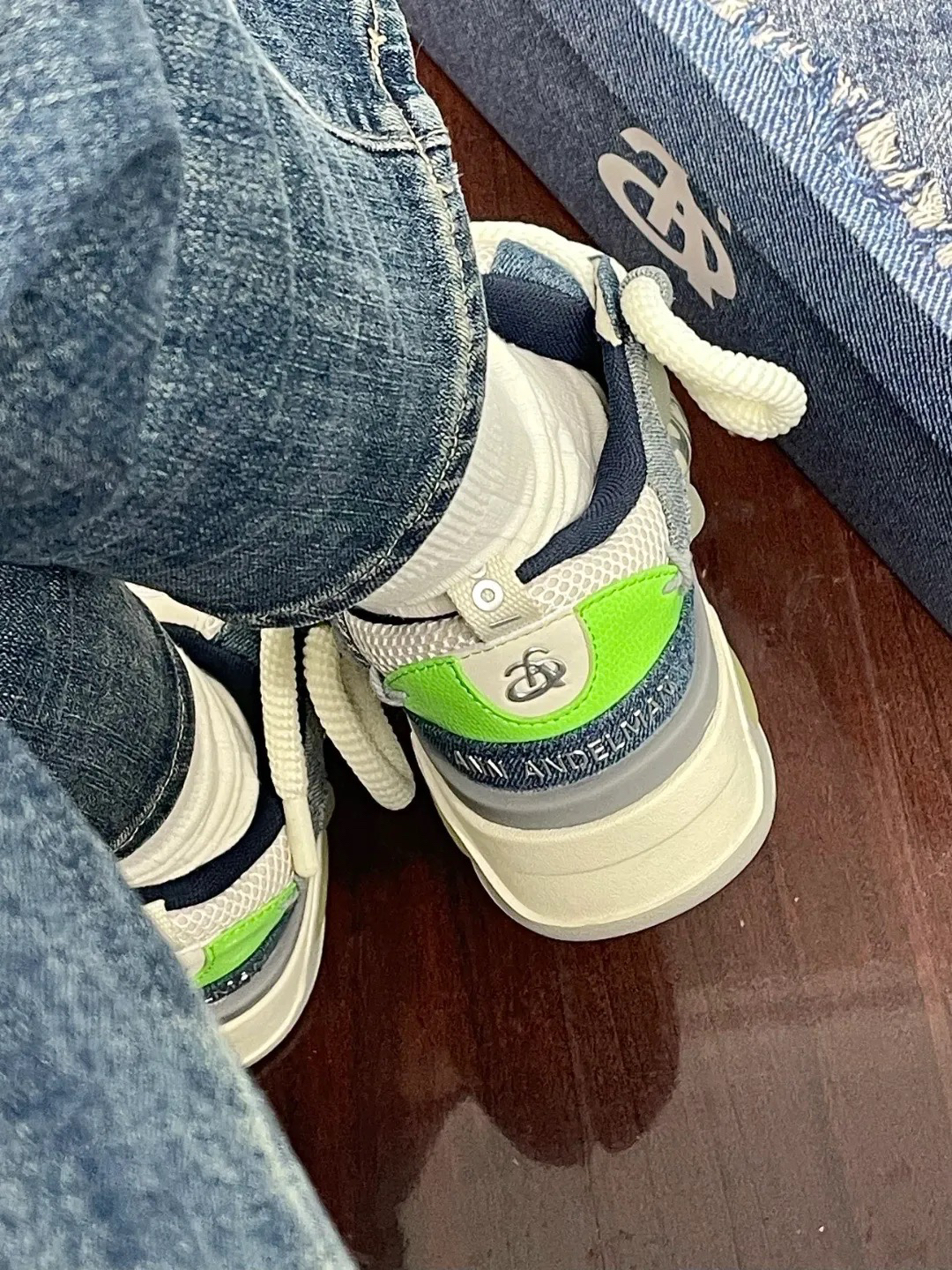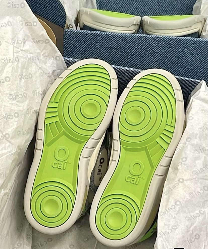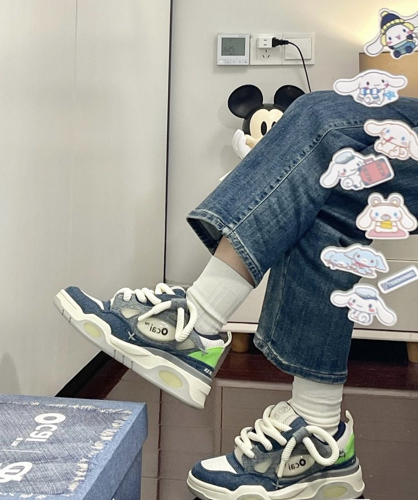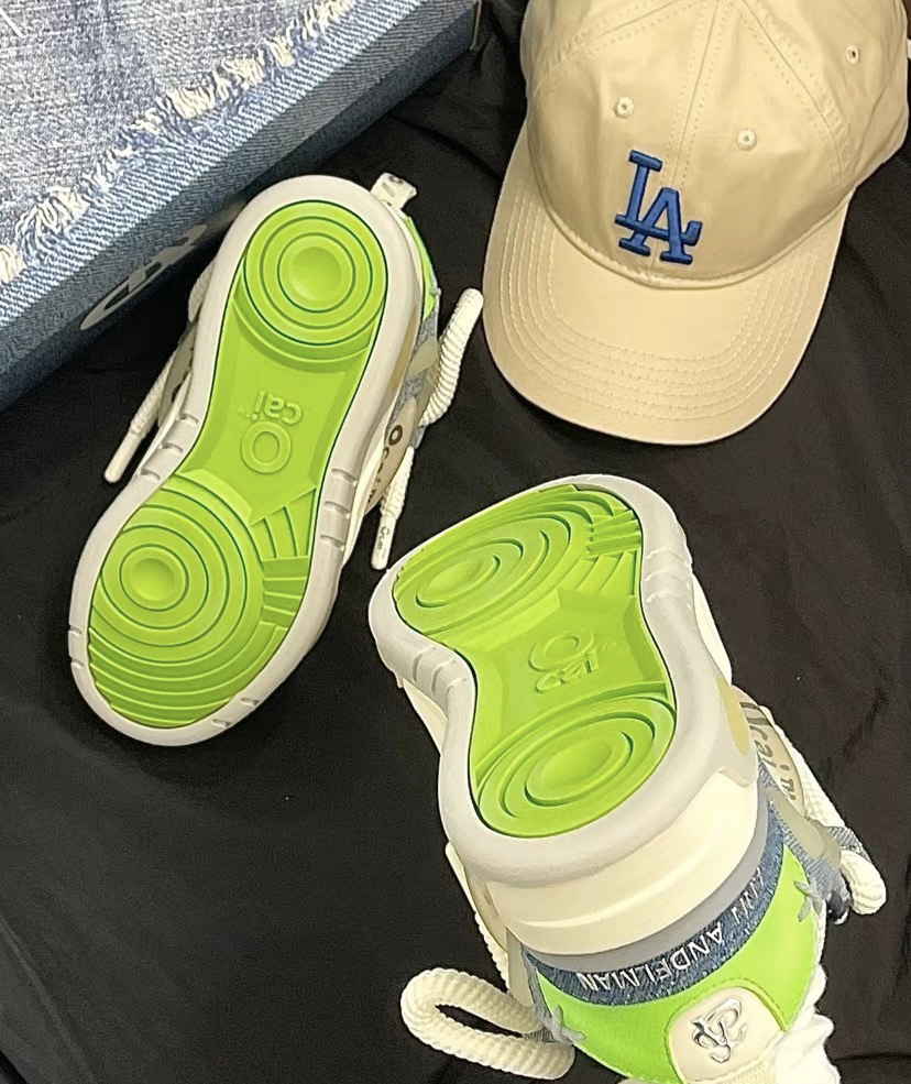 笨笨的面包鞋泰乖了吧🛹牛仔蓝搭配绿色的鞋底 就还挺酷的!穿这双应该得翘着脚走路吧 不然别人怎么看到这么好看的鞋底呢 比较厚实微重一年四季都能穿✌