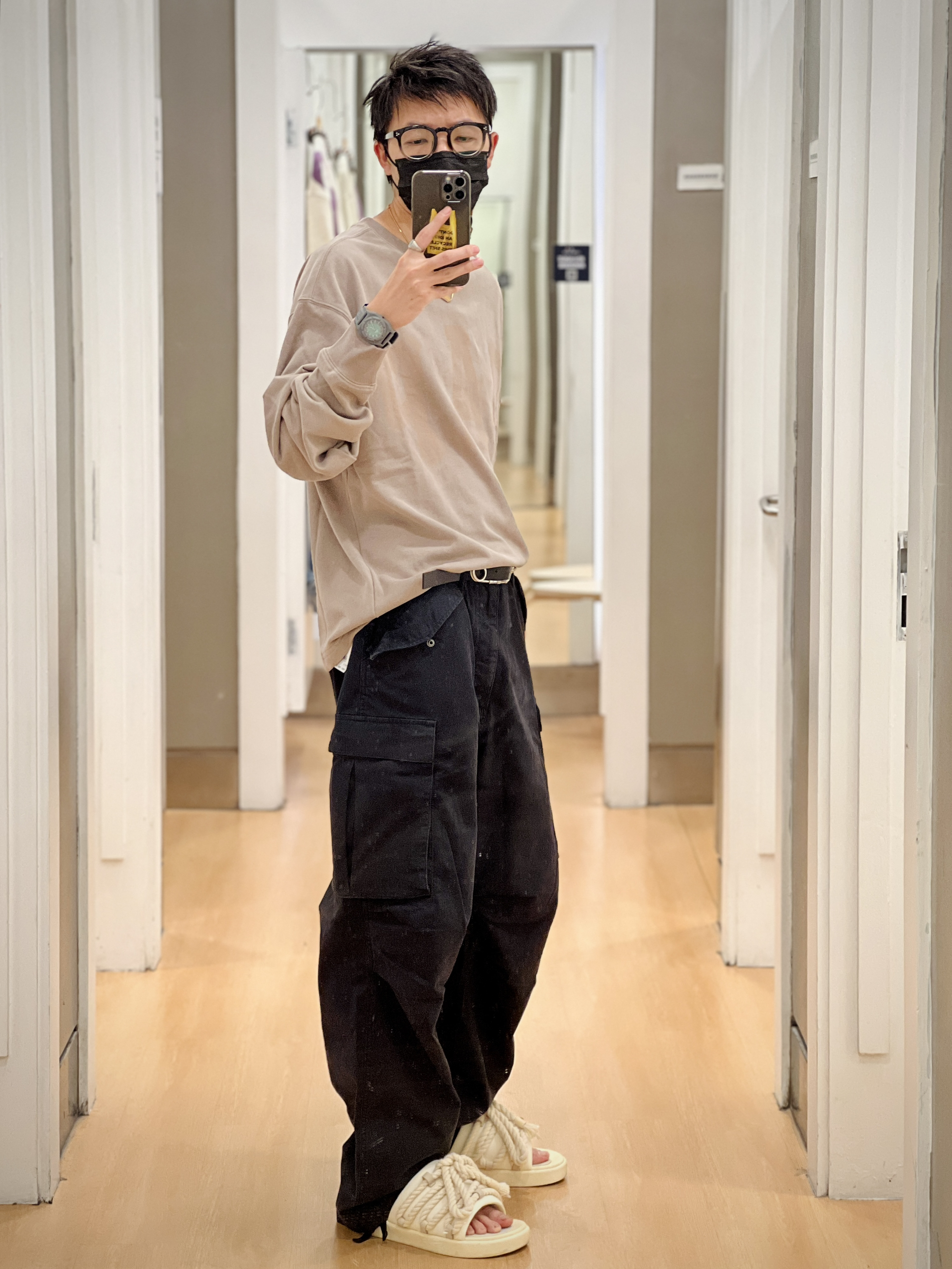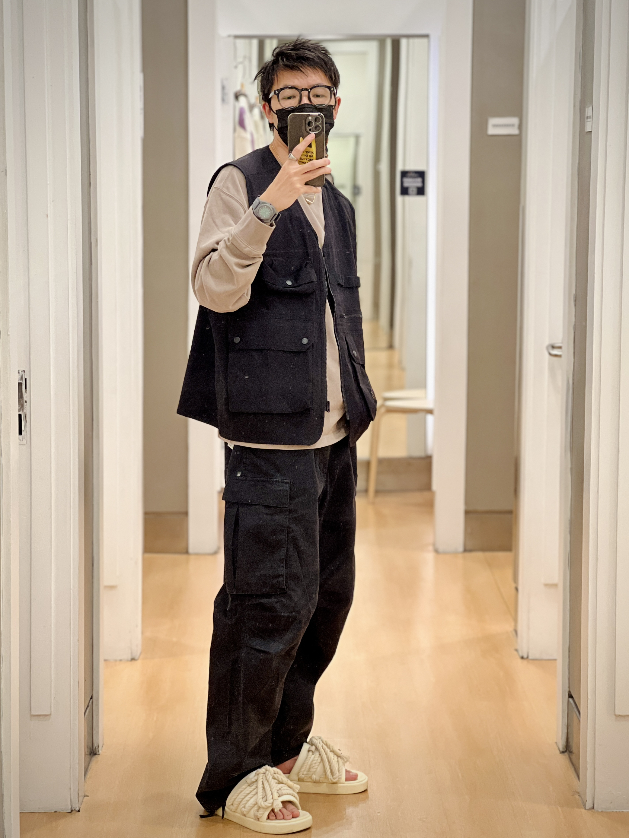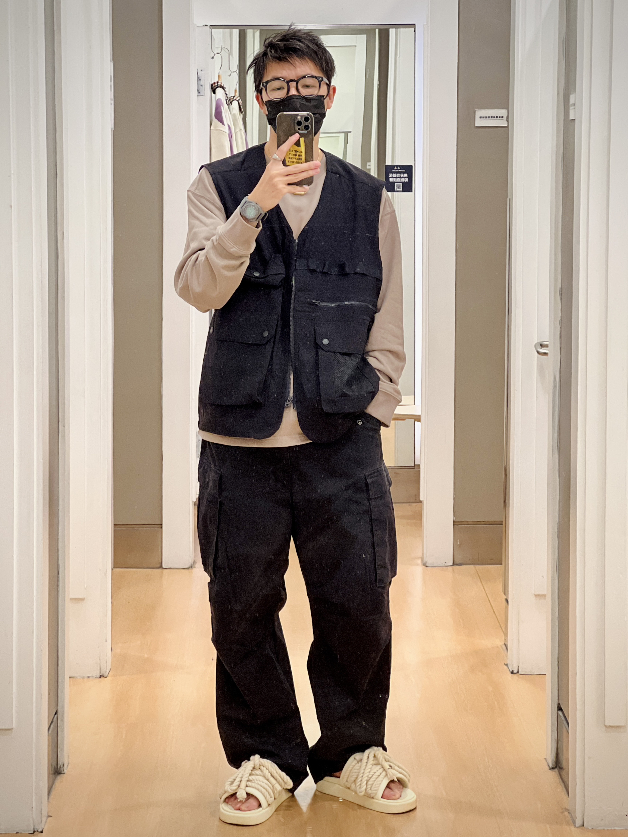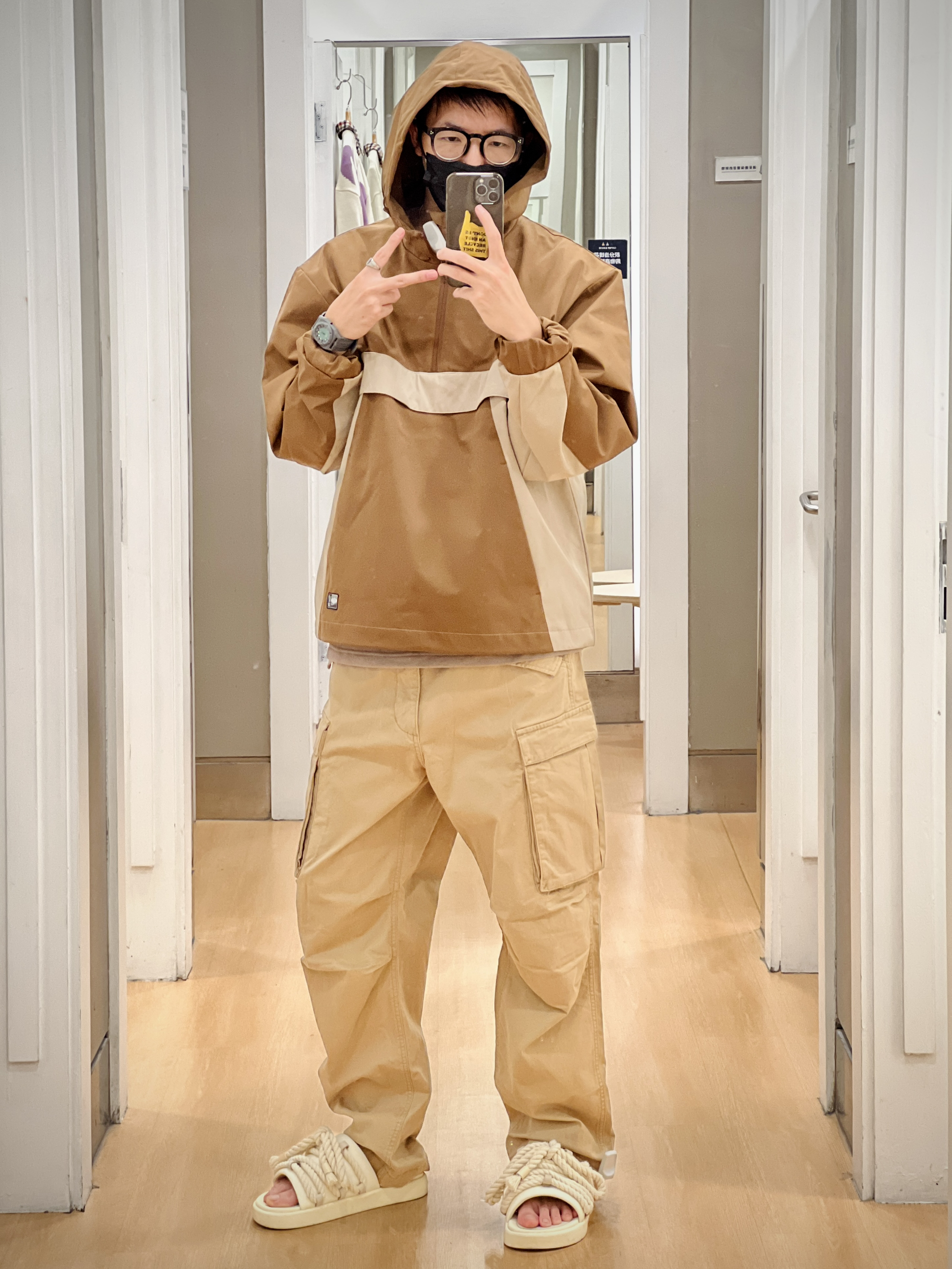 相较于其他今年大火的伞兵裤 GAP这条裤子在版型上类似 却在面料上用了更厚重的面料 更硬挺廓型更适合秋冬穿着 无论是城市机能风还是户外山系 风格都能轻松拿捏🫴 搭配简单的T恤也非常好看 我试穿了两个码供大家参考 👦🏻:180/65 🧥:798800 XL 👕:837500 M 🦺:841547 L-XL 👖:745023 卡其31、黑色32 🩴:足下工业