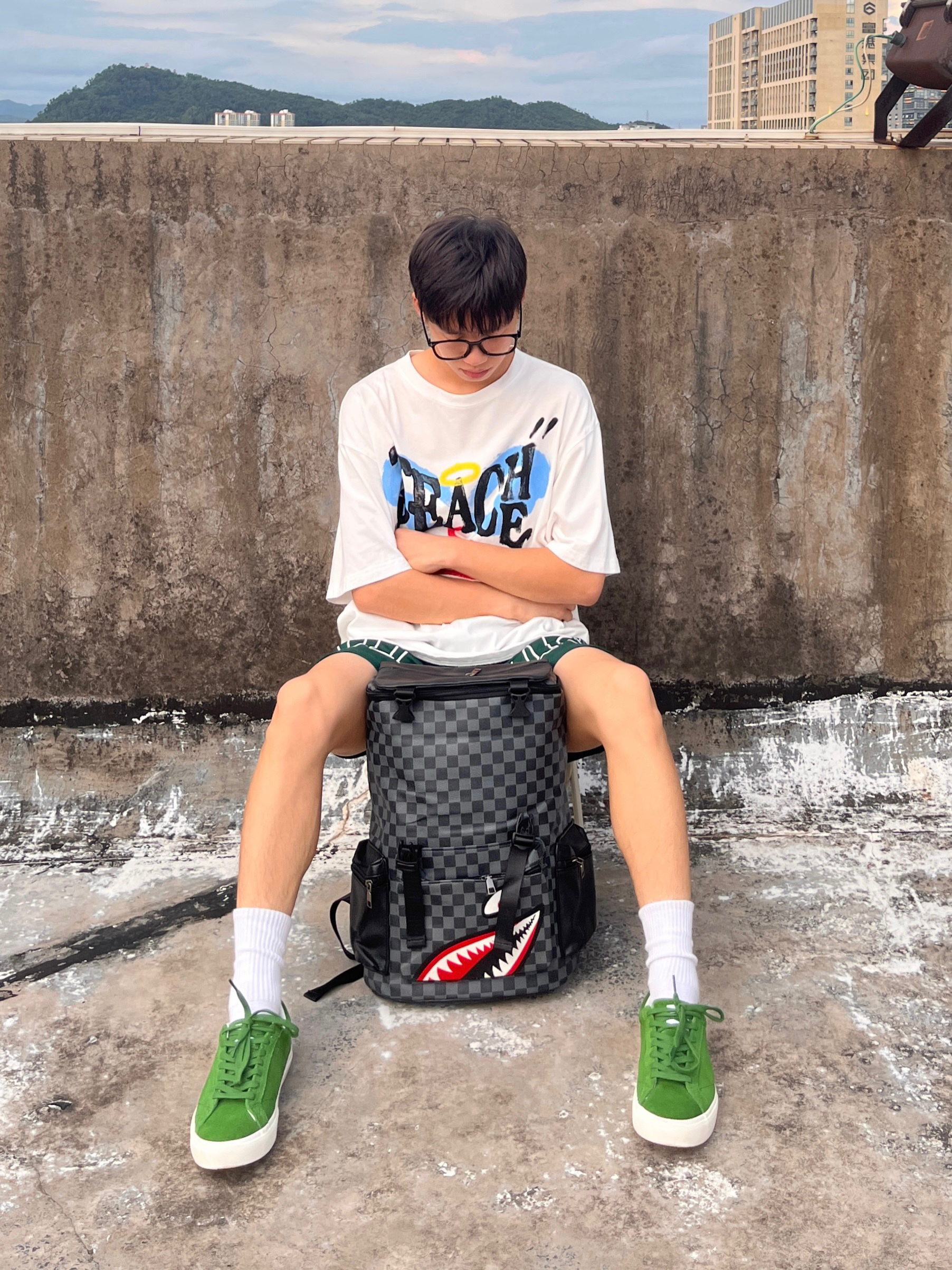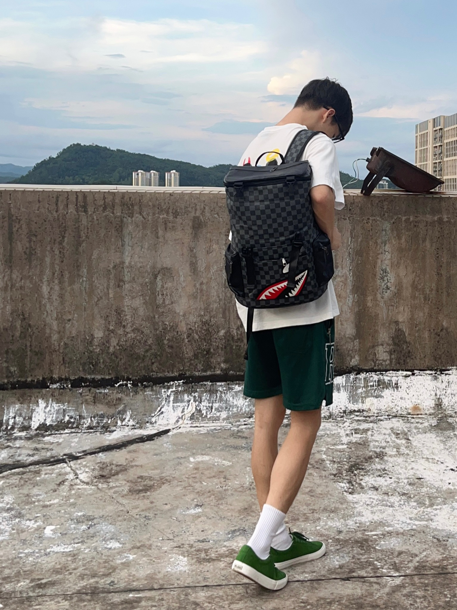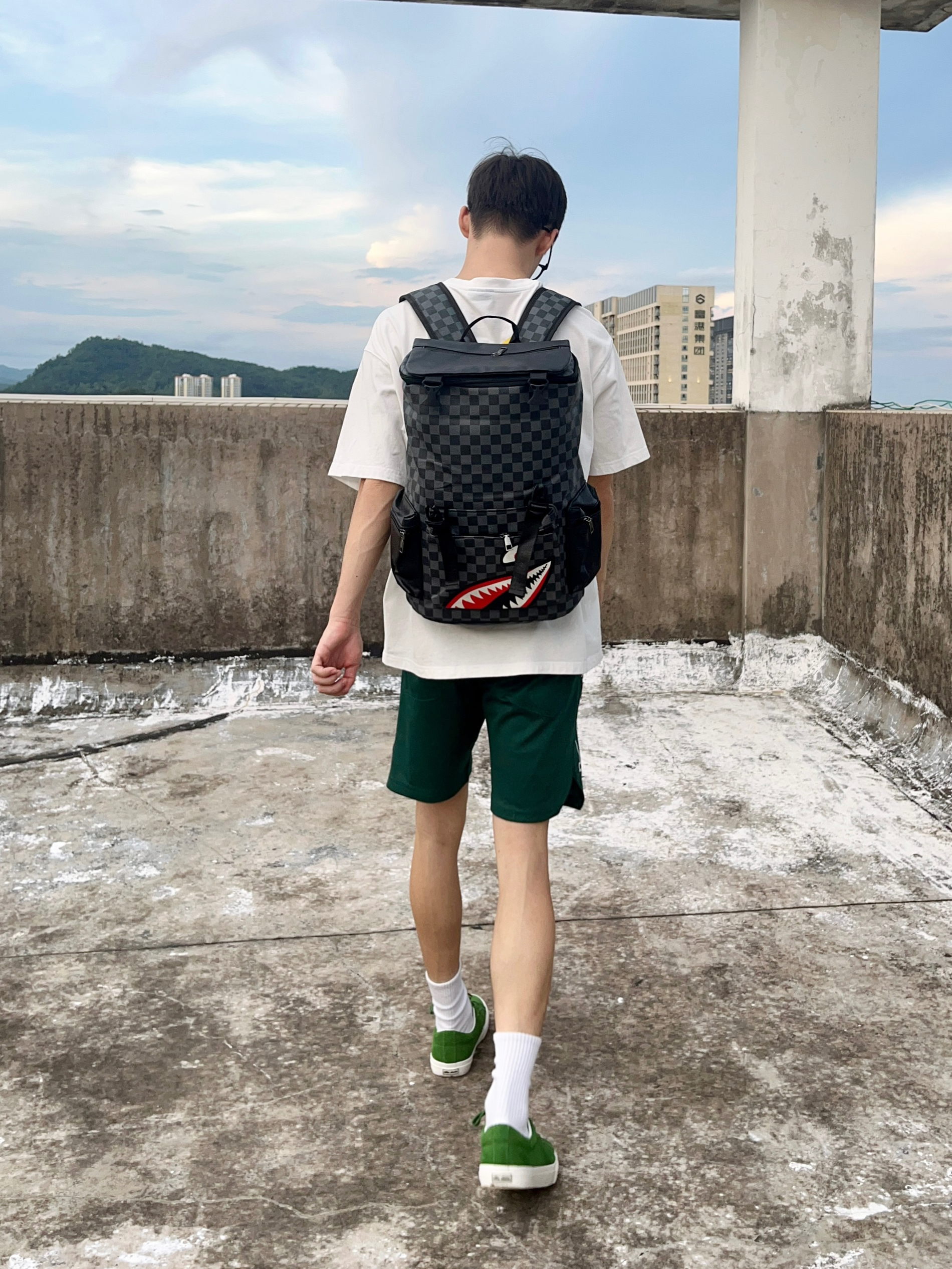 即将开学 那么一款好看中意的书包必不可少 秀乐途/SURELAPTOP 家的这款棋盘格双肩包就非常nice 鲨鱼🦈图案印花潮流时尚 采用皮质材质 背上后柔软舒适 内部容量也很大 无论是上课装课本📗笔记本💻还是日常出行都能满足