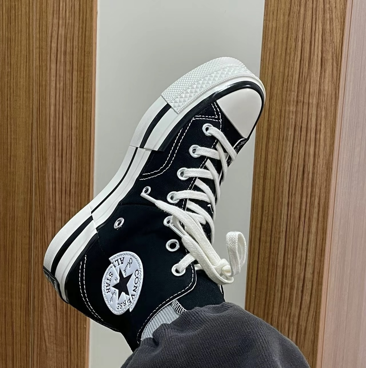 鞋面采用绒面革和涂层皮革,增加舒适感 😊,灰白配色,简约大气有质感,鞋子侧面还加了金色三叶草Logo 🍀,增加复古时尚感 😎。这款经典鞋系带设计,同时还保留了Forum标志性踝部束带,不喜欢魔术贴的话,这款也是可以随时摘掉,没有魔术贴上脚也很好看哦 👍。