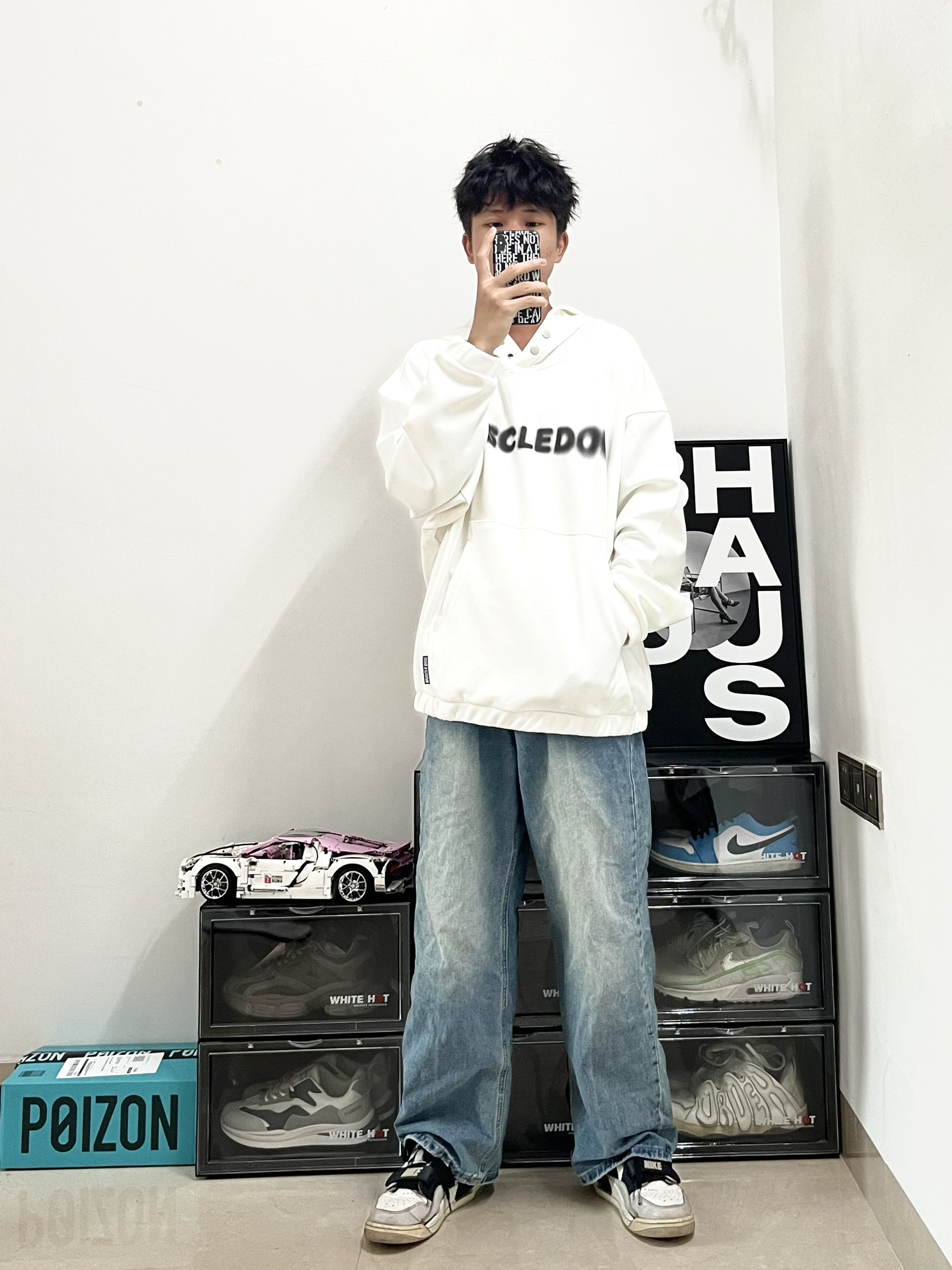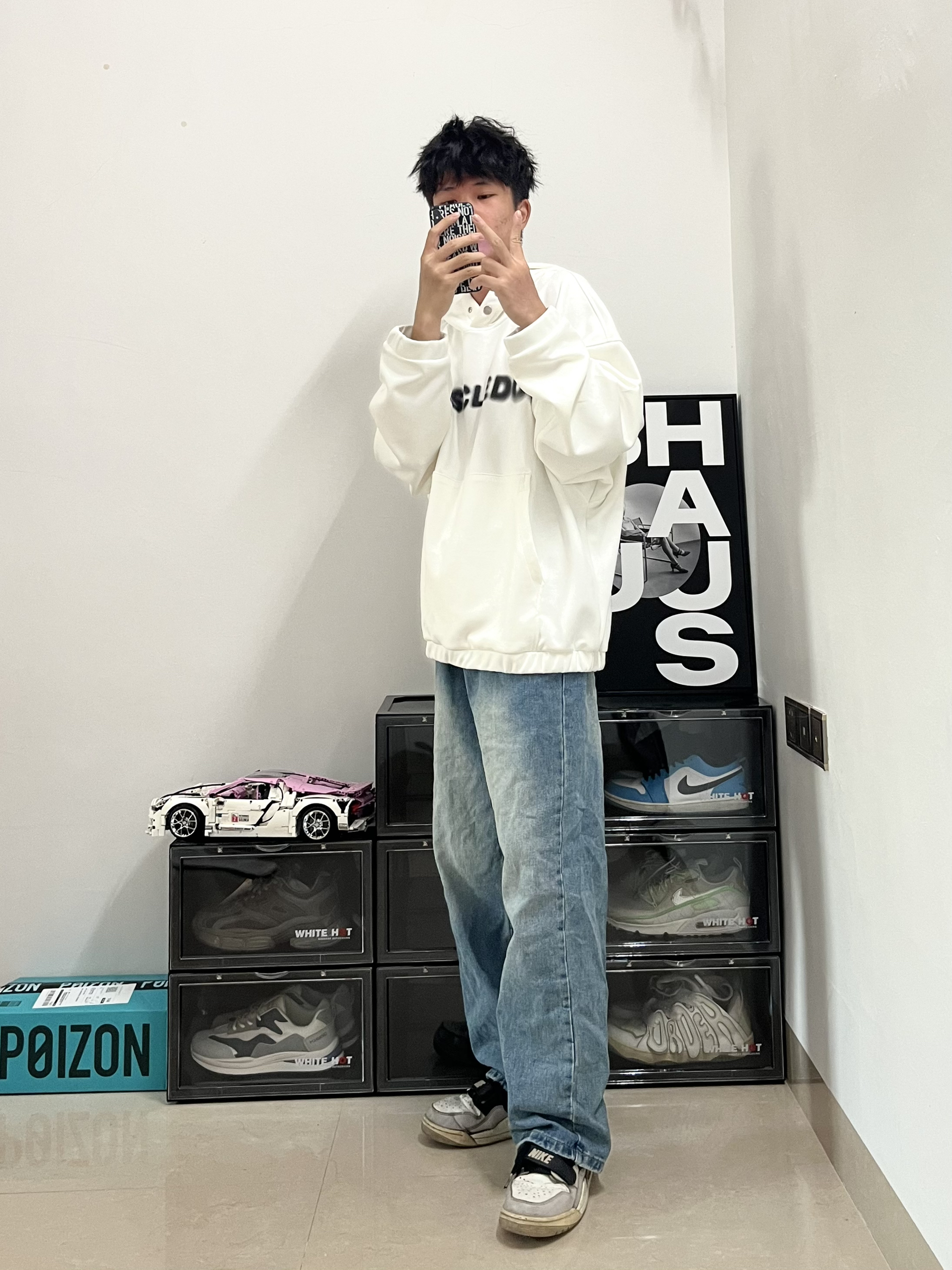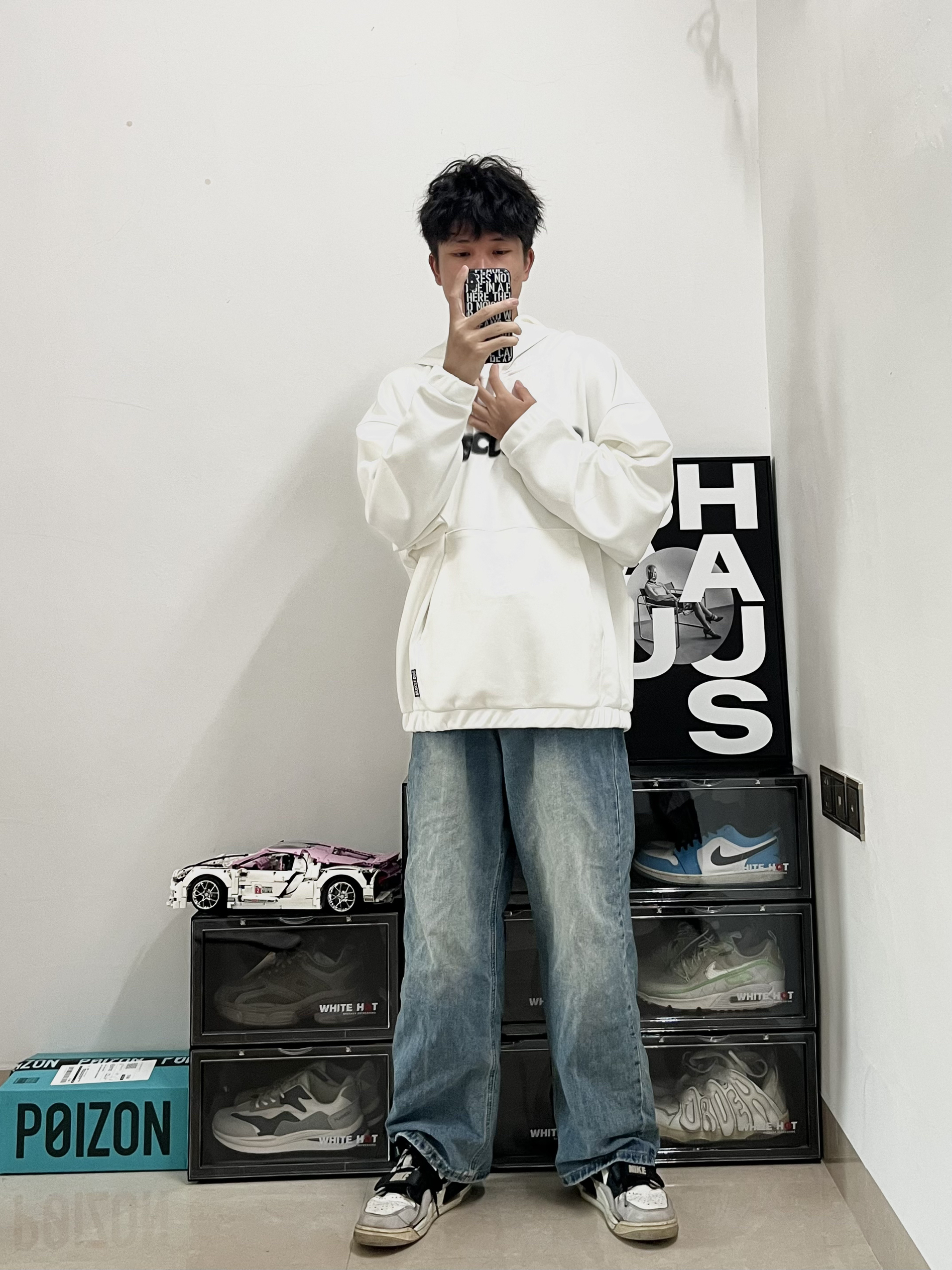 哈咯 识货的小伙伴们! 这一期给你们分享一套我的日常穿搭💗 👔:衣服是来自肌肉狗 家的纯白色卫衣,材质毛绒绒的,穿起来很舒服,摸起来手感非常的好🆗 这件卫衣也是非常的百搭,随便穿都好看❕ 👖:裤子是来自:Voguo Relay水洗拉链宽松直筒牛仔裤,这个水洗感真的很好看,今年买的最好看的裤子啦,很喜欢💕 👟:鞋子是Jordan 三合一 经典款式,性价比高高高 四季都可以穿! 👕:Muscle ...
