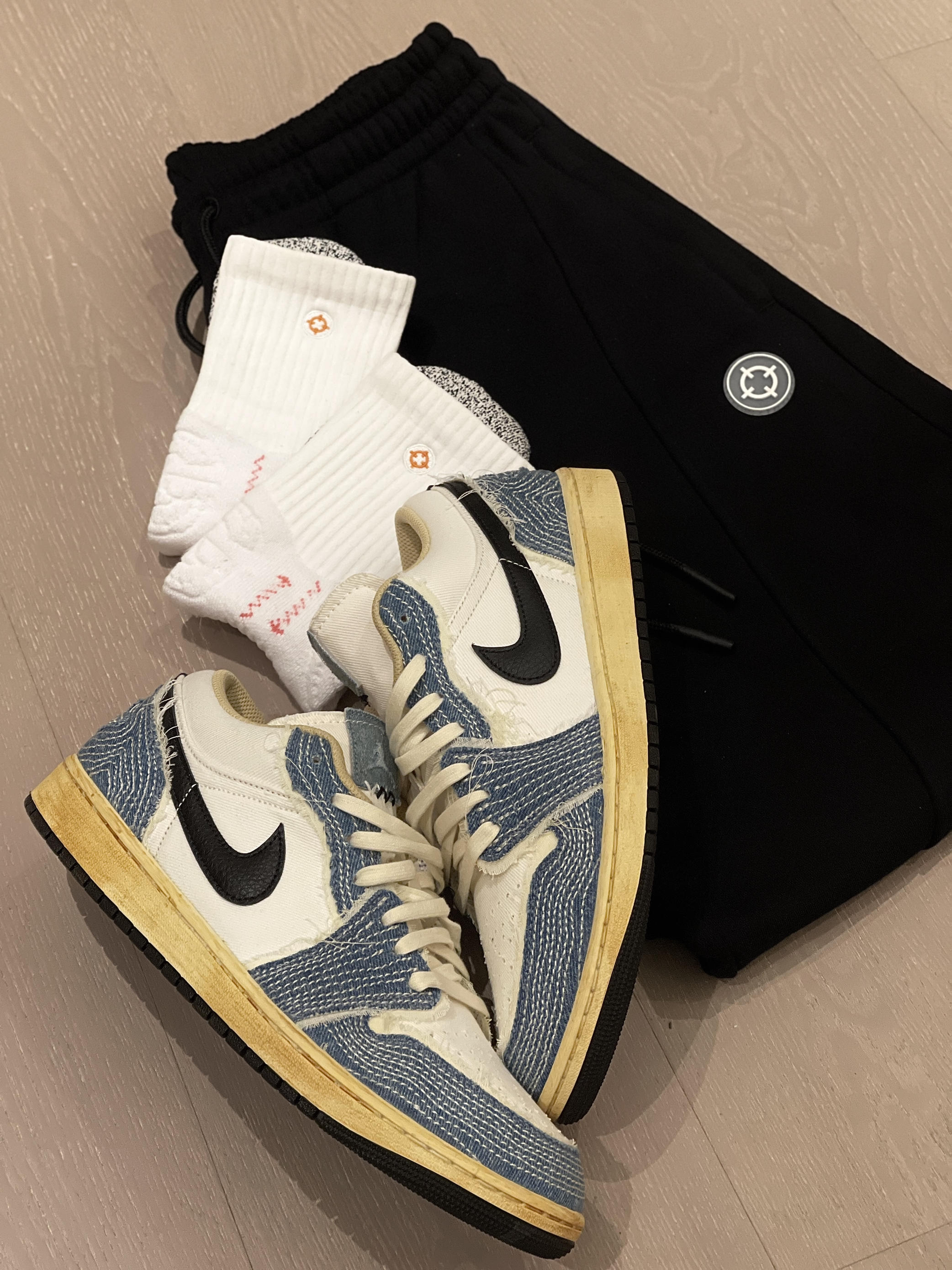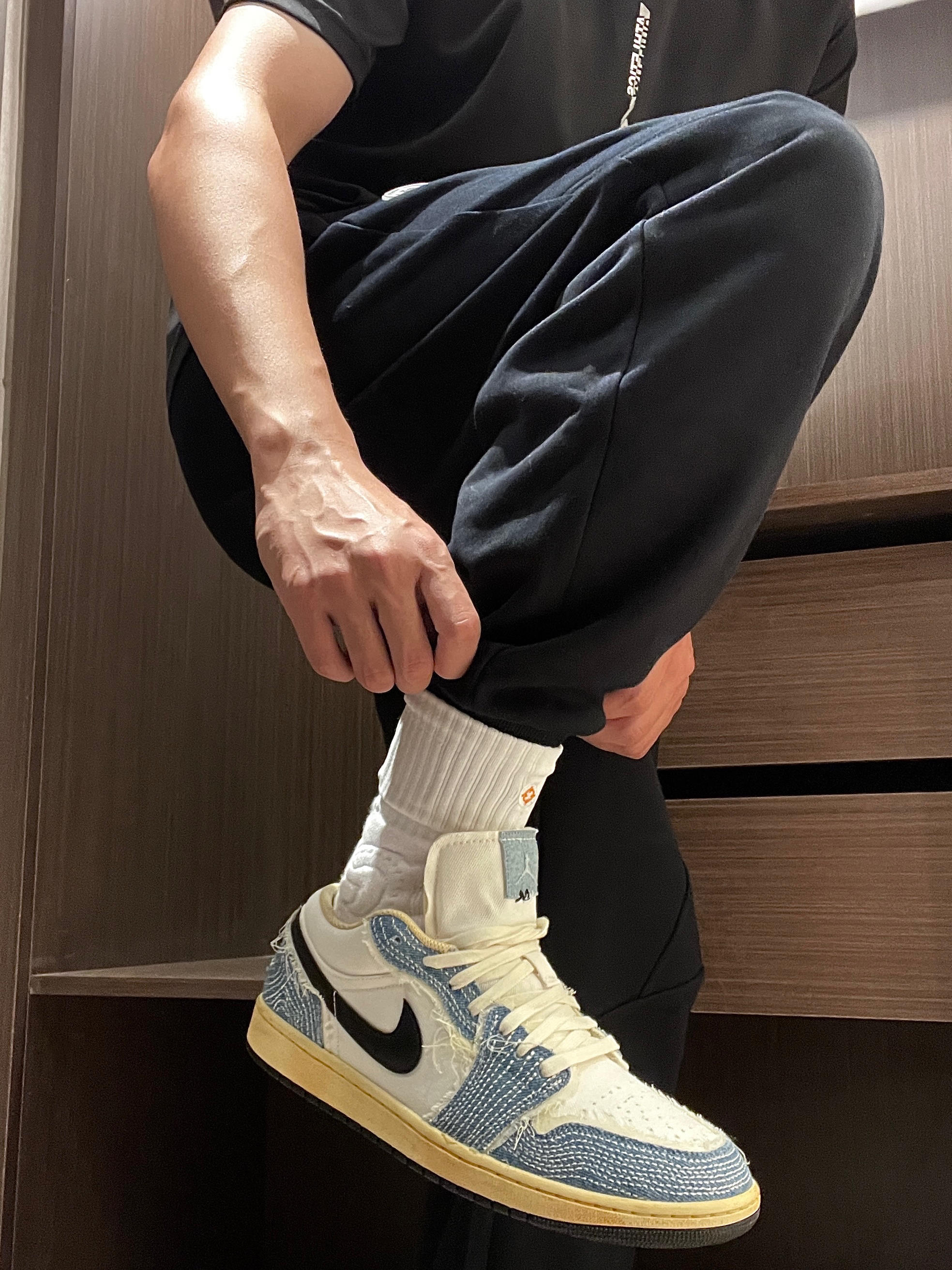 一场秋雨一场寒,天气越来越冷啦,入秋的第一条卫裤安排上!😍 简单宽松舒适卫裤➕最新发售的Aj1Low,轻轻松松拿捏秋季穿搭氛围感~🤩 👖:RIGORER 射线系列束脚针织运动长裤,立体准者logo,口袋处有拉链设计。裤脚收口设计不漏风,裤子缝线紧密,保暖效果很棒~ 👟:Air Jordan 1 Low 百搭低帮复古篮球鞋“白蓝黑”,复古做旧的效果,适合秋季穿搭~