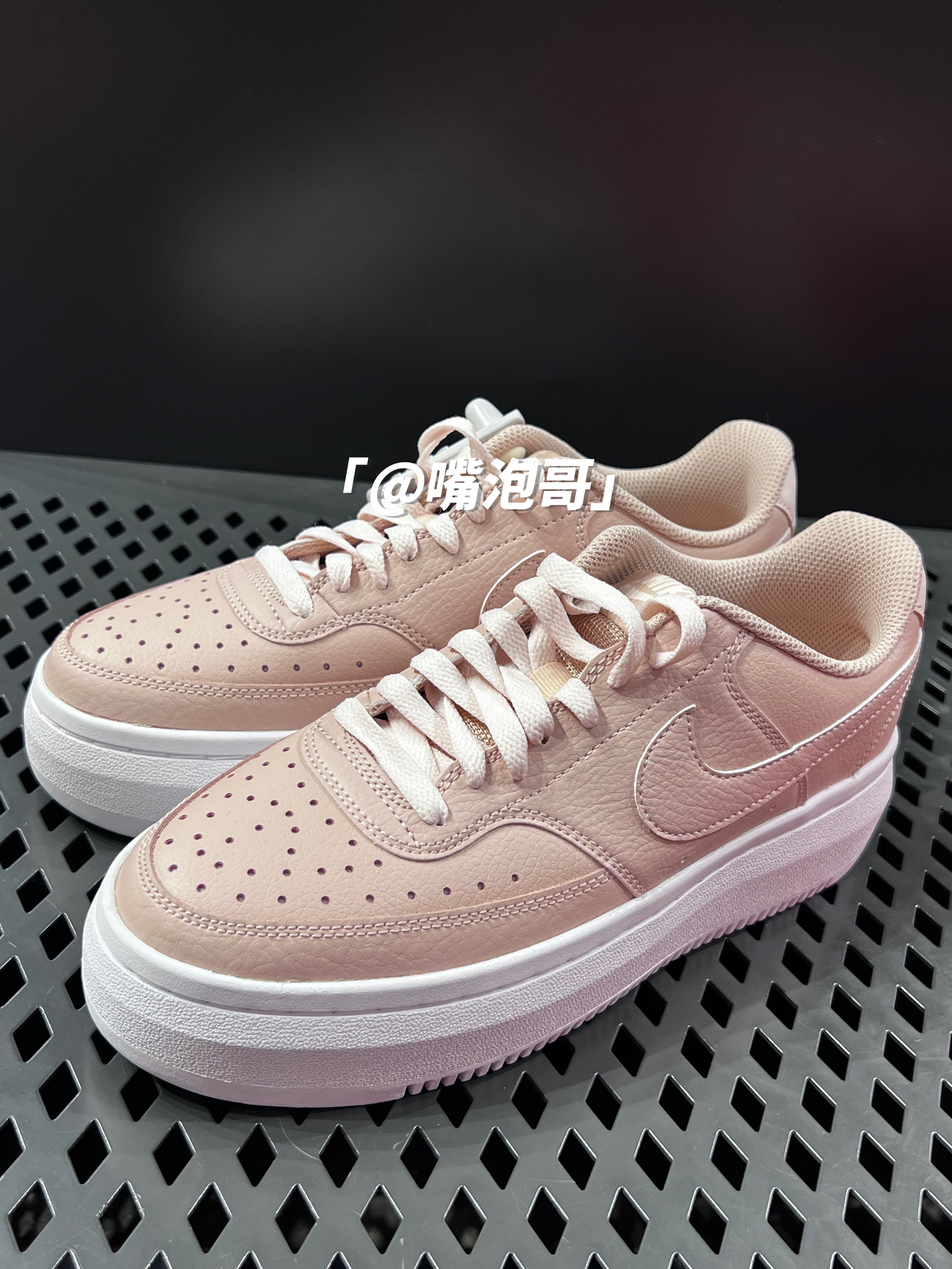 👟:Court Vision 1 Alta 粉色 简介: 鞋款是一双比较经典的Court Vision 1 运动休闲板鞋,从外观可以很好的辨别出,这是一双厚底增高的鞋子,配色上选用了粉色与白色组合,使鞋款很具有“少女心”的感觉。 细节: 鞋面采用了粉色的皮革制作而成,皮质上中规中矩,保证了基础的穿着舒适度,两侧的swoosh同样是用了粉色,与鞋面融为一体,织物鞋舌确保了透气性,中底与大底采...