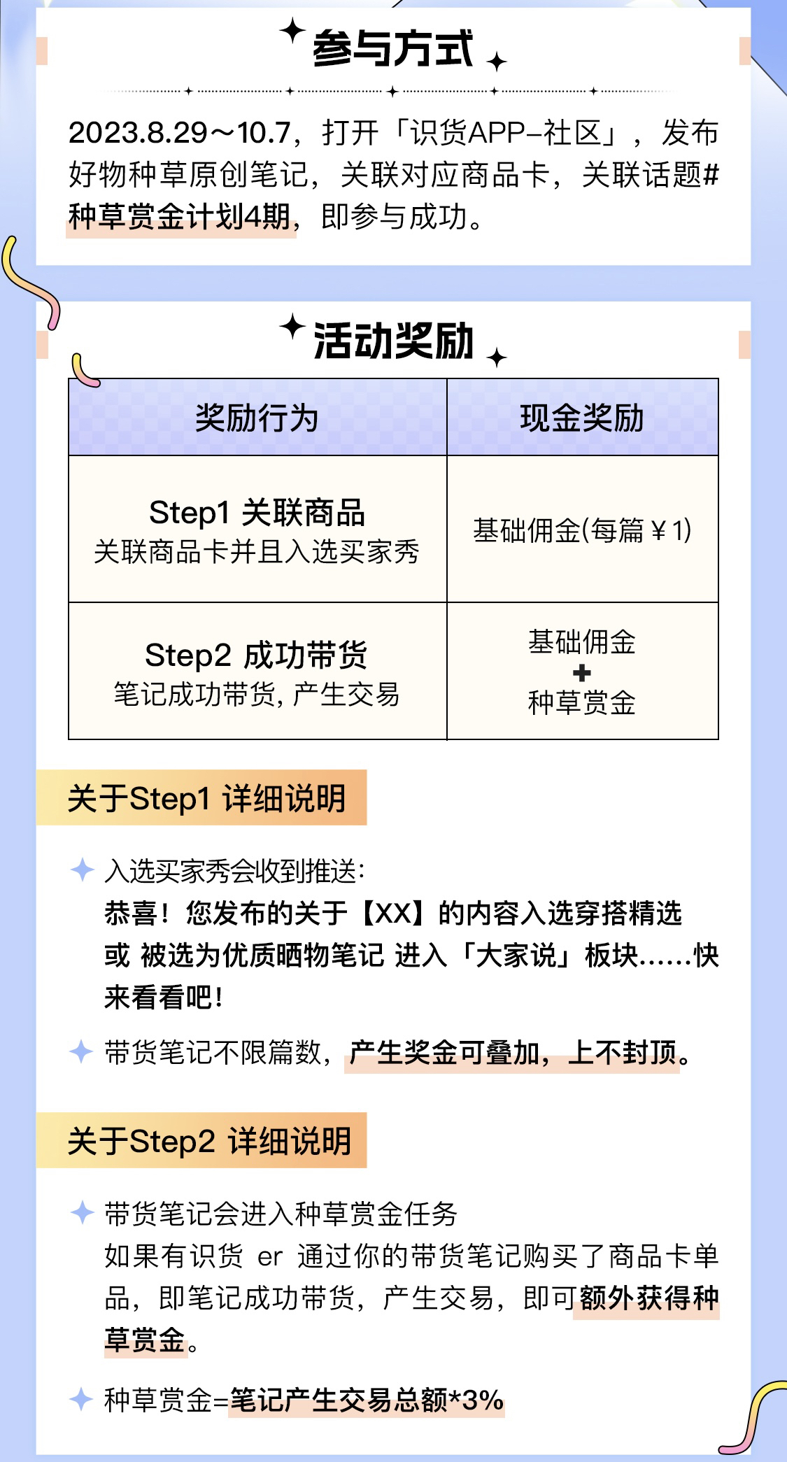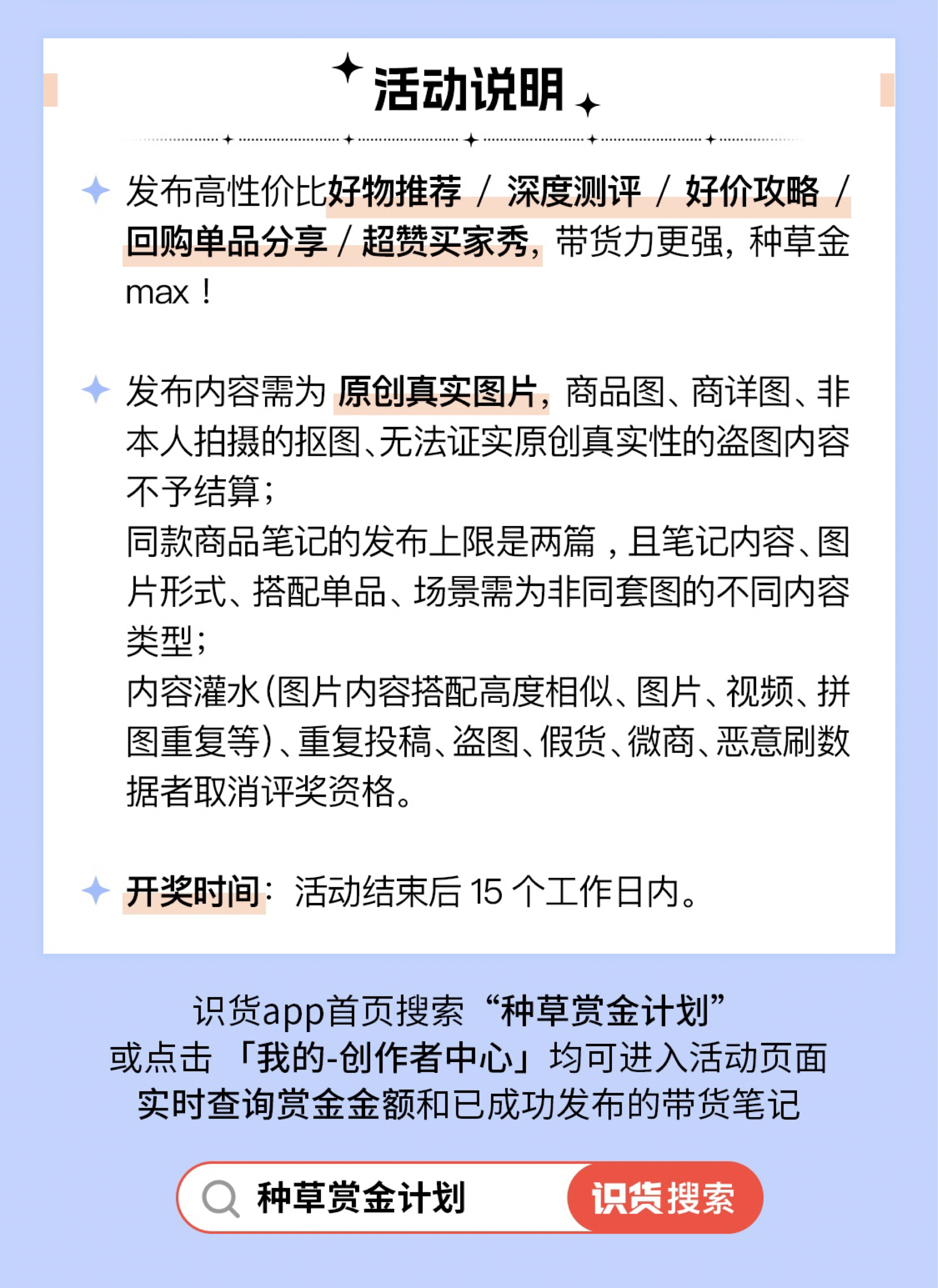 【识货种草赏金计划4期|发布必得现金 带货再分佣!】,由用户 识货活动官方 分享,来自浙江。这是一篇来自识货社区的真实用户分享笔记。