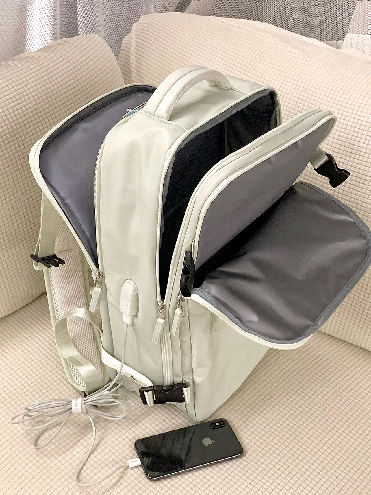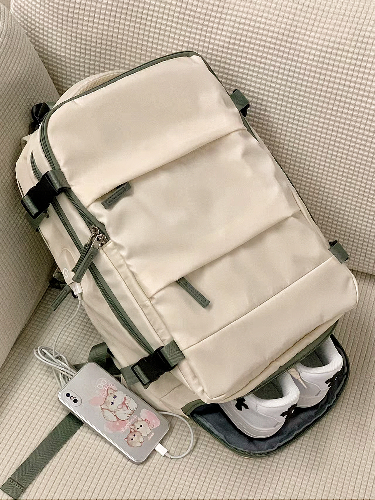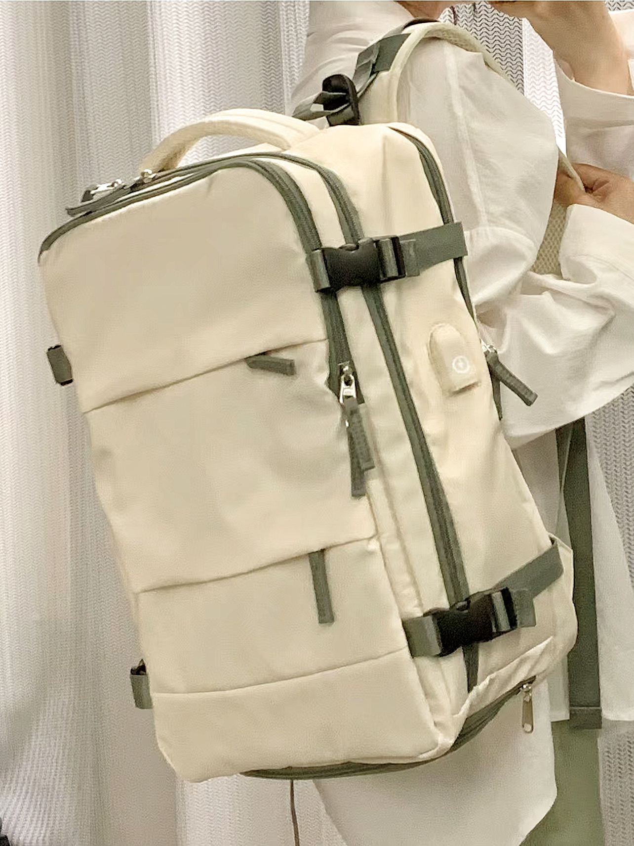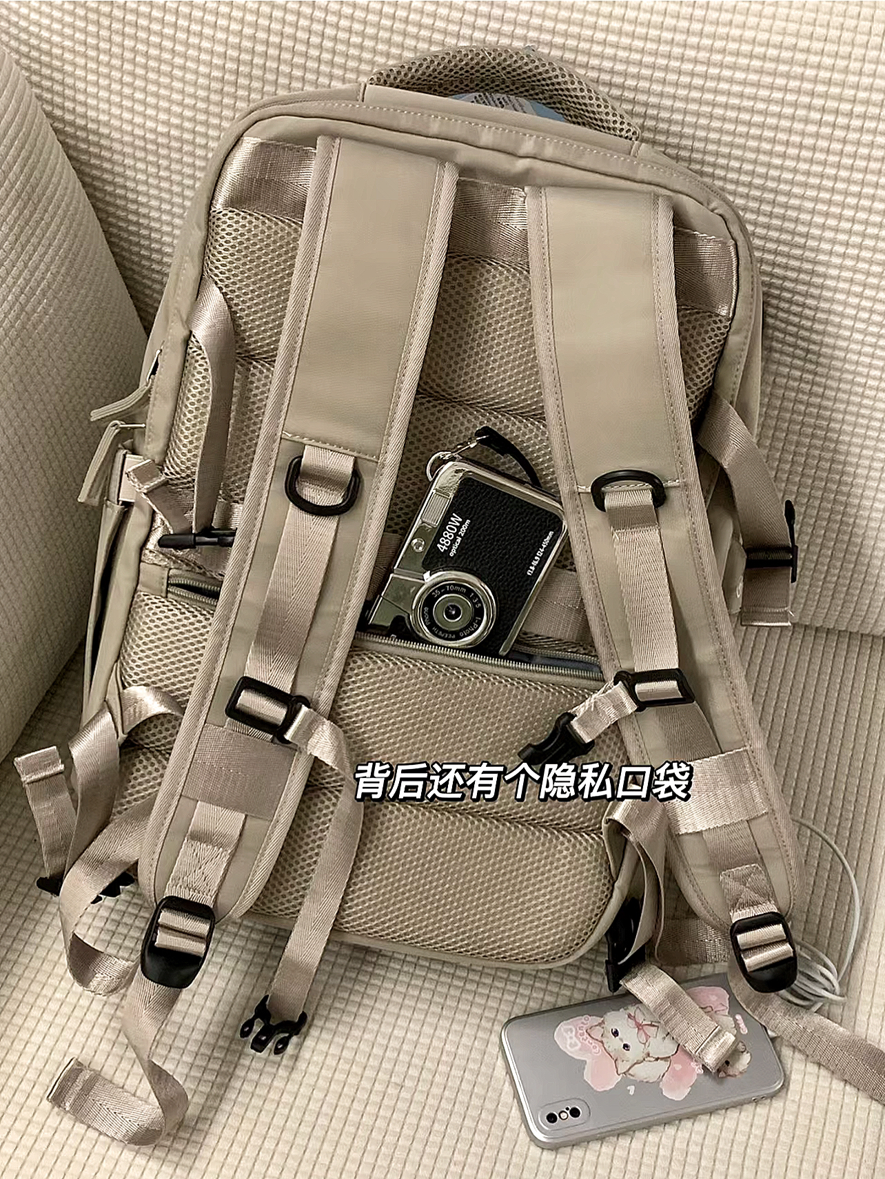 这些旅行包🎒双肩书包📖 也太会了吧!! 书包🎒里有单独的电脑隔层 大容量 不用担心放不下笔记本 妥妥的拿捏住!!! 书包质感是比较好的,两侧肩带可以调节,非常顺滑完全不卡🉑️ 内里的PK布有好几个网兜隔层 放一些零零碎碎的东西很方便 还带有干湿分离很贴心 就真的很简约风又百搭的一款书包 拿捏住了! 超大容量双肩包🎒也能放进笔记本电脑哦! 背上也完全不会滑下来!真的很爱!!