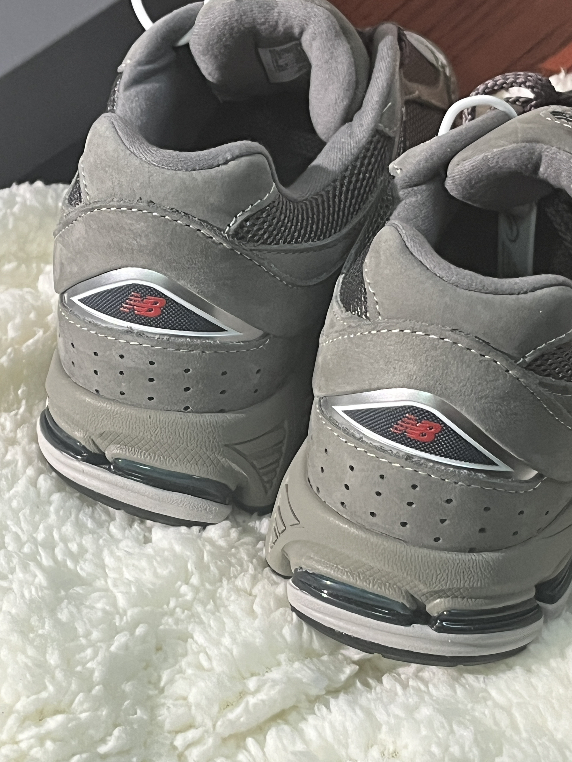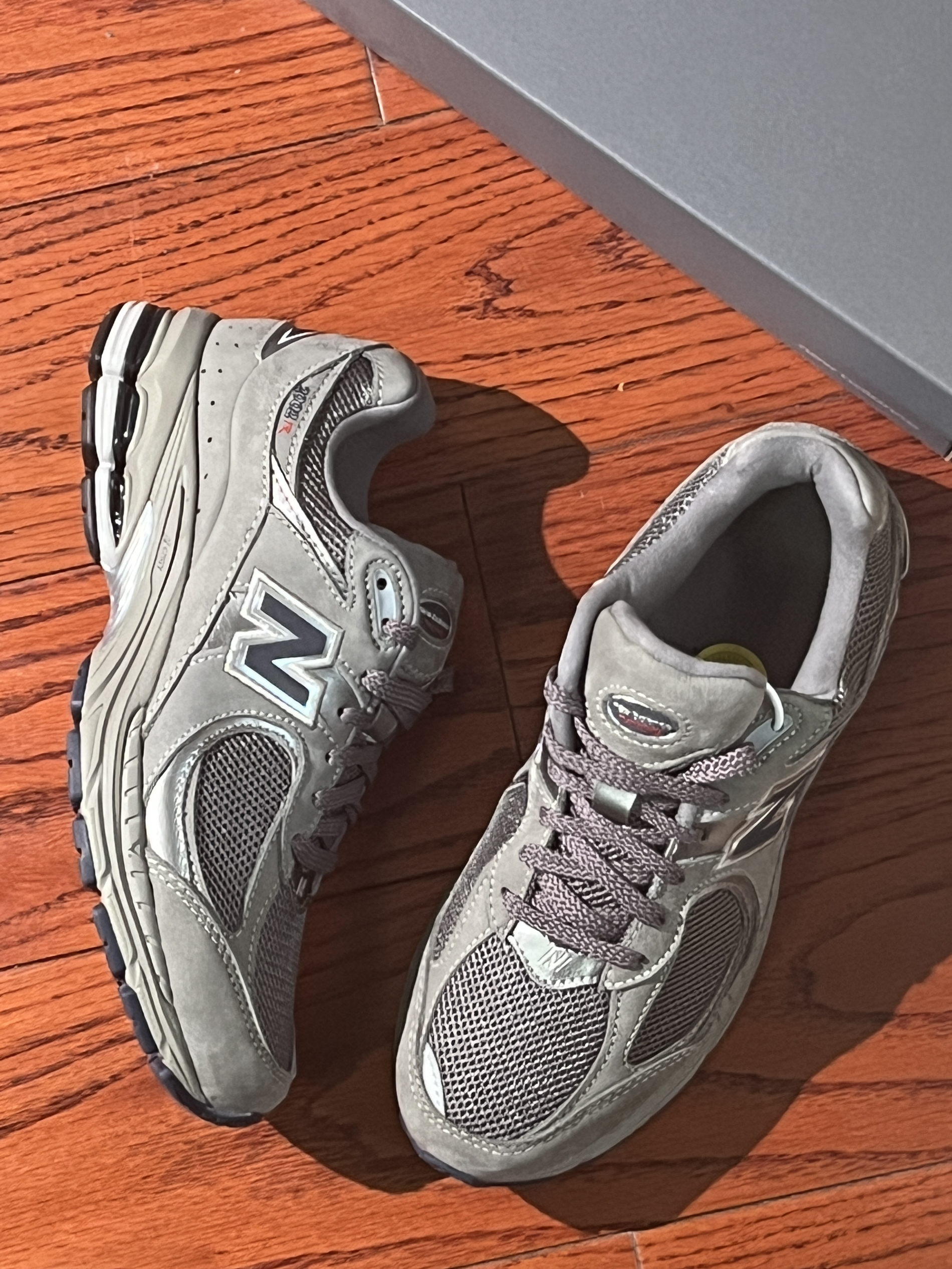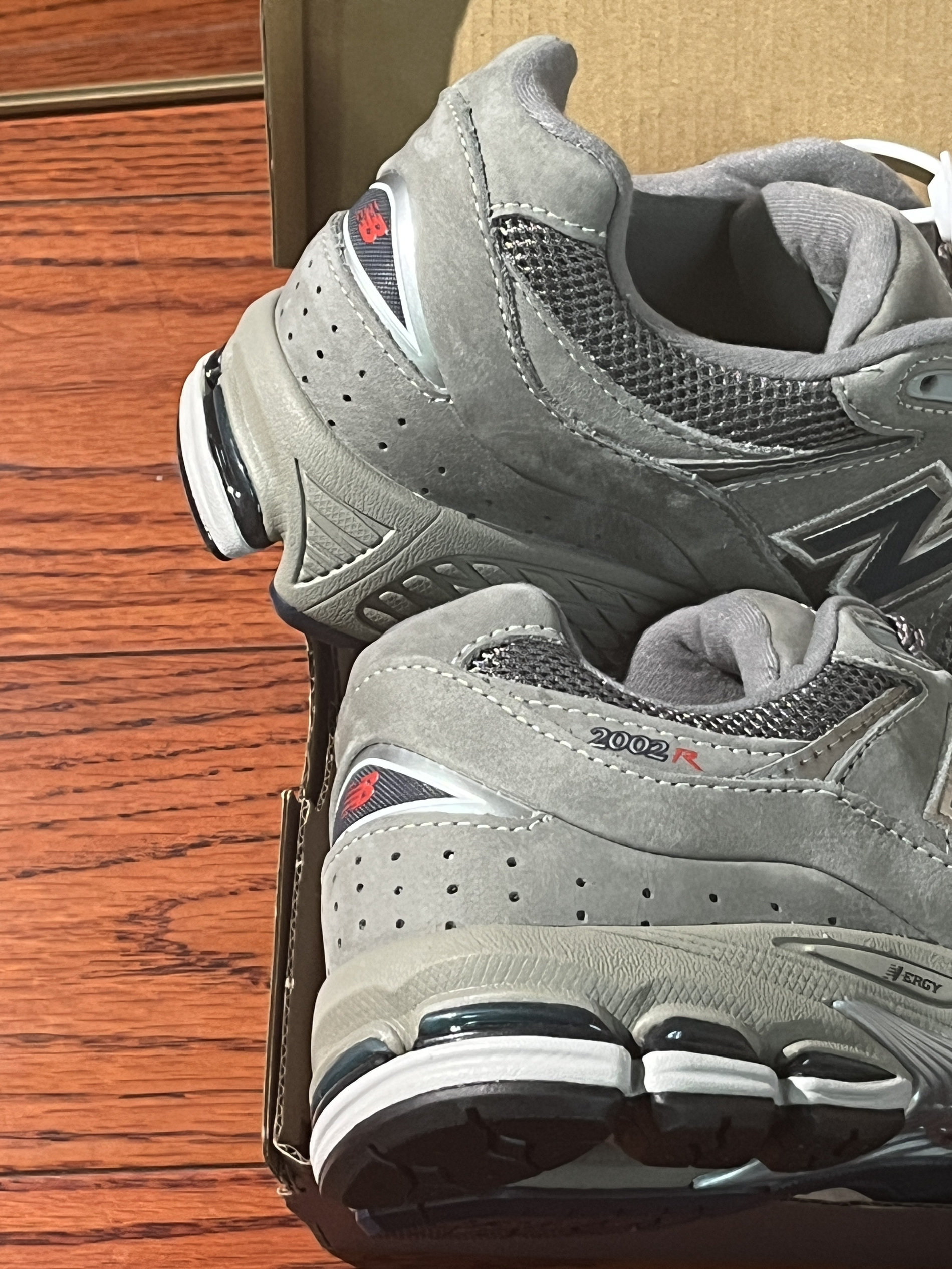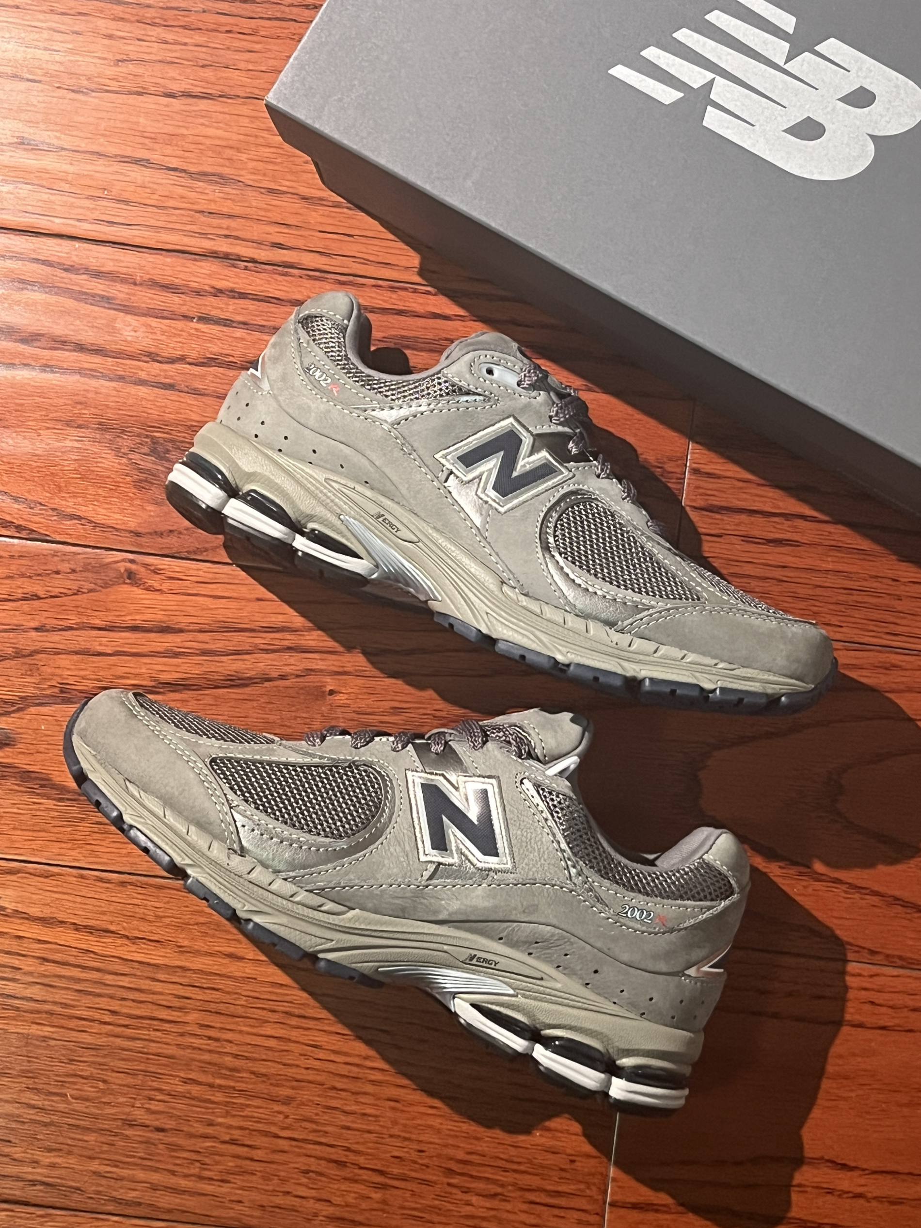 NB2002r的配色和版型帅得没话说 😎💯 细节做工也过得去,脚感舒服但算不上很软 😌👞 买它主要还是因为百搭还有它的配色 🌈✨ 广东最近回南天老下雨,鞋头碰水会发皱 ☔😣 鞋子正码哦~