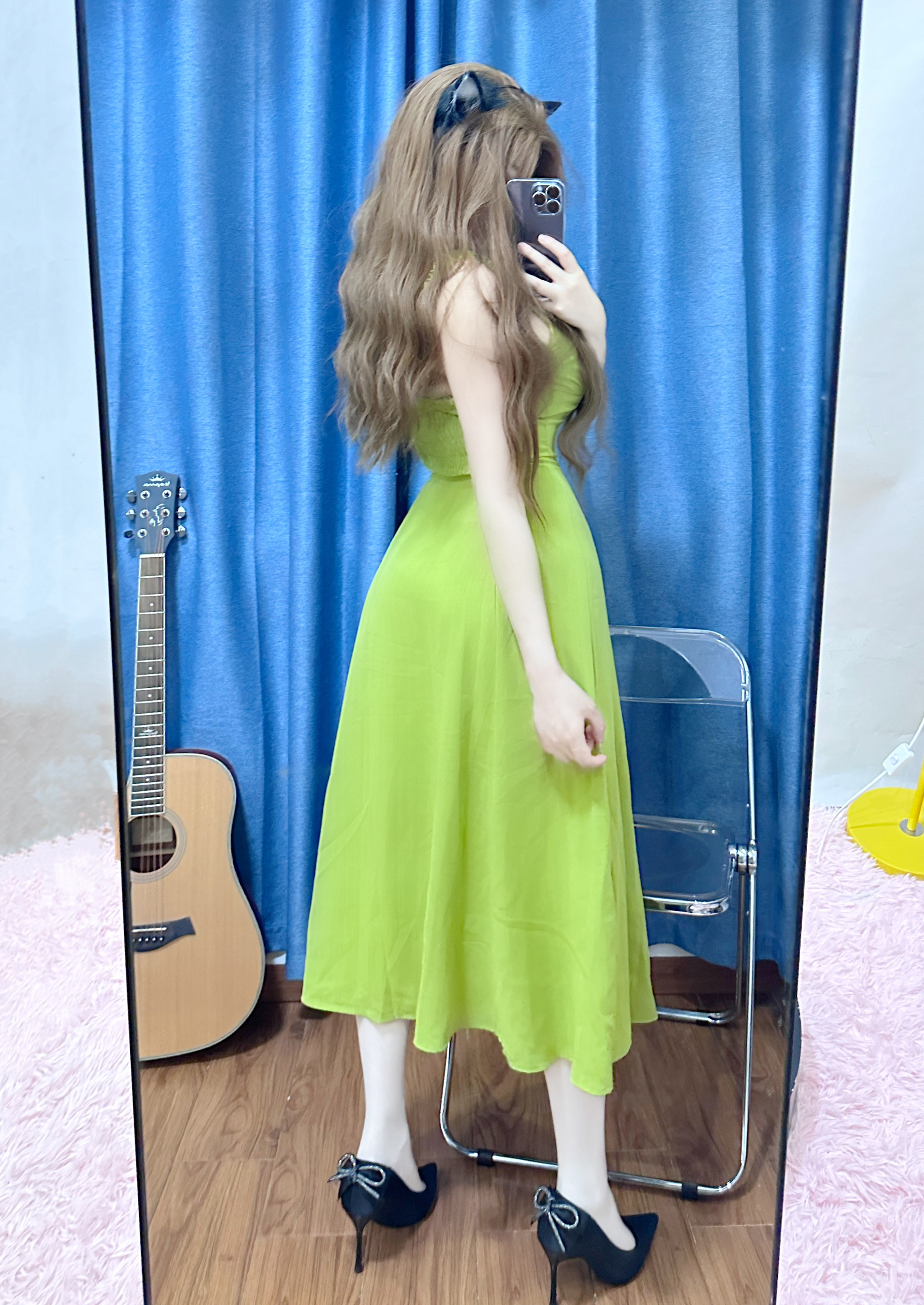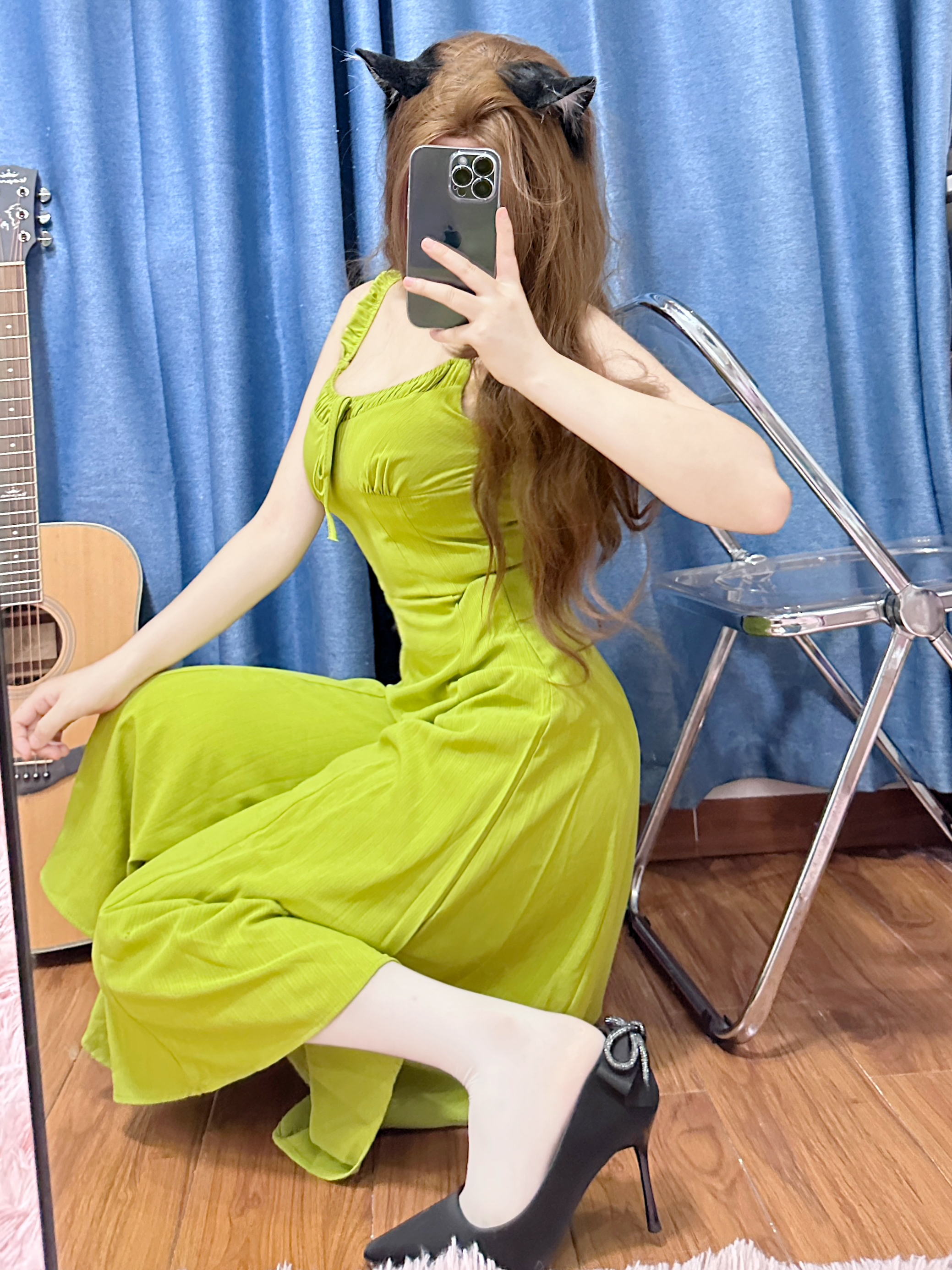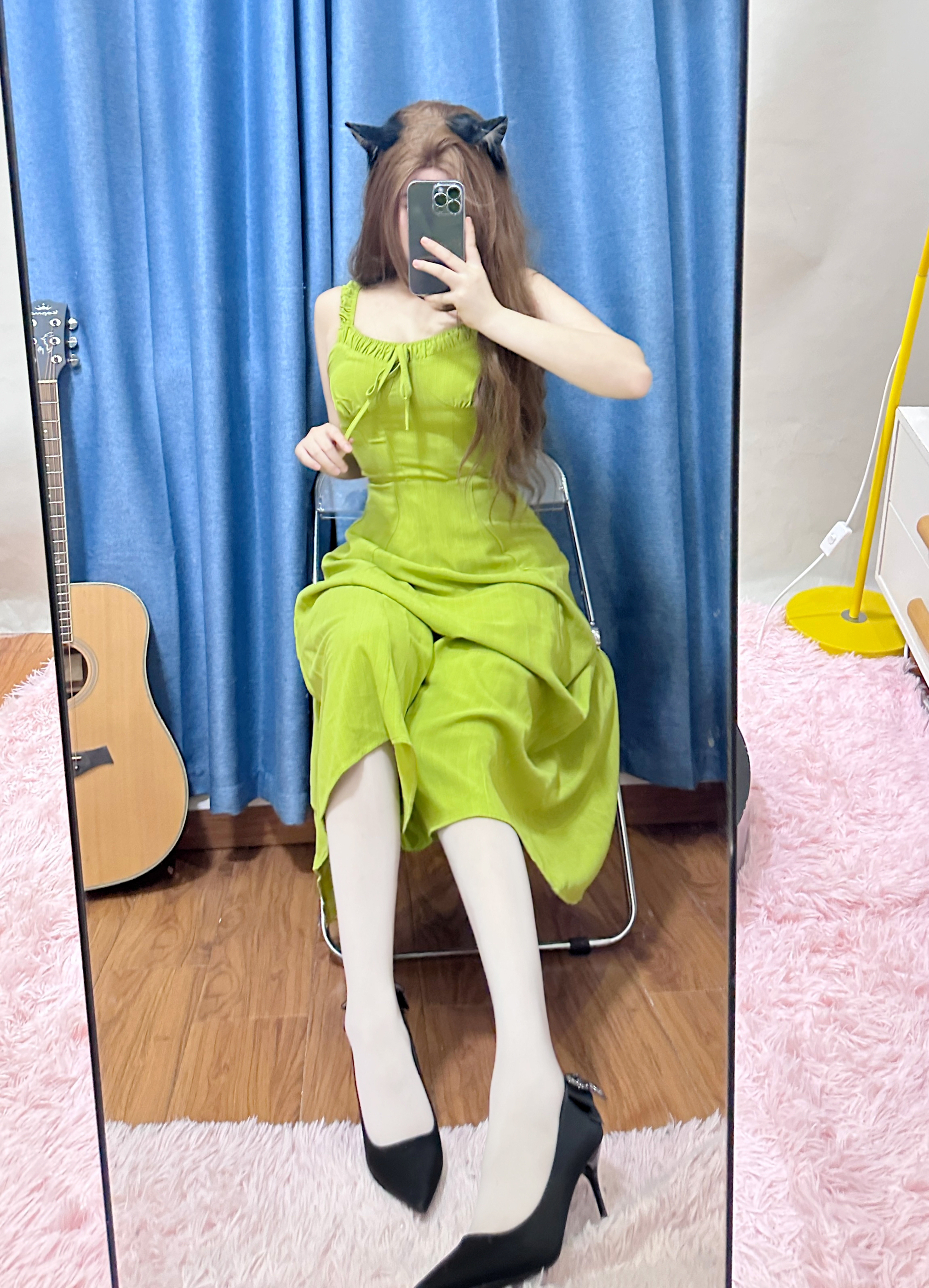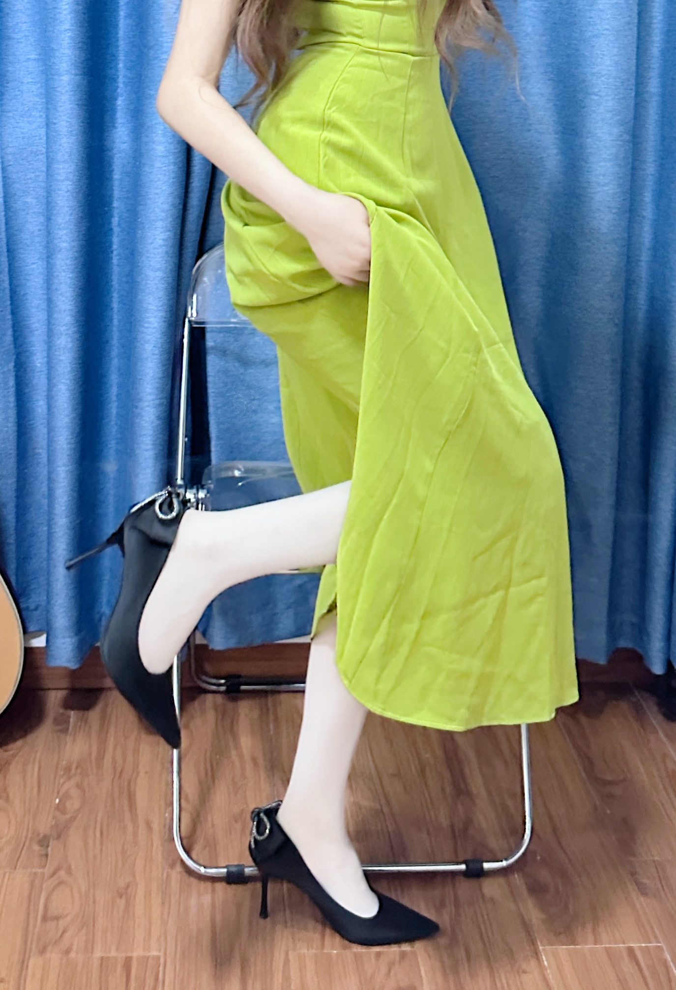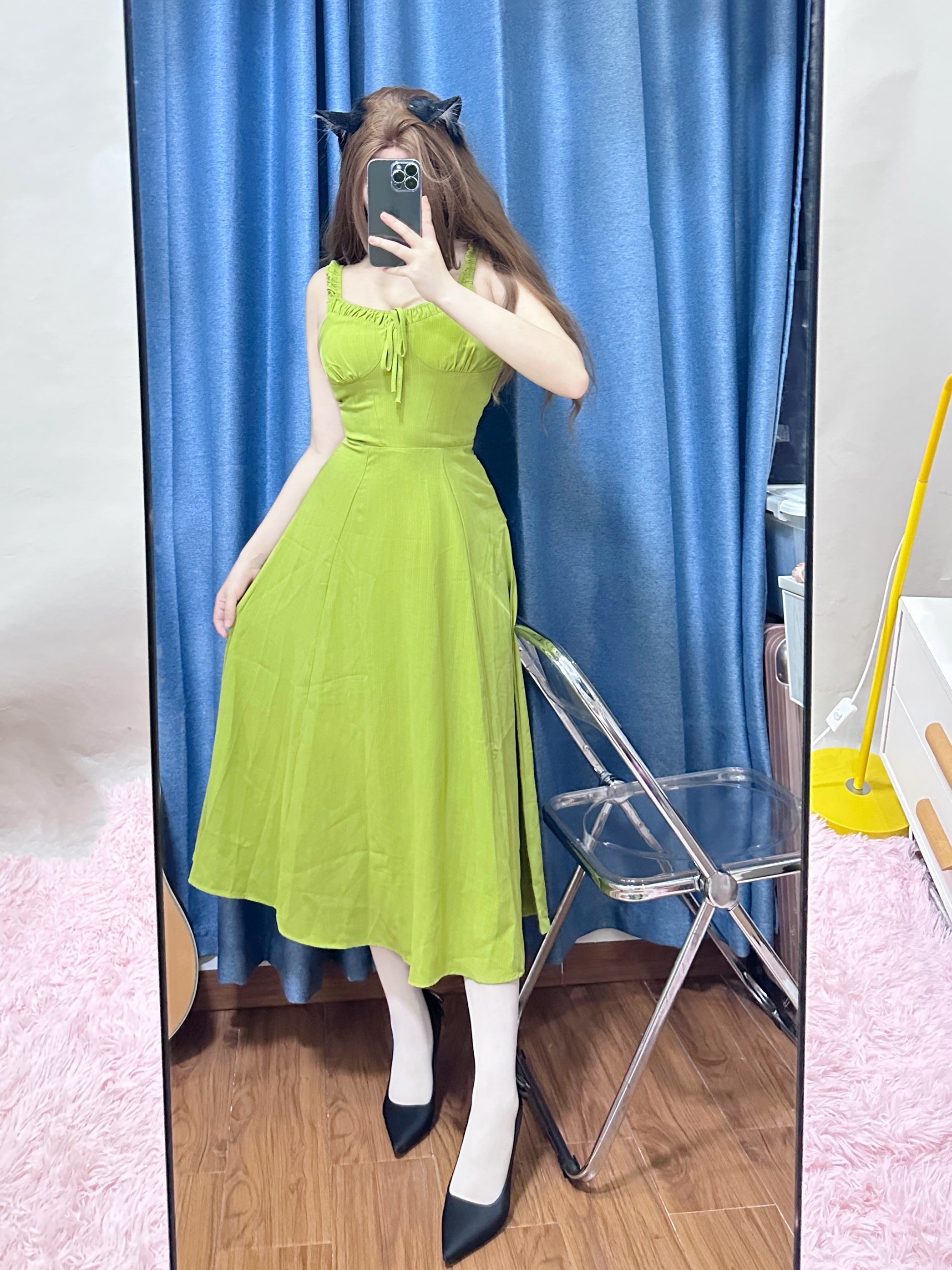 今天穿了一条港风的绿色连衣裙👗 下面搭配了一双最近hin喜欢的细跟高跟鞋 不得不说 显气质还得是细跟的高跟鞋~ 这双 EXULL 依思Q 的高跟鞋,鞋的背后有一个带钻的蝴蝶结🎀,是这双鞋的小心机 喜欢💕这种设计 正面 侧面 背面各有各的好看 穿这双鞋子去约会这不迷死男朋友? 而且搭配裙子 牛仔裤都好看 #绝美高跟鞋👠 #细跟高跟鞋 #穿这套去约会 #高跟鞋推荐 #尖头细跟高跟鞋