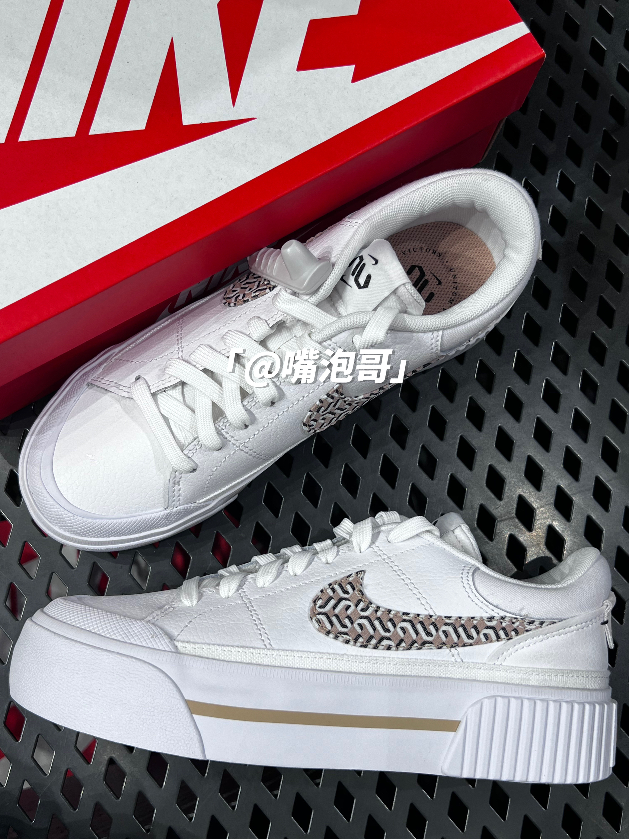 👟:Court Legacy 白色 简介: 鞋款是一双厚底的休闲板鞋,整体的配色选用了百搭的白色来呈现,在日常穿搭中很是百搭,并且在细节处加入了黑棕的刺绣帆布,使鞋款的质感提升。 细节: 鞋面选用了白色的复合皮革打造而成,皮质柔软,保证了穿着的舒适度,鞋身两侧的swoosh选用了带有黑棕白三色的图案刺绣帆布,使鞋款的质感提升,鞋舌和鞋口位置使用白色的帆布材料,保证了透气性,中底与大底均使...