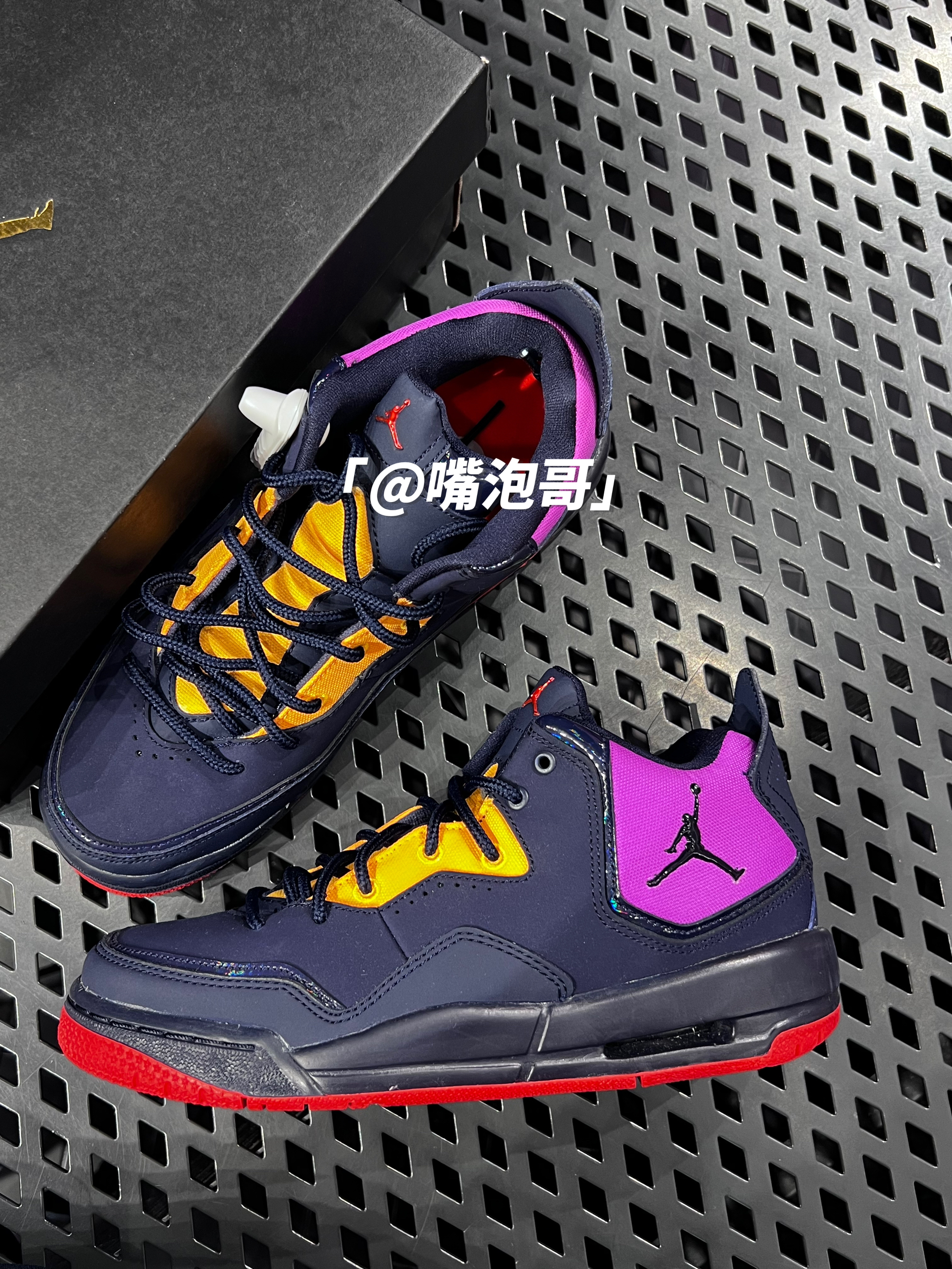 👟:Air Jordan Courtside 23 黑 简介: 鞋款是经典的Courtside 23鞋型,整体配色方案有点类似AJ4 “猛龙队”的配色,以黑色作为鞋款的主色调,细节处加入了紫色、黄色、红色等亮色装饰,使鞋子在穿搭中更为吸睛。 细节: 鞋面运用了黑青色的皮革打造而成,皮质柔软,在鞋帮位置加入可以陪工程帆布,增加了透气性,鞋舌及鞋带孔位置上使用黄色工程帆布拼接,提升了耐磨性...