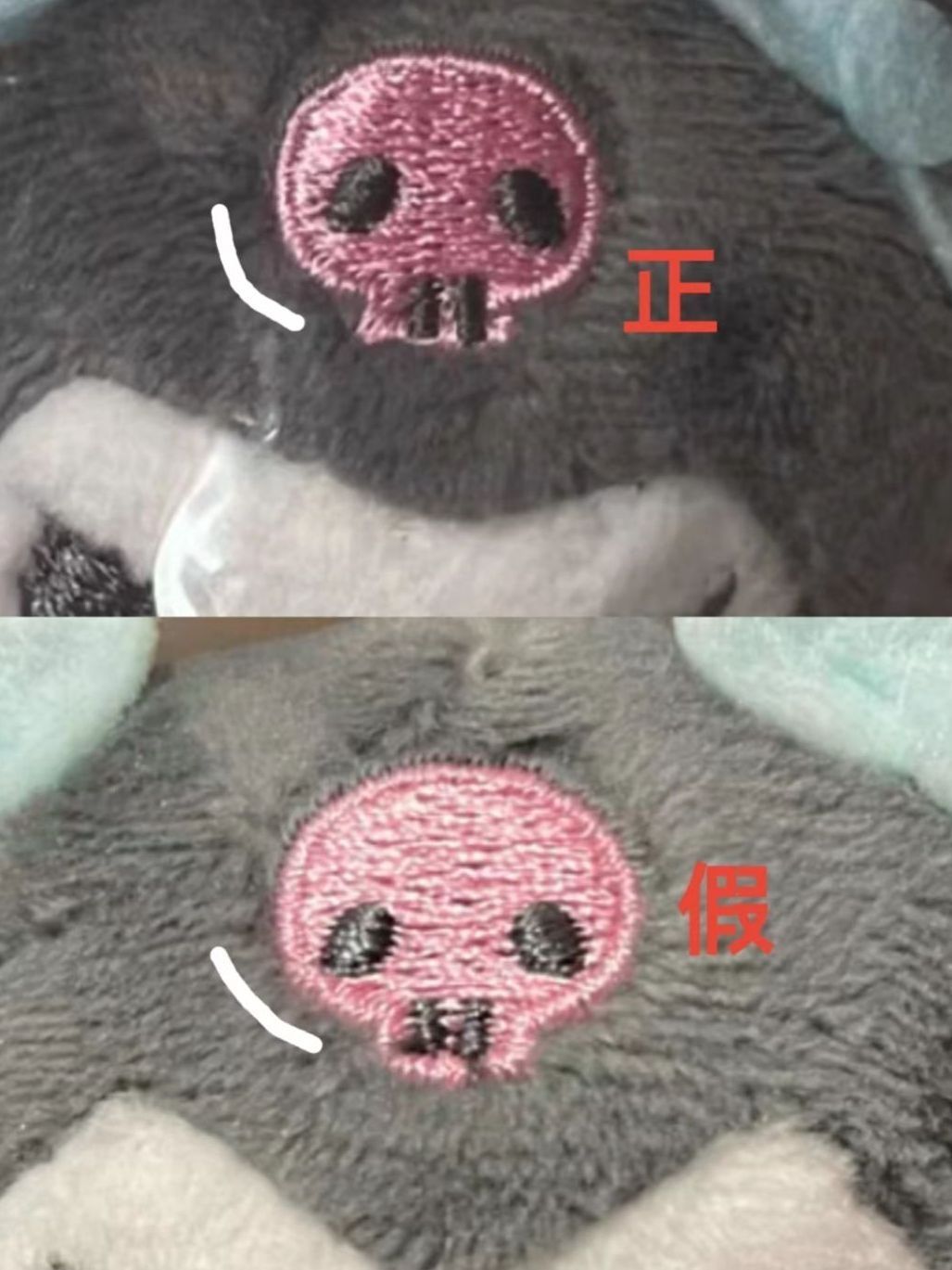 近期注意到海鲜市场有不少盗版娃娃机货这款摇篮系列的确仿的很像 ,但是假的就是假的还是有区别的🌚,我买了正品日代的因为疫情还没到货港版已经到手了🙁 ✅正品的骷髅头做的很大气骷髅眼睛和脸比例很匀称,如果脸分为上中下三庭的话眼睛是位于中庭的,另外正品骷髅下面的弧度不是很圆润地直接走下来, 是有一个圆顿感 具体看图标注😊 ❌盗版的则是骷髅头眼睛很挨着轮廓双眼处于中庭偏 下位置上半个骷髅头是比较空旷的 📌...