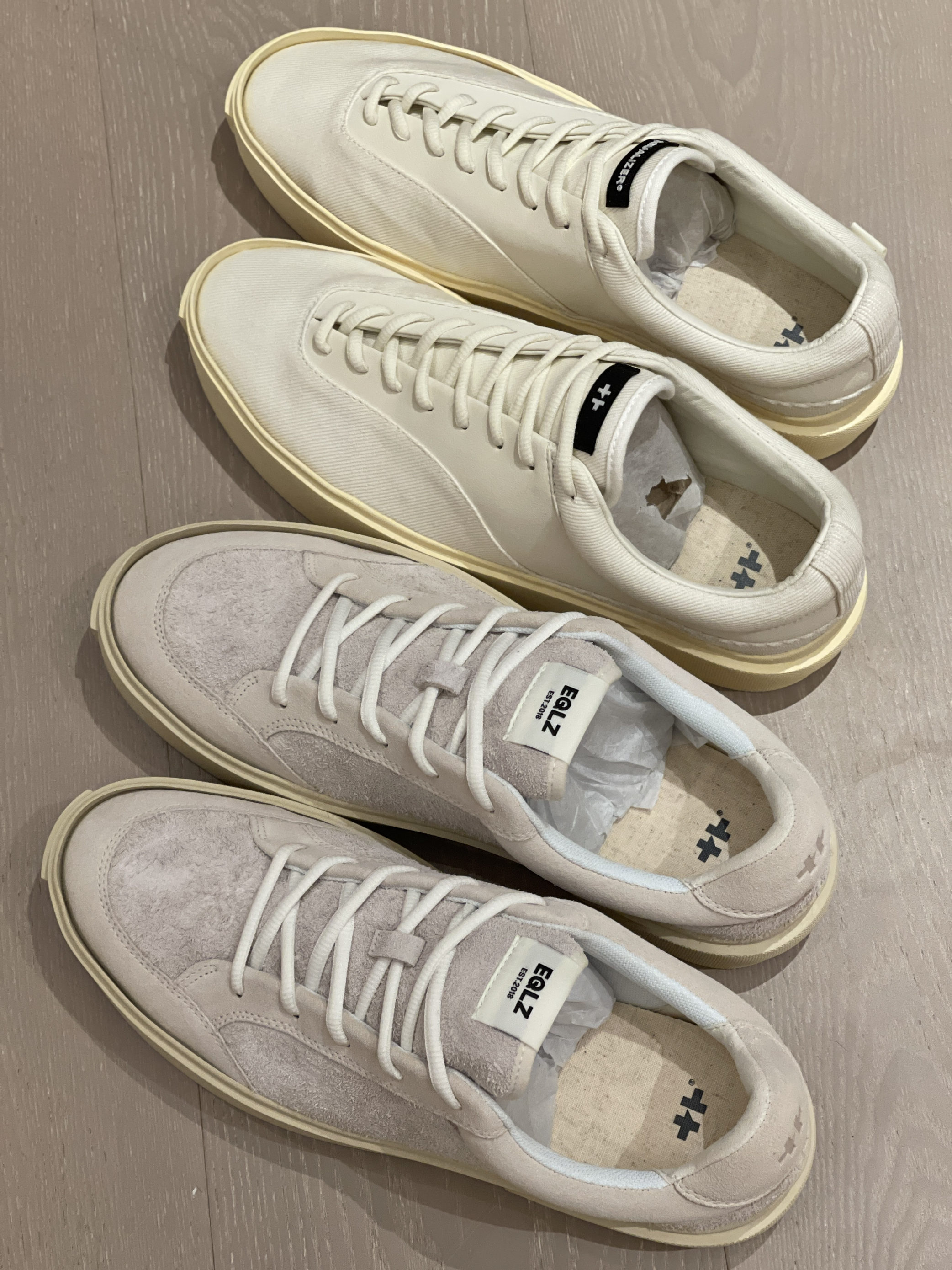 返校季穿什么带什么鞋子回学校,真的好纠结! 这两双都是来自EQLZ的复古板鞋: 1⃣️、EQLZ | Fault 23 Lo“沙漠黄”板鞋: 帆布➕沙漠黄配色,鞋型更加修长,配色更醒目。 2⃣️、EQLZ | Fault 23 Lo错版“珍珠白”板鞋: 麂皮翻毛皮+珍珠白配色,鞋型更加立体,配色偏暗一些。 虽然说珍珠白是沙漠黄的二代板鞋,但是两双都好喜欢,这该怎么办!🥺