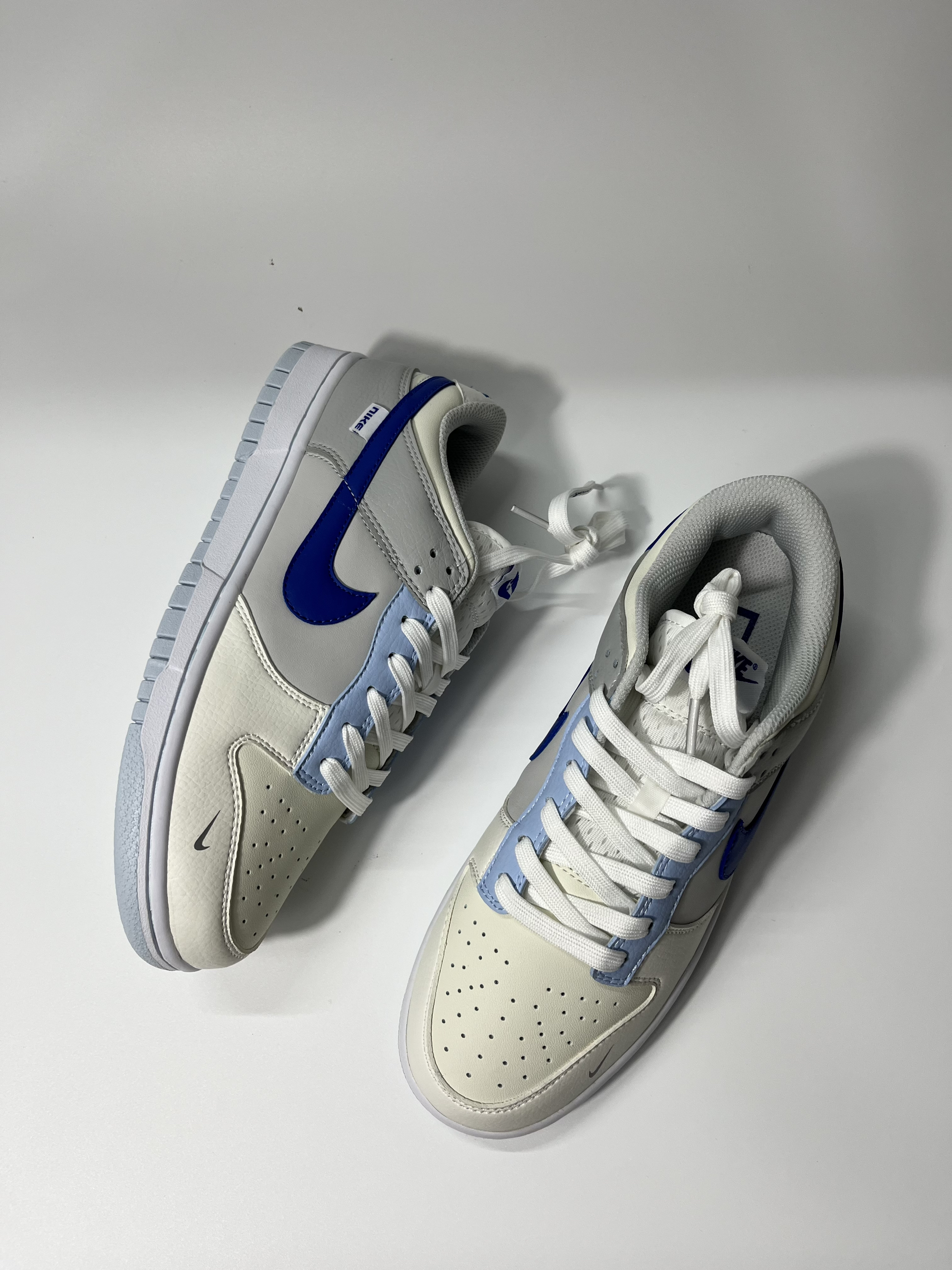 Hello大家好这里是罗山棒棒鸡 这款刚发售的海盐蓝Dunk,🧊绝对能让你眼前一亮,不仅在于多处的细节设计,同时也是神仙颜值🤩 鞋面以简单清新的白色和白光子结合,非常显简约感,并且以蓝色的鞋底,鞋标及后跟LOGO进行点缀⭐,尤其是鞋带印花的“JUST DO IT”得设计,增加了不少的俏皮性,丰富了鞋面的元素,个性趣味十足~ 😇这双男女都可以穿,和对象一起穿更合适哦!非常百搭!
