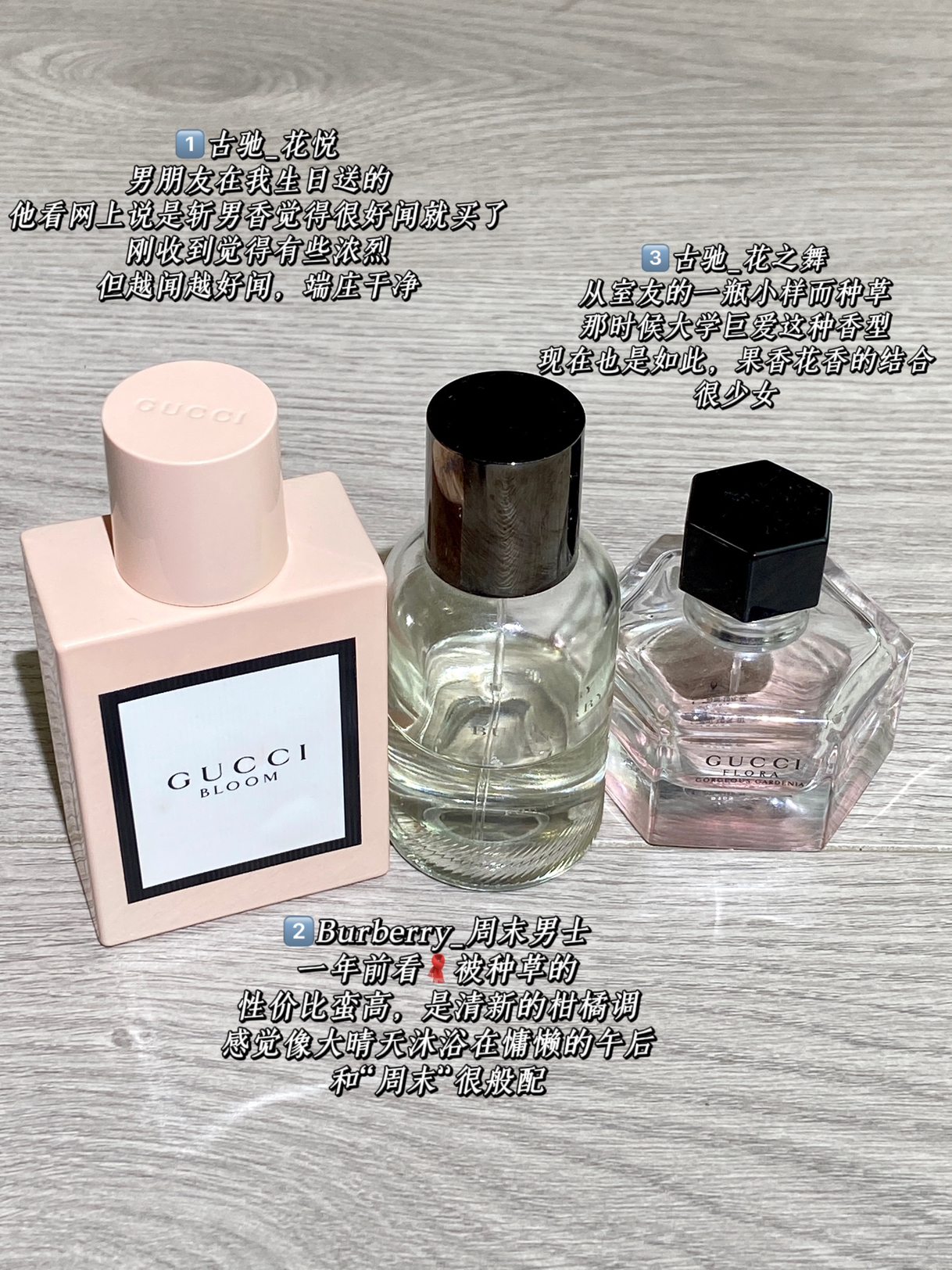 本篇笔记关联了Gucci/古驰 Bloom花悦系列女士香水 花悦绽放 浓香水EDP、Gucci/古驰 花之舞系列女士淡香水EDT 绚丽栀子、Burberry/博柏利 Weekend周末男士香水 柑橘调 淡香水EDT等商品,为用户提供真实的使用体验和购买参考。