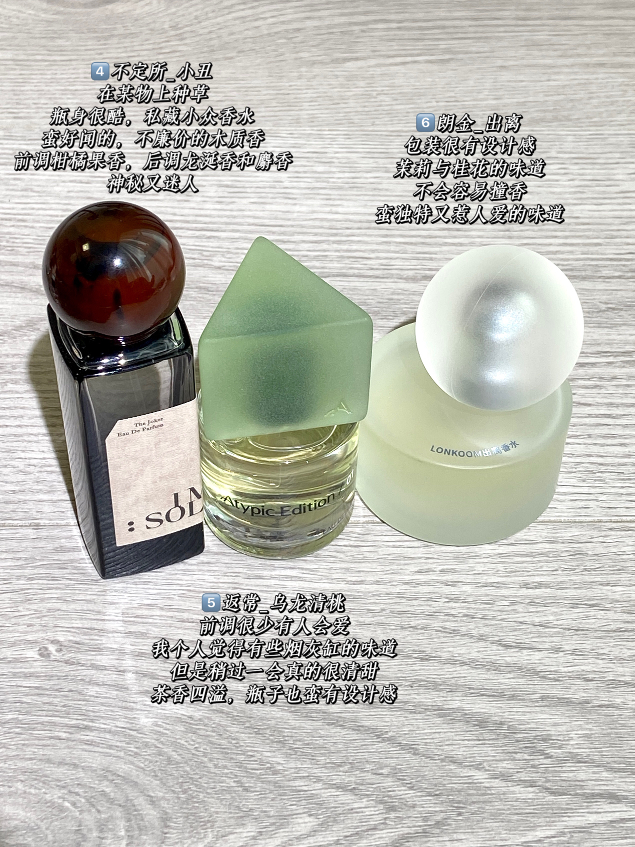 1⃣️古驰_花悦:花果香 2⃣️Burberry_周末男士:柑橘香 3⃣️古驰_花之舞:花果香 4⃣️不定所_小丑:中性木质香 5⃣️返常_清桃乌龙:清甜茶香(前调有些不喜欢) 6⃣️朗金_出离:有种迷人白月光的感觉 还有个阿玛尼myway香水,很多人都喜欢的葡萄果汁的味道,真的很好闻,甜甜的,超好分辨的香型,不过由于味道好闻有些大众,身边很多人都喜欢 我的香水使用场景:衣柜、睡前喷点在床...