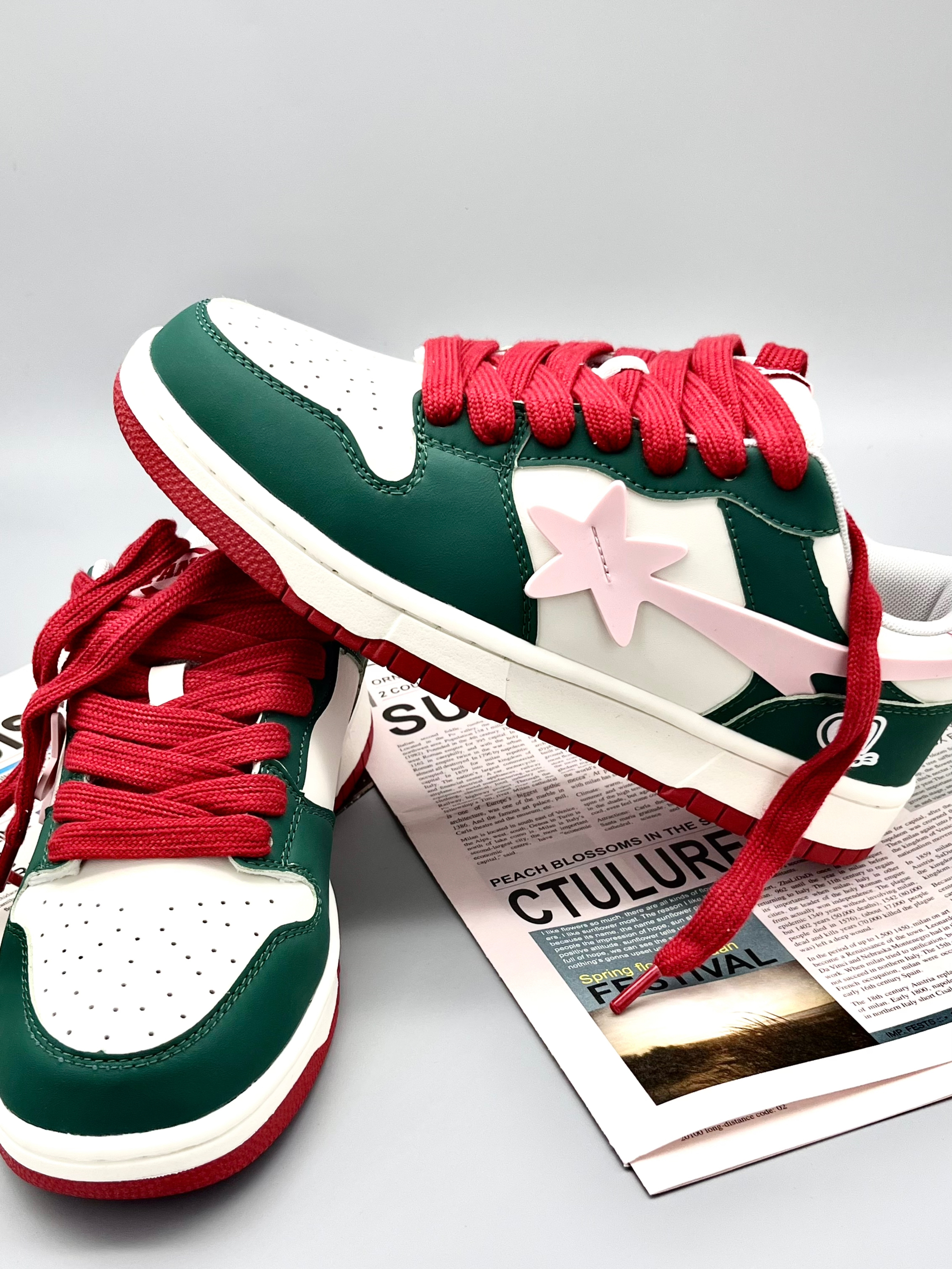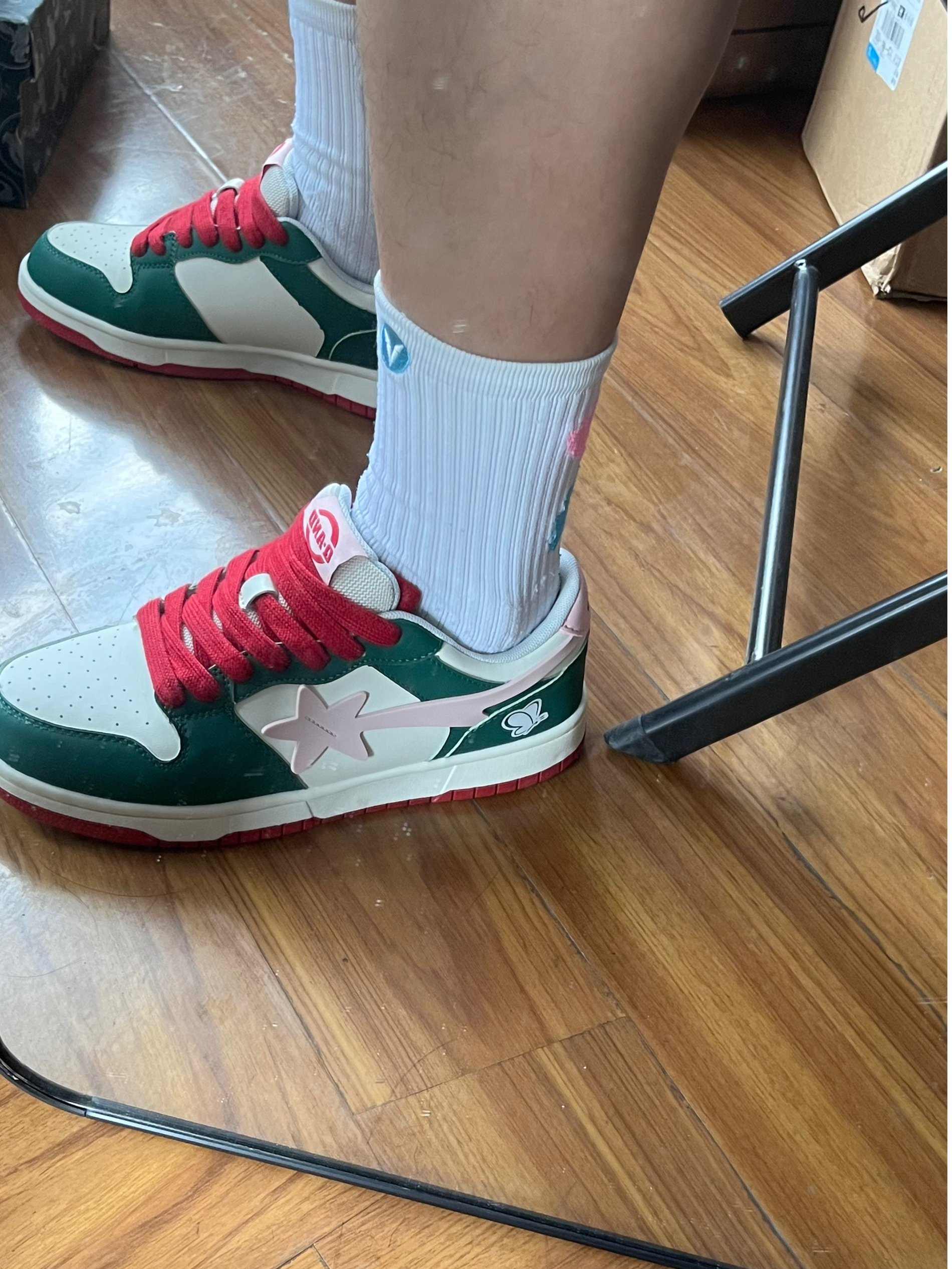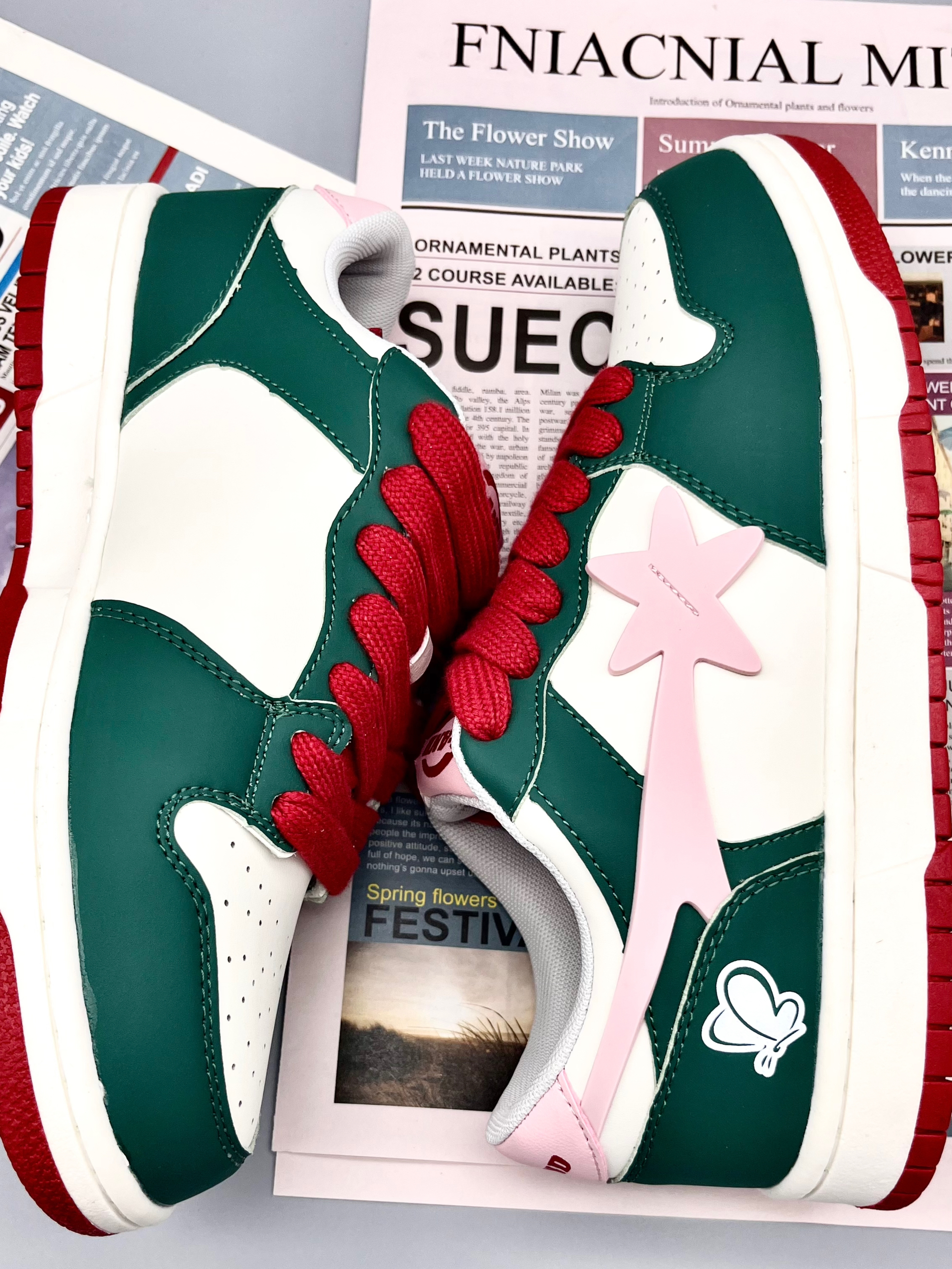 💭💭大家好~这里是超酷的啊呜 今天给大家介绍一双来自Q-AND的板鞋 红配绿的撞色非常大胆的设计 鞋边粉色点缀+蝴蝶图案🦋 使得这双鞋子非常耀眼 脚感舒适价格平价💯 无论是春夏搭配短裤、裙子 还是秋冬搭配牛仔裤、长裤都是不错的选择 🍃🍃男女同款,正常尺码不偏码~