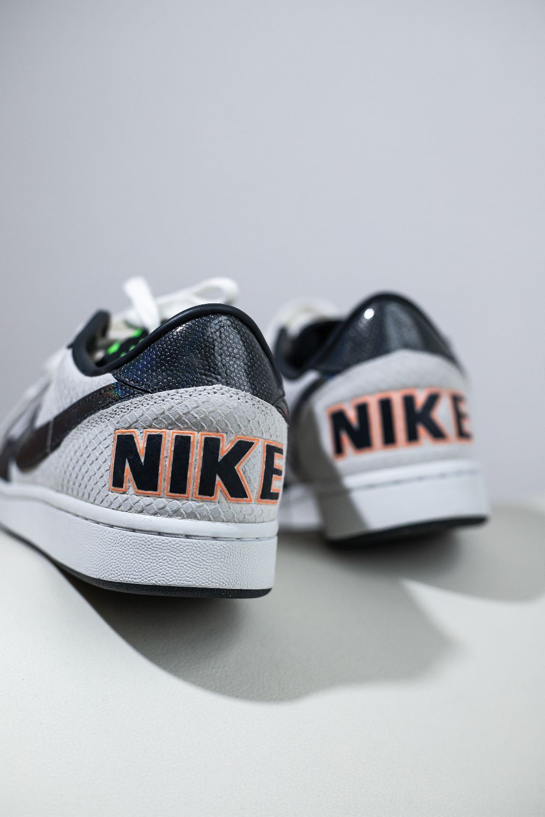 🔺讲道理这款鞋子的设计投入和材质投入真的是很饱和了已经,对于一款来自80年代的复古板鞋。 ▪️ 近些年尽管有零星复刻,可我依然觉得今天的这款鞋性价比很高。 ▪️ 鞋身各材质拼接组合,包括鳄鱼皮,蛇皮以及swoosh和尾标的这种类似涂晶的镭射材质。还有包括衬里也是皮革材质的。 ▪️ 复古的尾标超大LOGO,仿佛看到了当年的海报字体。鞋子整体的规格拉满~ ▪️ ✔灰白的主色调也很适合穿搭,喜欢的宝子们...