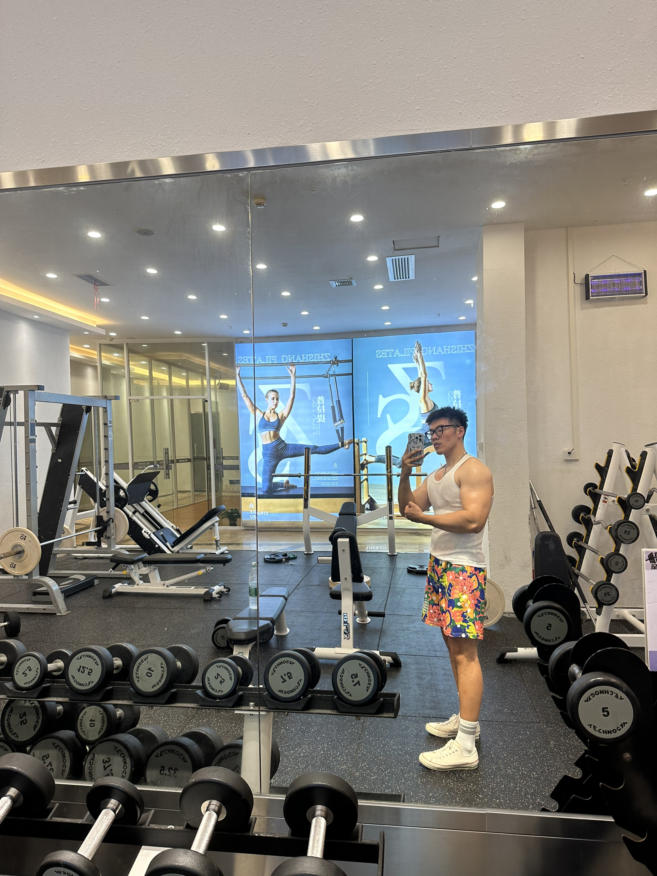 🩳花裤衩好显眼🩳 🎽纯白背心很好穿🎽 👟撸铁的尽头是匡威👟👕推荐单品:
