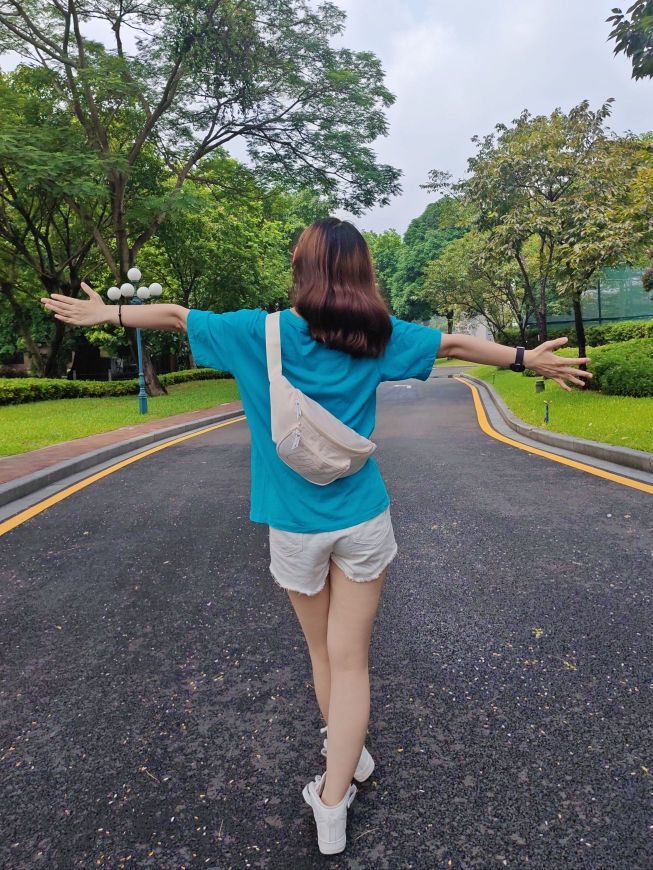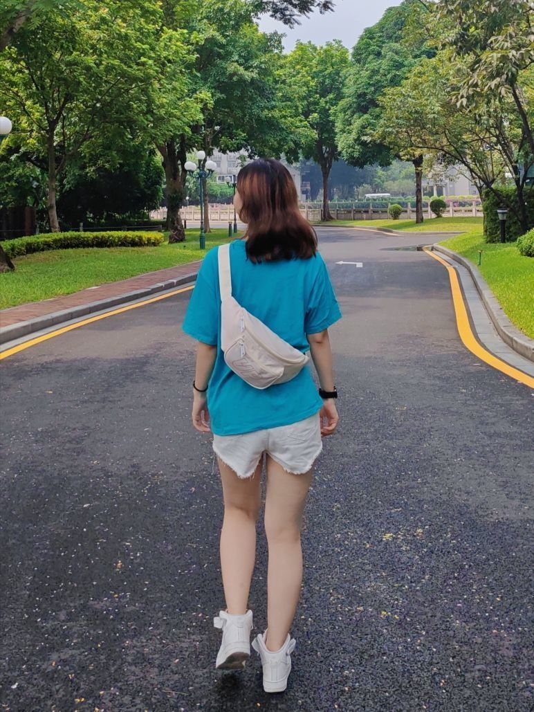 周末一家人去户外徒步了,分享下我的穿搭🙆 上身是一件青蓝色短袖👚 下身一条白色短裤👖 背的包包是TURN UP家的腰包,hin方便! 可以挂腰上,斜挎,单肩背💯 颜色奶fufu的~➕大Logo👀 干净又耐看😜 出门很多琐碎的小东西都可以放进去✔️ 休闲百搭~显得整个人活力满满