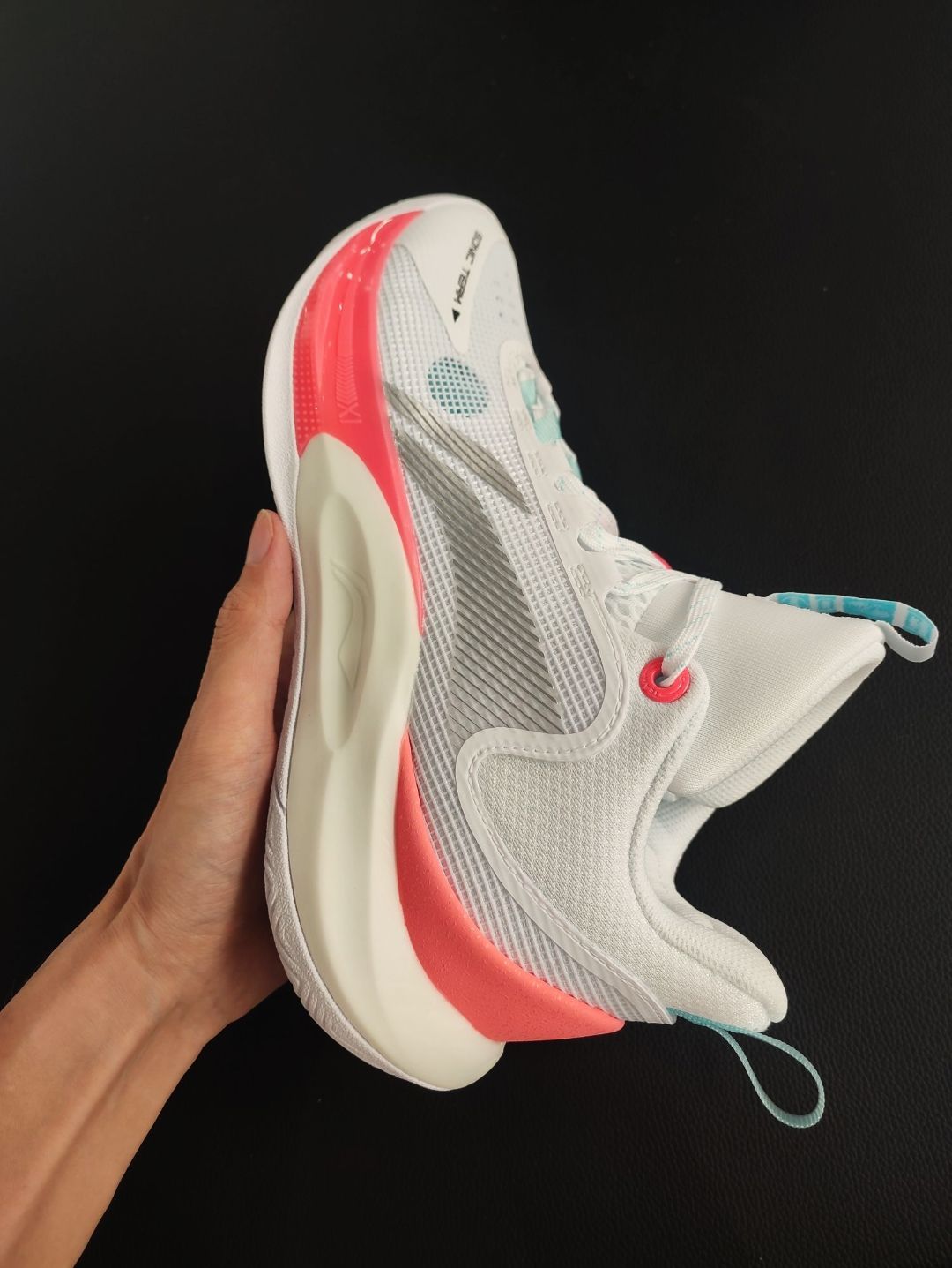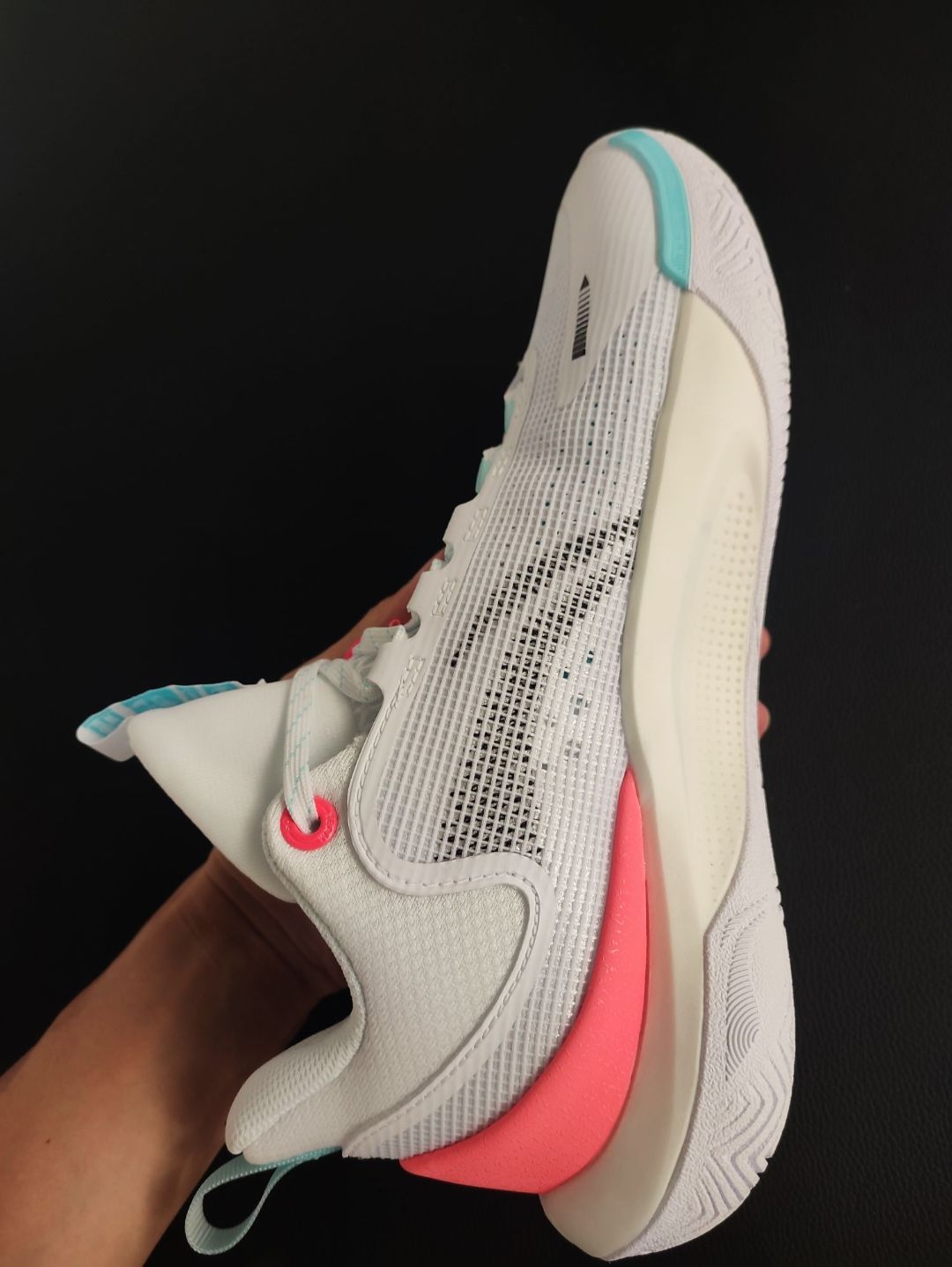 这双鞋子非常实用!鞋子的包裹性比较好,稳定性强,尤其鞋后跟的设计,非常美观,粉红的点缀,增加鞋子稳定性,保护脚的同时,还提高了鞋子的颜值,一举两得。 侧面的设计比较好看,并且透气性比较好,穿它篮球实战不会觉得脚闷,很适合打球。 这双鞋子鞋底的抓地力强,极速变自很自如,适合实战时突破。 实心又好看,非常喜欢这双李宁的音速TD!