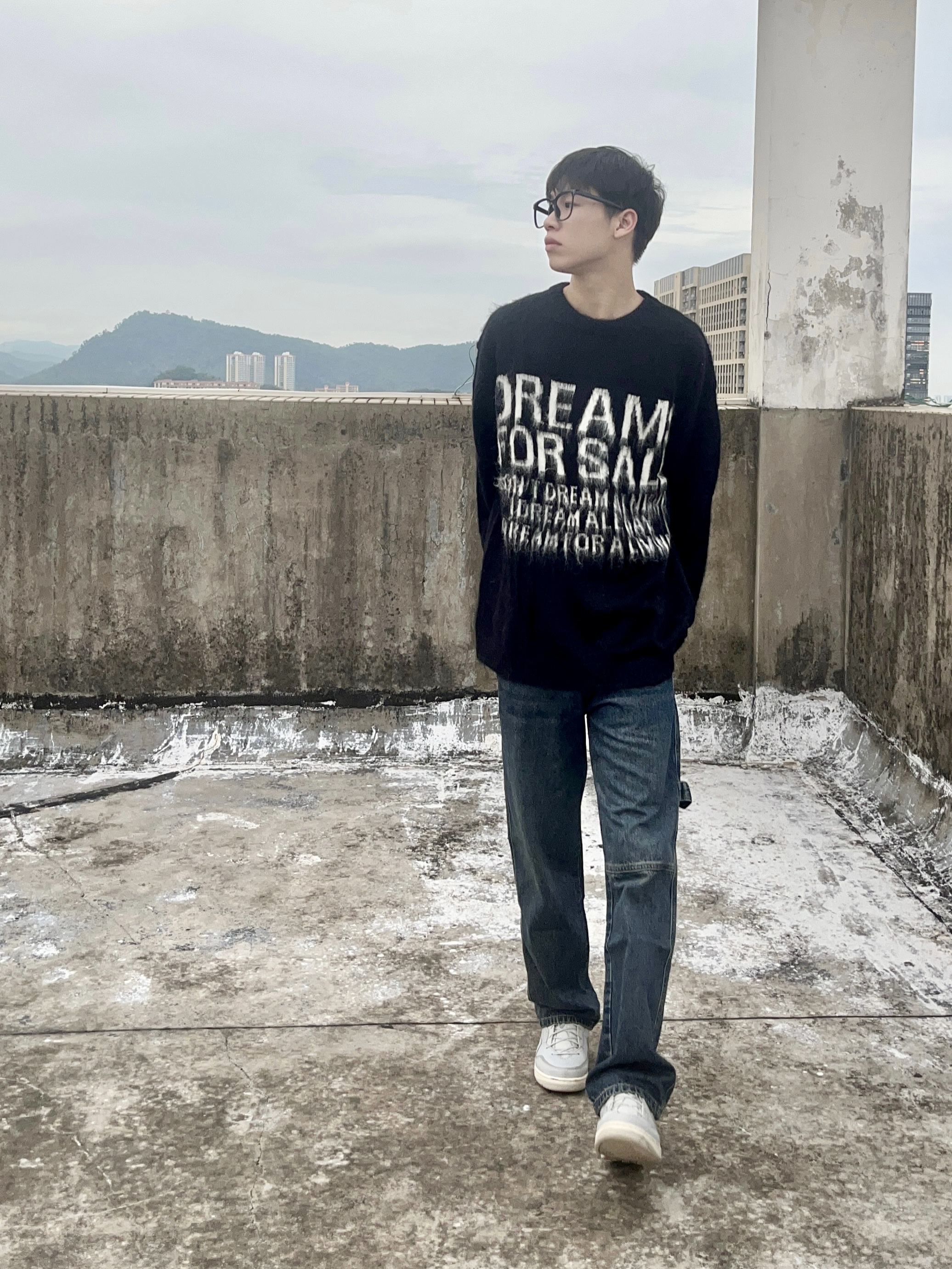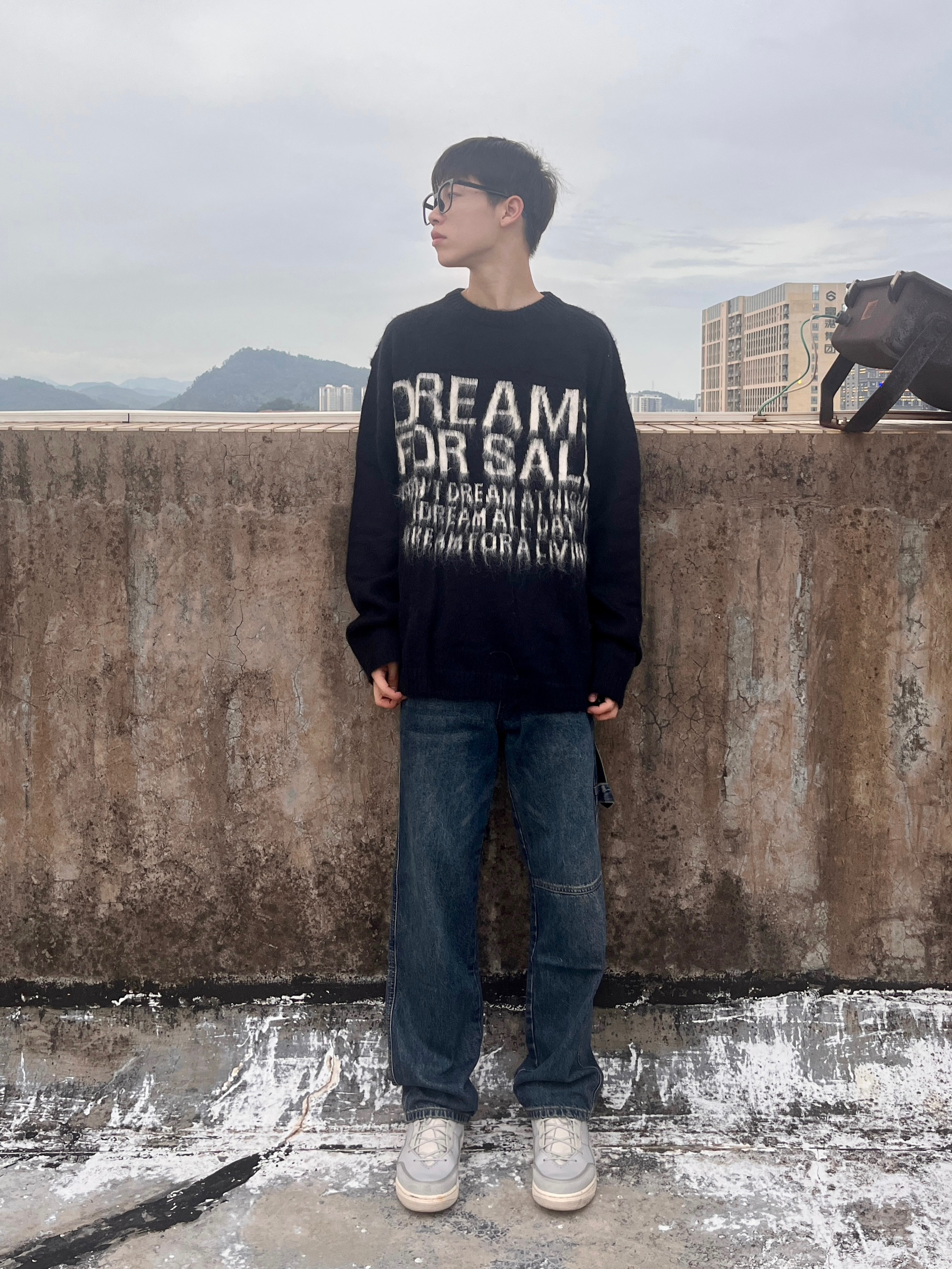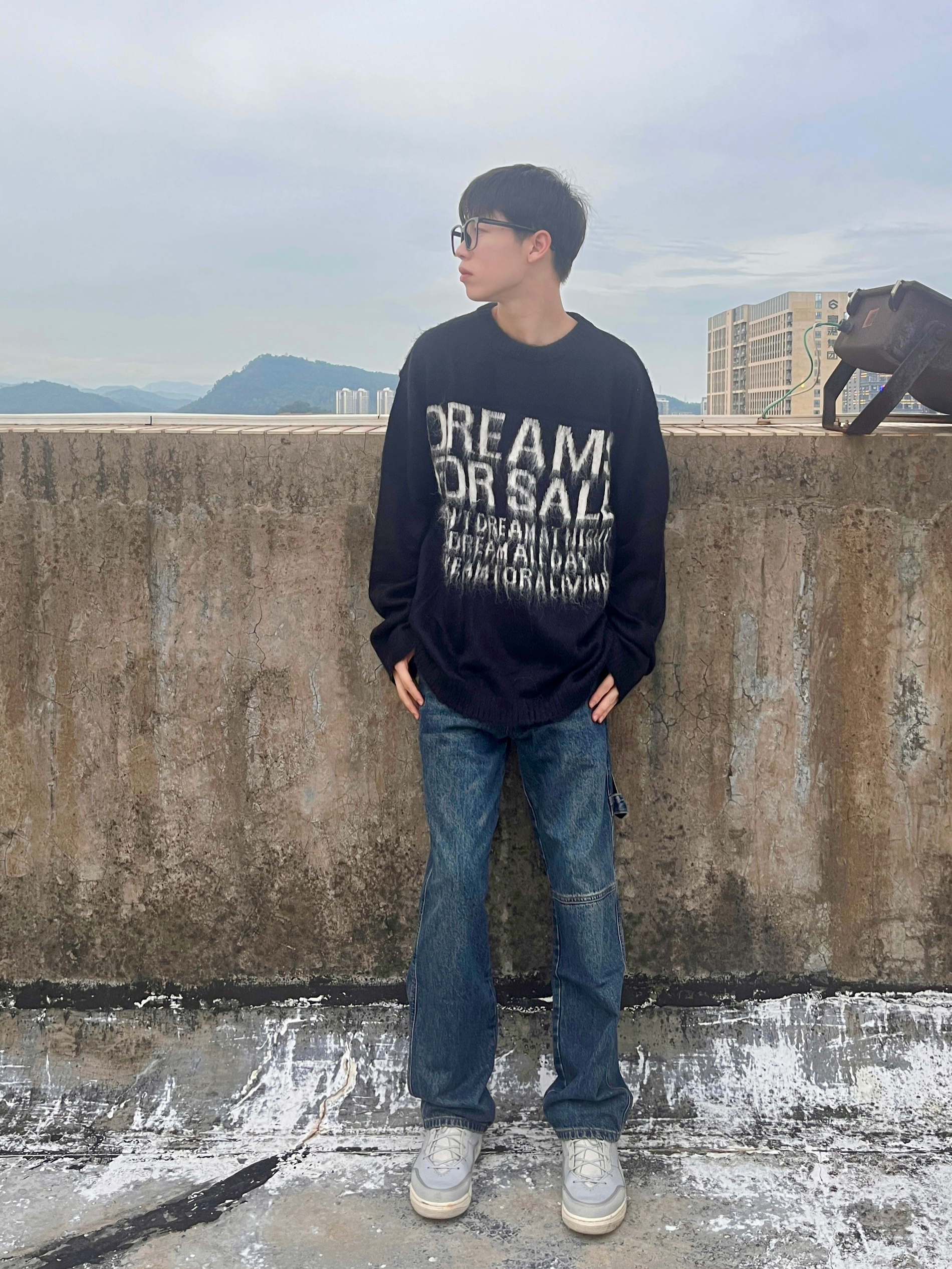 穿搭人5G入秋 今天带来美拉德穿搭分享 衣服是黑色的高颜值毛衣 美式字母印花设计 欧美时尚风拉满 版型宽松舒适 穿上后很修身显瘦 再搭配一条深蓝色直筒牛仔裤 版型显瘦显腿型 以及上脚一双绿色百搭板鞋点缀 一套下来 你get到了吗