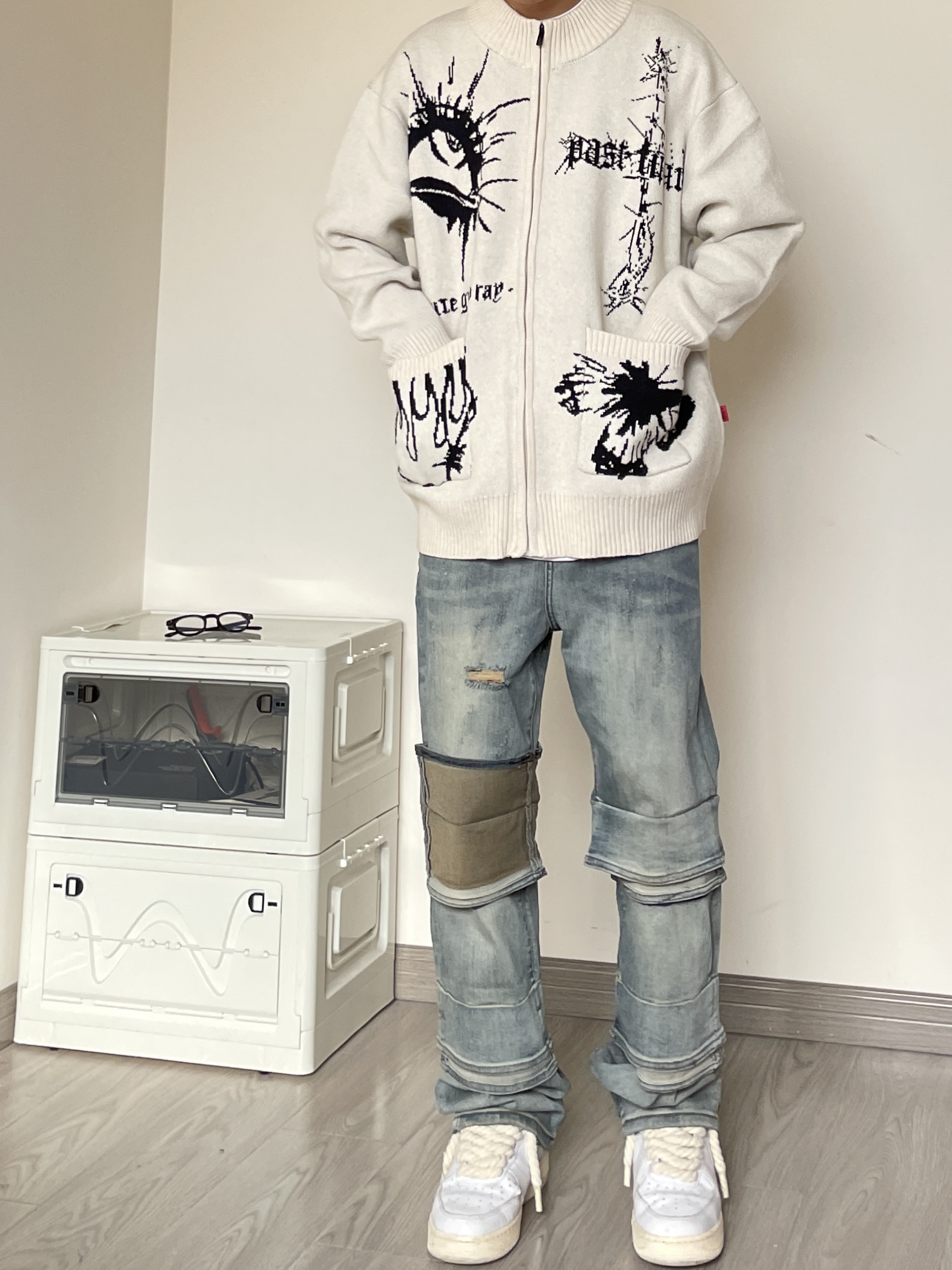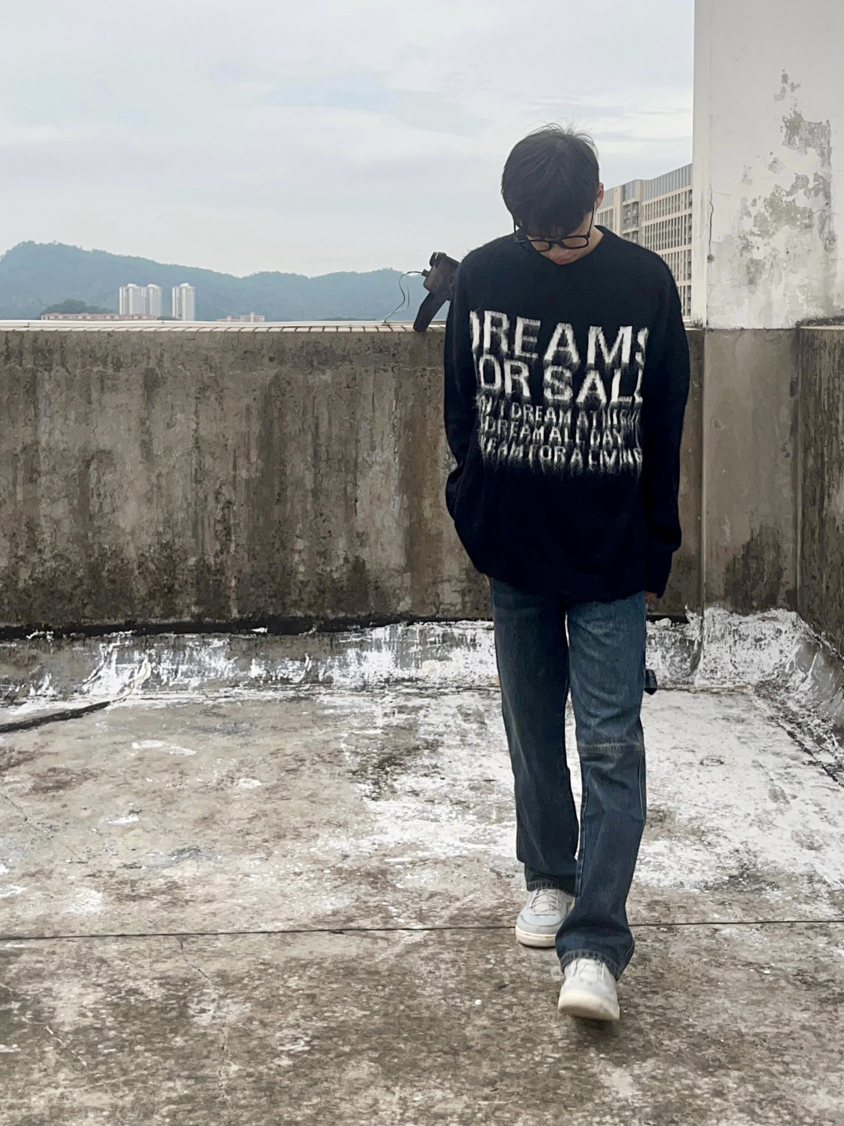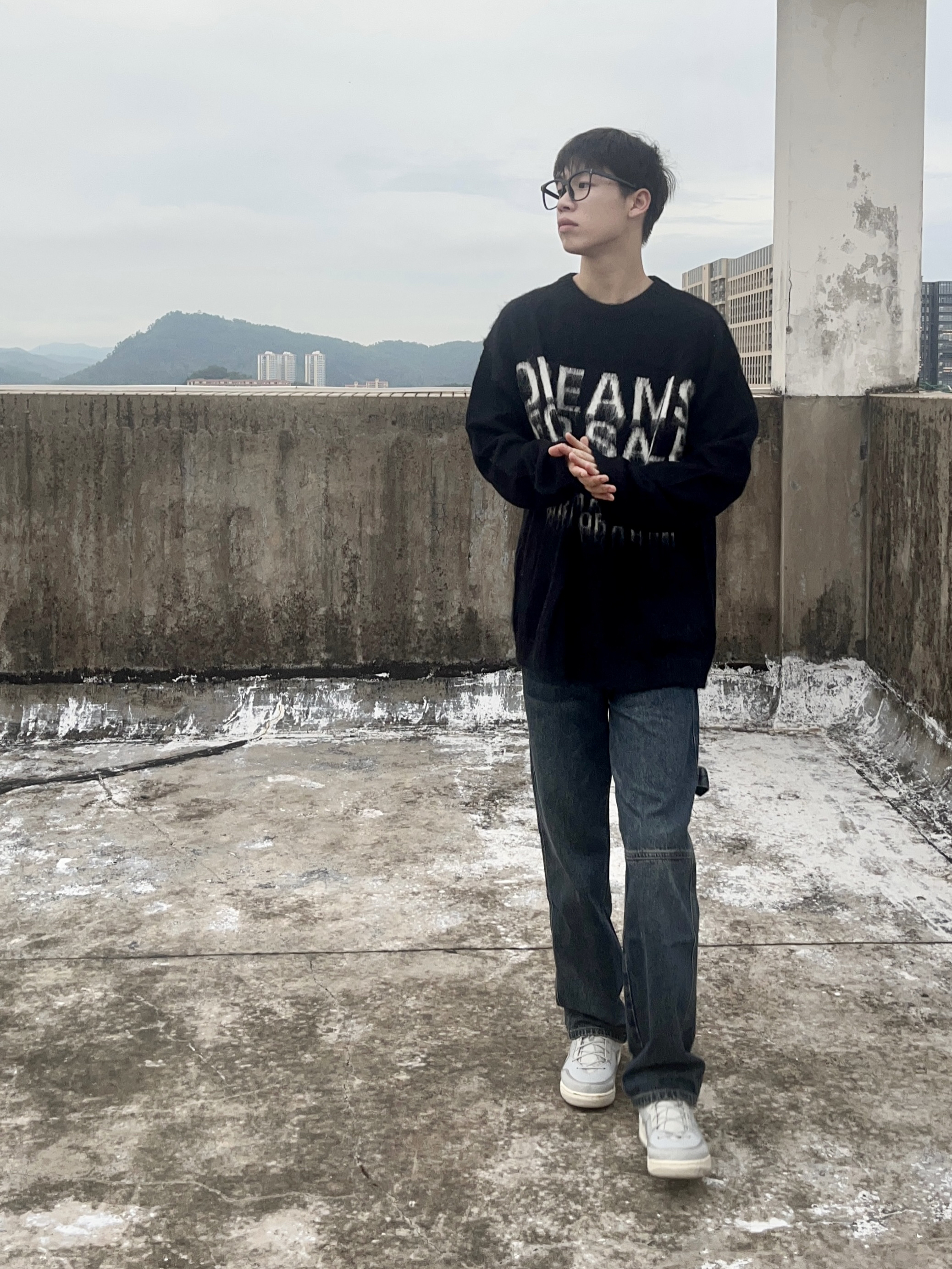 穿搭人5G入秋 今天带来美拉德穿搭分享 衣服是黑色的高颜值毛衣 美式字母印花设计 欧美时尚风拉满 版型宽松舒适 穿上后很修身显瘦 再搭配一条深蓝色直筒牛仔裤 版型显瘦显腿型 以及上脚一双绿色百搭板鞋点缀 一套下来 你get到了吗