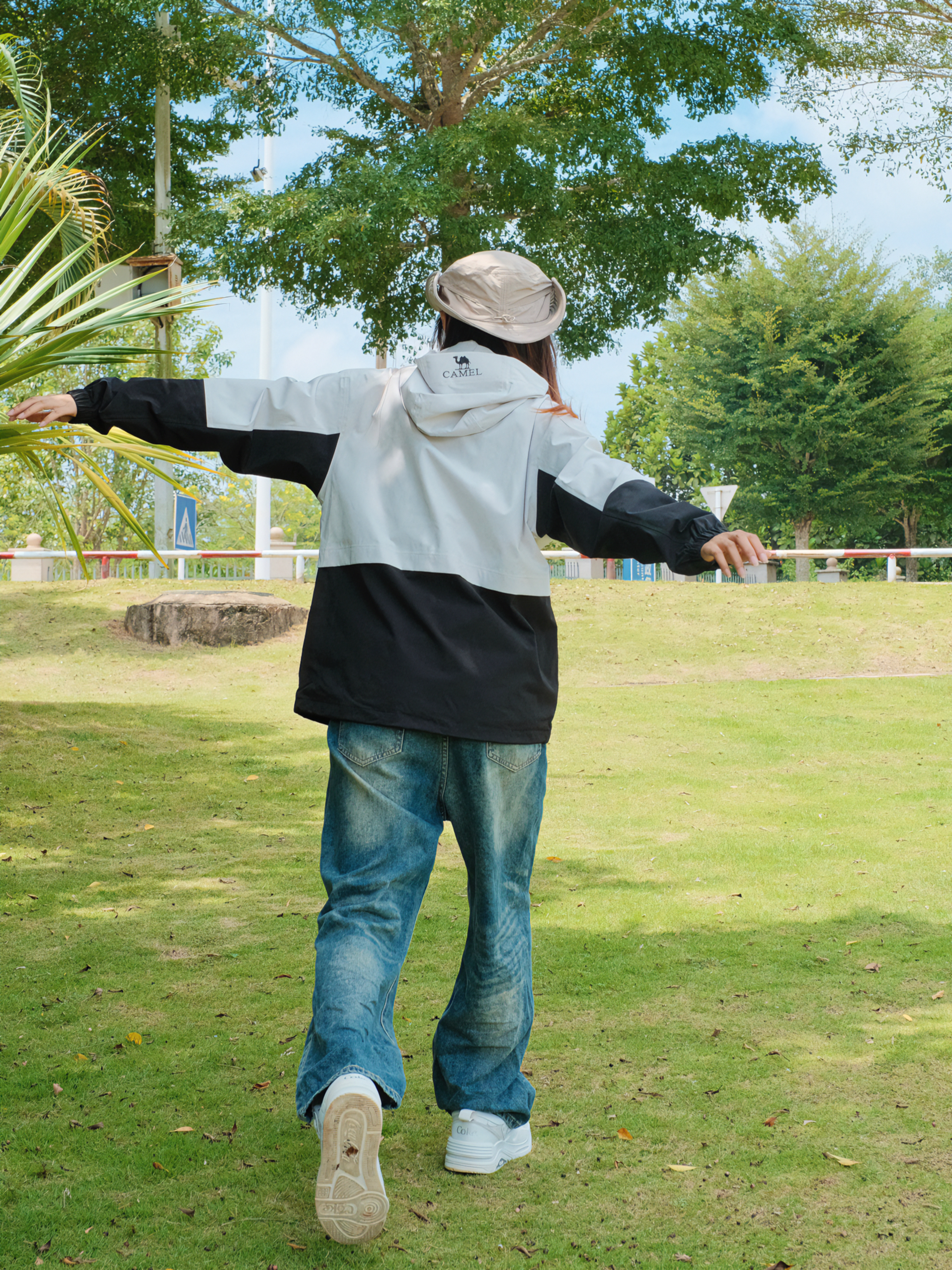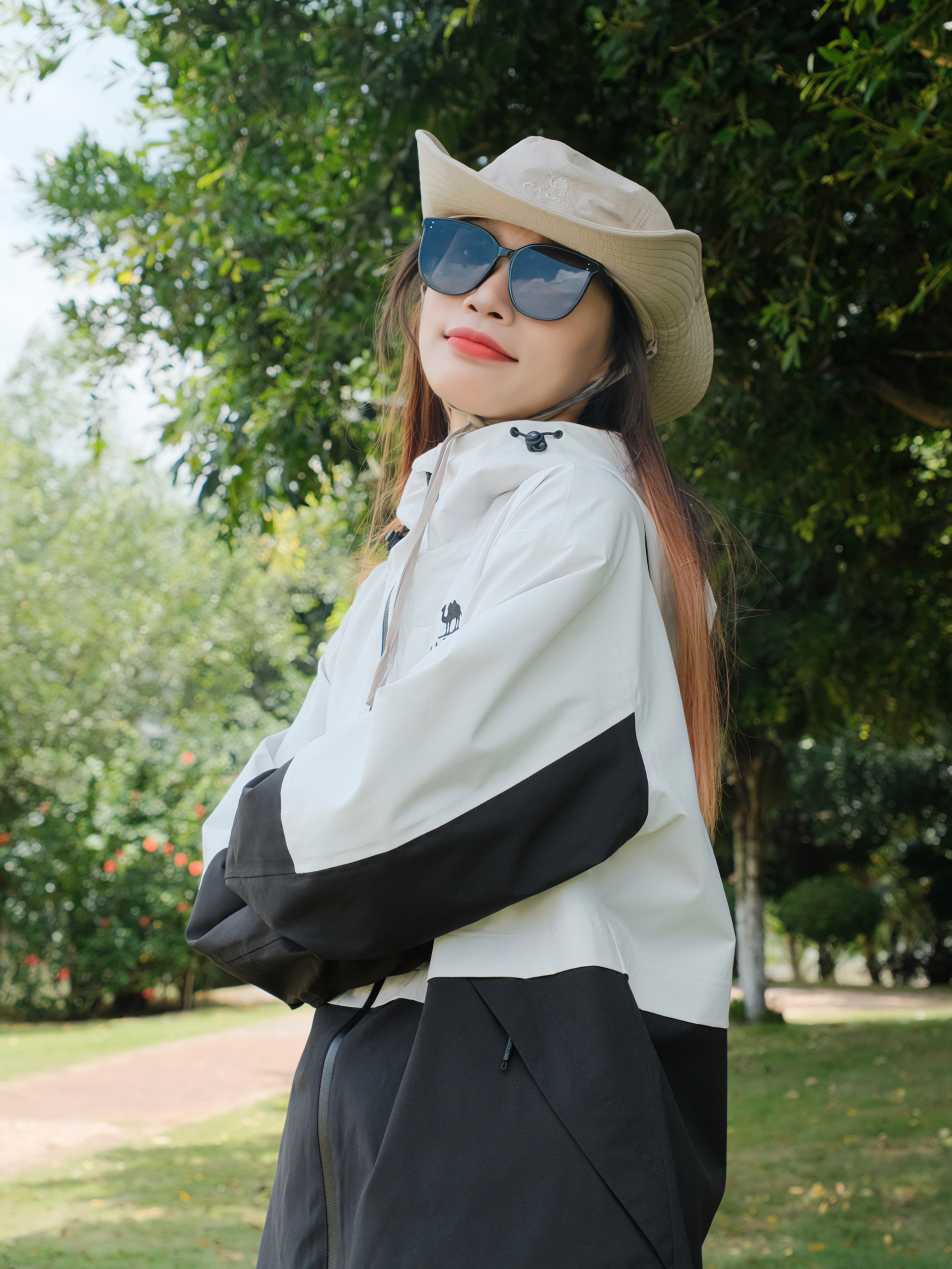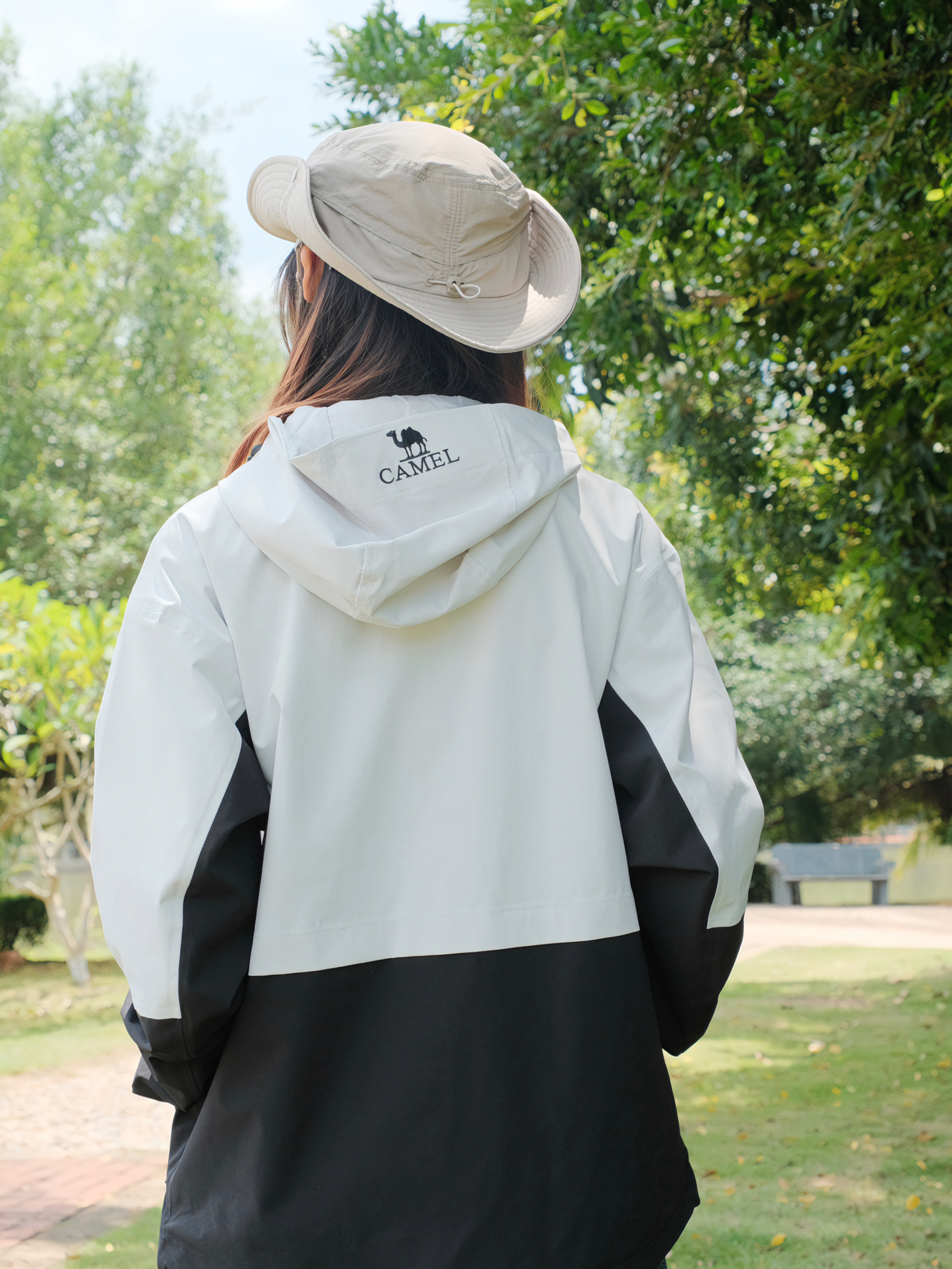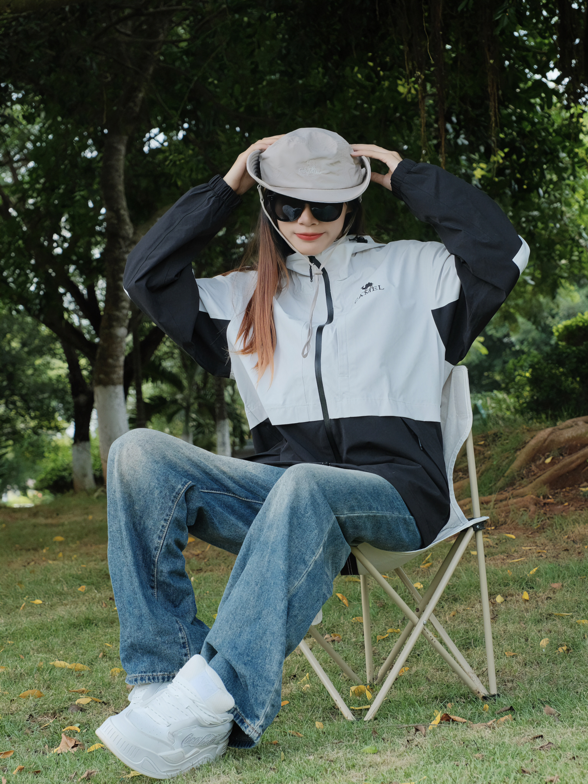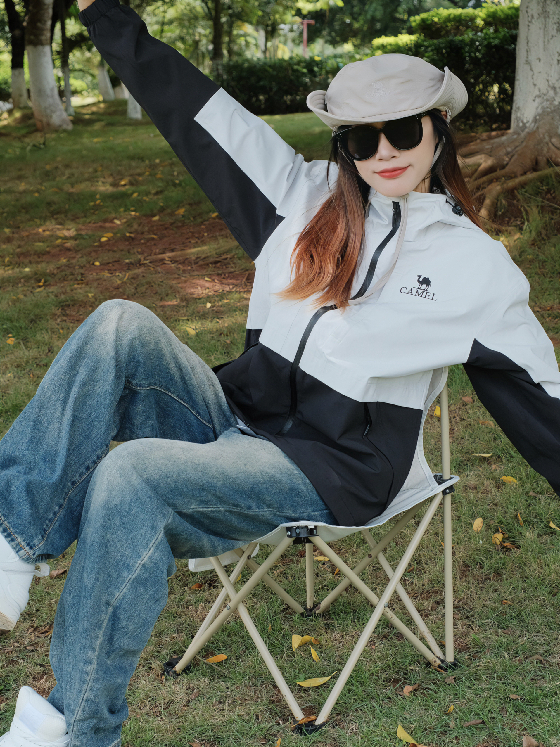 👧:168cm 48kg 👉🏻今日穿搭分享: 👕: CAMEL骆驼 (M) 👖: 长腿辣妹(M) 🧢: CAMEL骆驼 ▫️冲锋衣➕墨镜=最好的医美,匹配度简直不要太高了!!骆驼的这款黑白拼色冲锋衣太帅了,比纯黑色更有层次感,防风防水面料不怕突然下雨啦☔️徒步户外旅行就是很适合呀~ ▫️搭配宽松工装裤牛仔裤都很OK,主打一个百搭✌帽子可以可扣也可放,️还能调节帽围!!全套装备就差大黄...