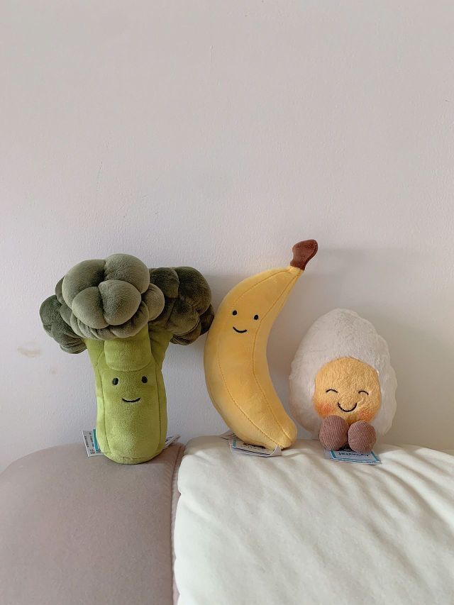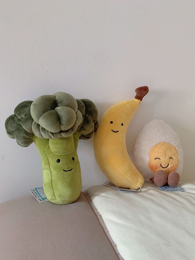 🥦 Vivacious Broccoli “活泼西蓝花” 🥚 Blushing Boiled Egg “脸红水煮蛋” 🍌 Fabulous Banana “美味可口香蕉” (向蕉蕉道歉,标题打不下了🥺) - 三个小只的Jellycat太可爱啦 开心食物三剑客 啊啊啊啊啊啊,每一个都好可爱选谁陪我去学校呢?