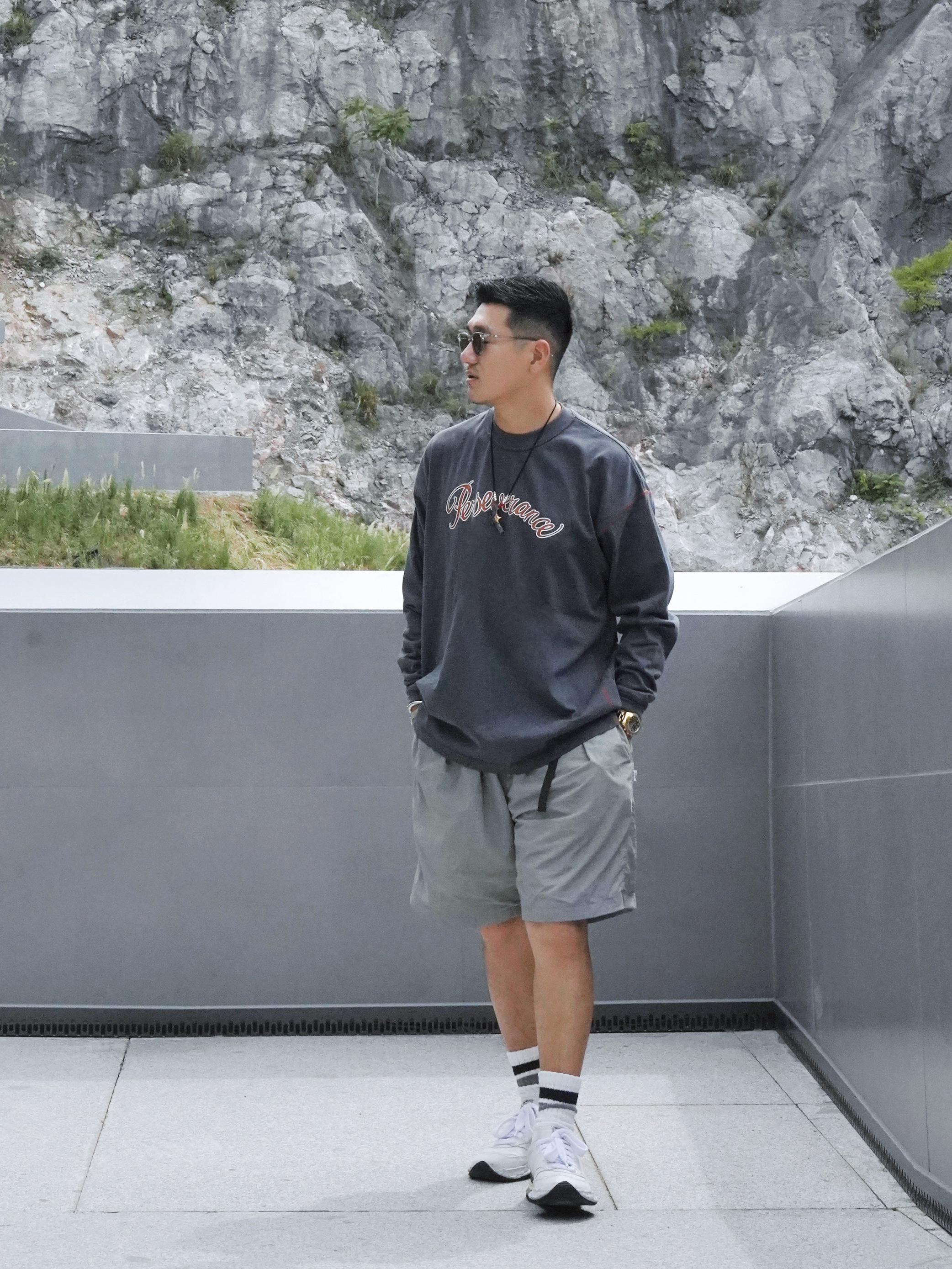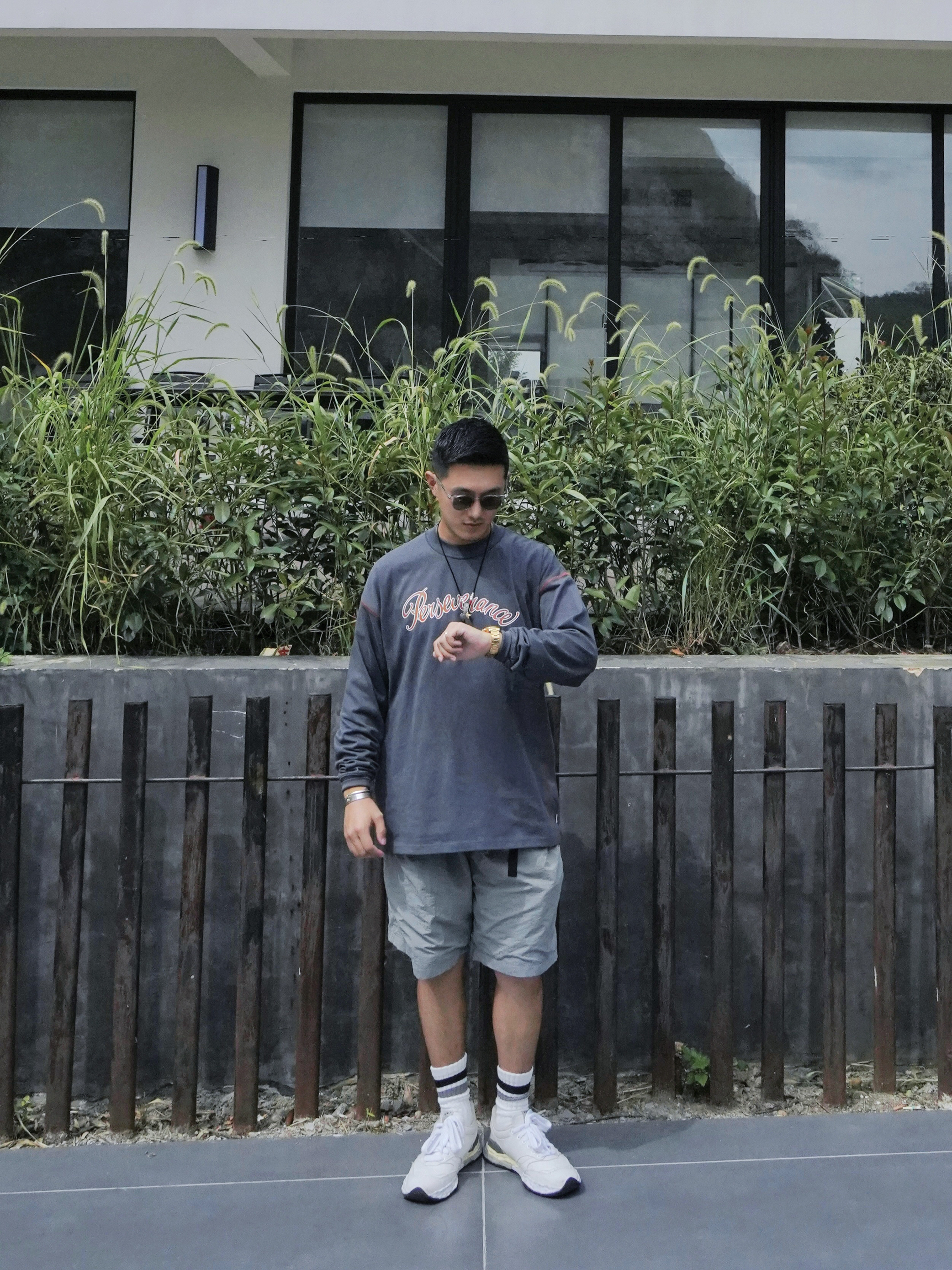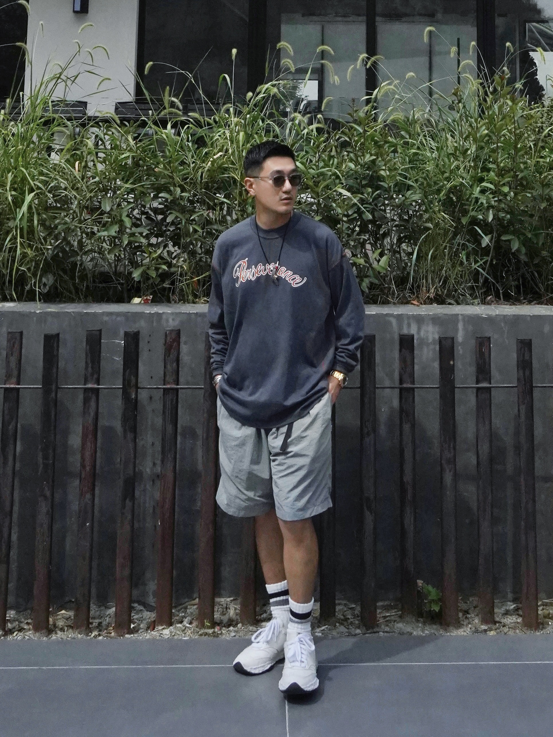 在这个入秋的季节🍂 你可以选择一件缝线复古字母印花长袖与豆沙绿短裤还有条纹毛巾袜完美搭配✨ 既独具一格 又能展现你穿搭的态度🌟 保持舒适感的同时 也能让你在人群中脱颖而出 成为最靓的仔🤠 👔 上衣:PAXOM 👖 下装:PAXOM 👟 鞋子:Mihara Yasuhiro