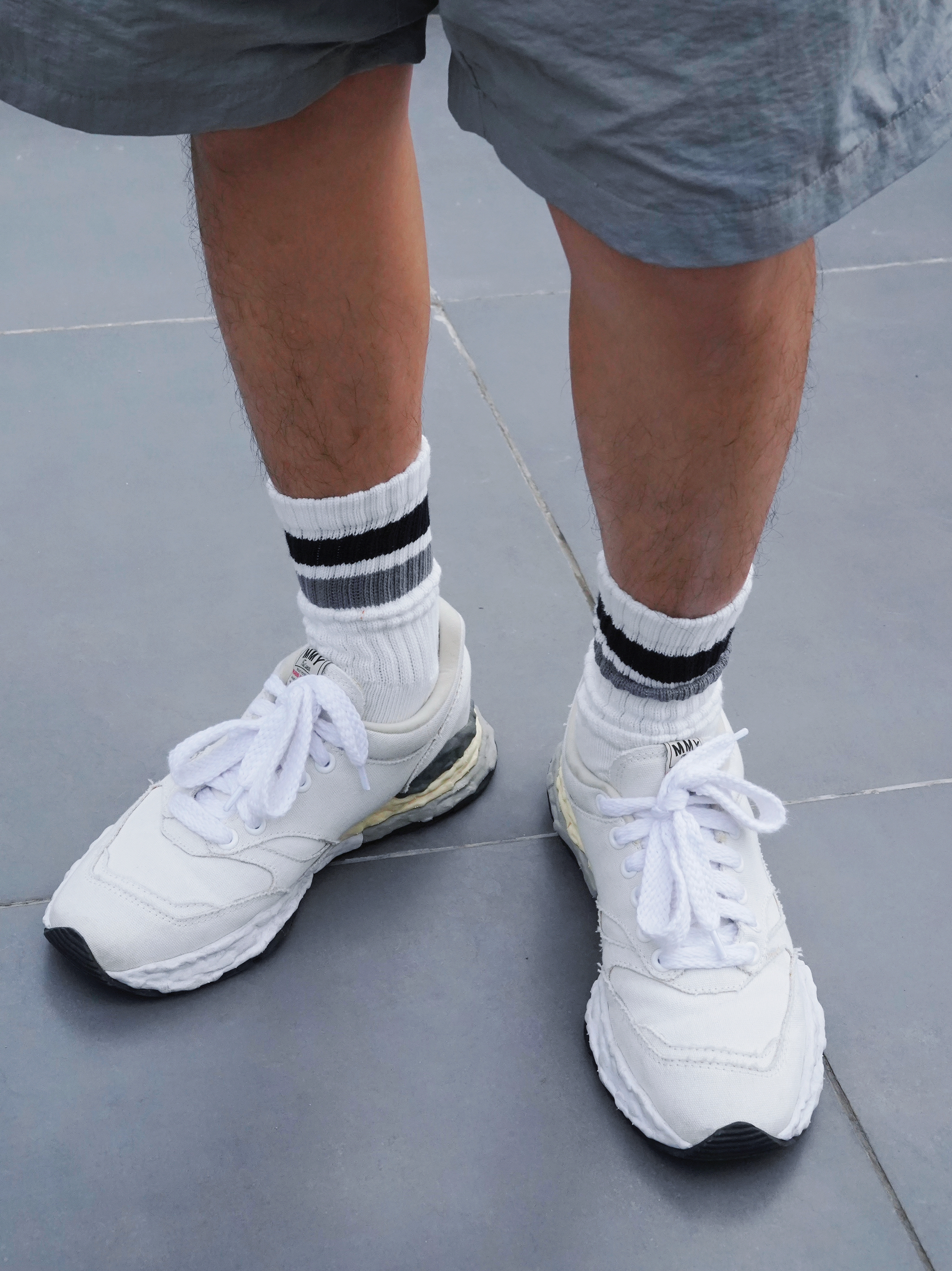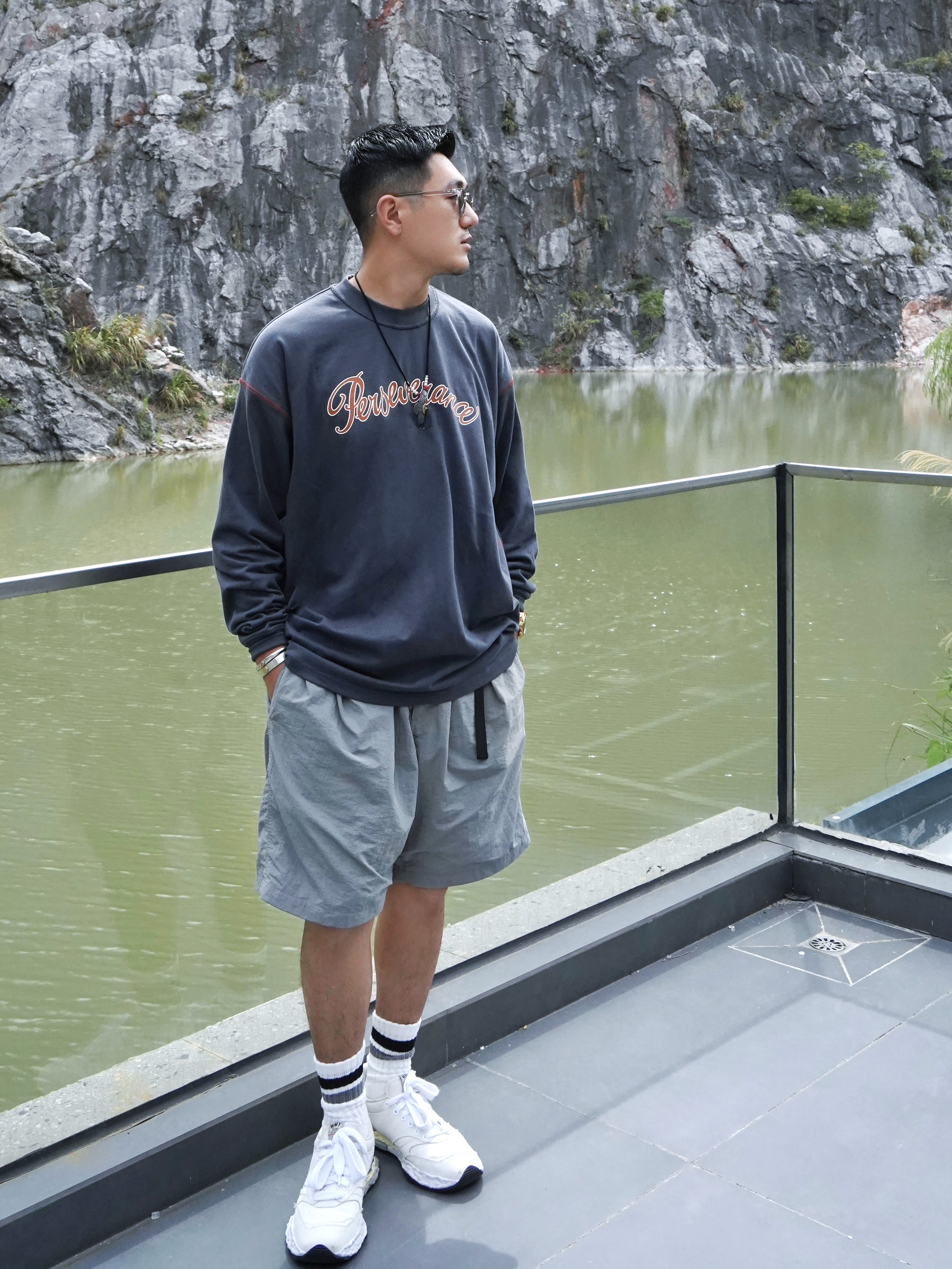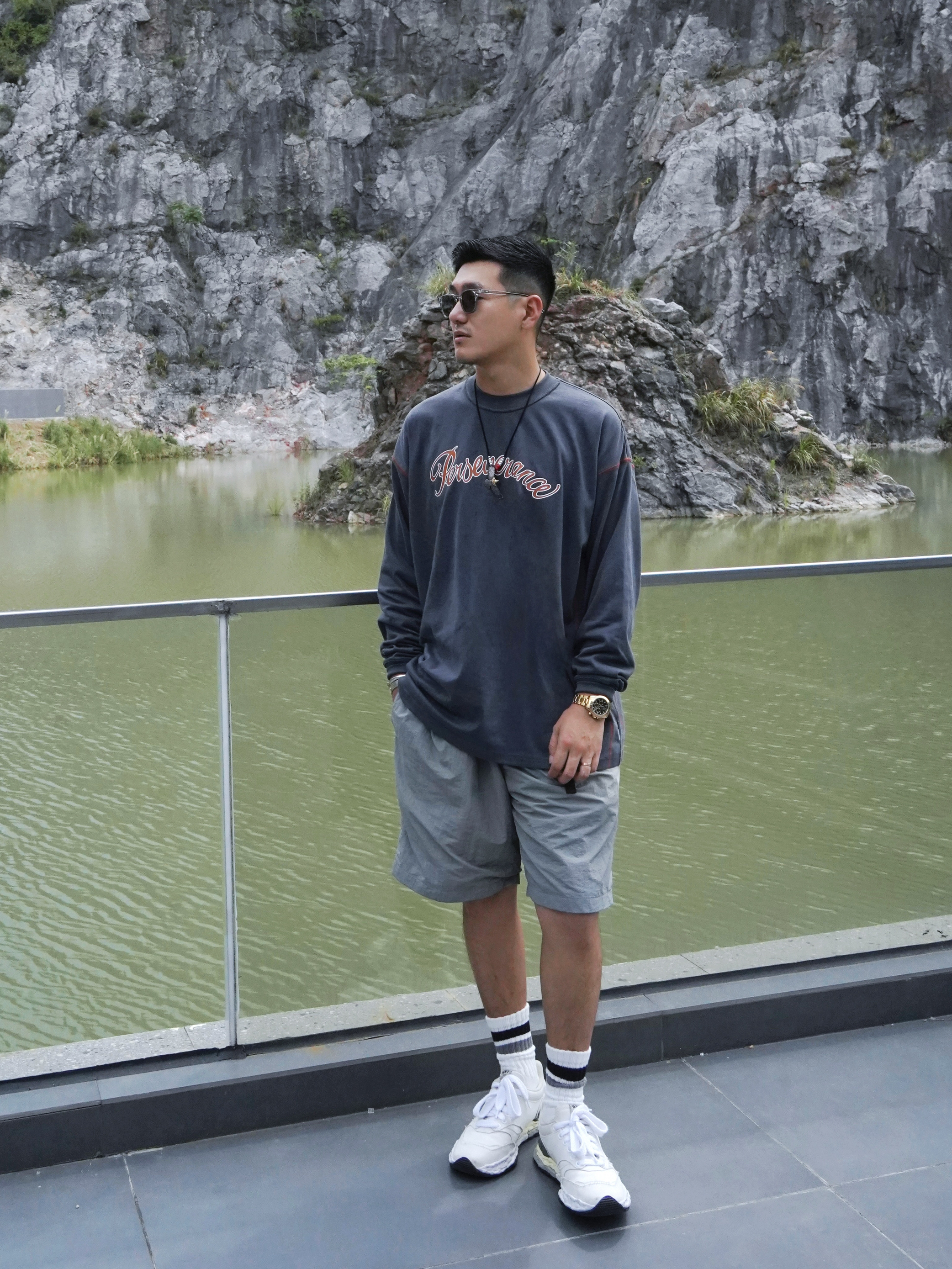 在这个入秋的季节🍂 你可以选择一件缝线复古字母印花长袖与豆沙绿短裤还有条纹毛巾袜完美搭配✨ 既独具一格 又能展现你穿搭的态度🌟 保持舒适感的同时 也能让你在人群中脱颖而出 成为最靓的仔🤠 👔 上衣:PAXOM 👖 下装:PAXOM 👟 鞋子:Mihara Yasuhiro