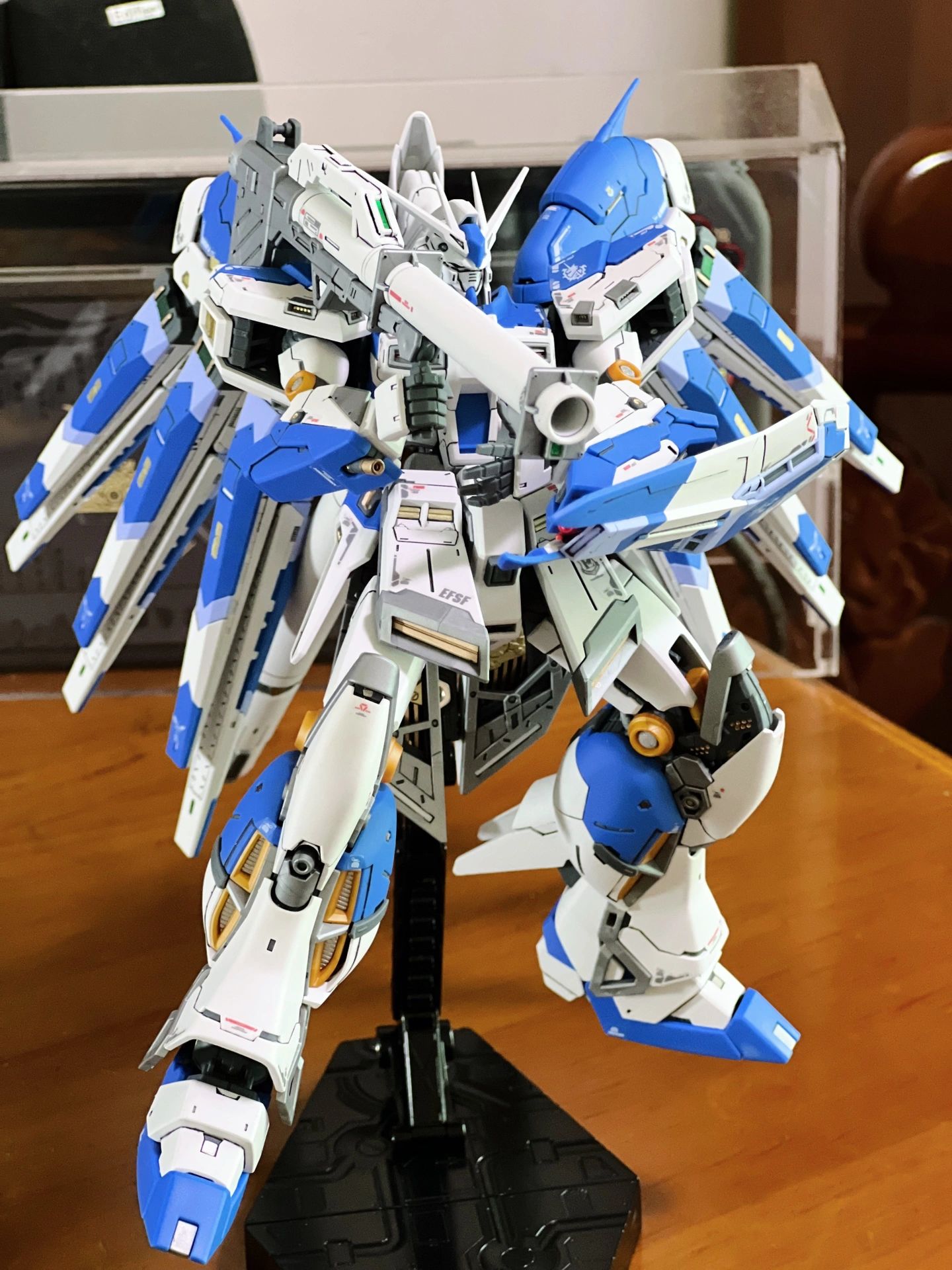 💗俺又买玩具啦 给大家分享一下今天的万代rg海牛高达 💗最吸引我的一个点‼️就是无论是牛高达还是海牛高达的一个比较明显的特征 就是后面的六个浮游炮 常规状态下海牛的浮游炮就是放置在飞行背包上而作为武器使用 可以搭配支架实现浮游炮悬空当作武器使用 也是非常的帅气的 💗而整个模型的高度呢 没有算上飞行背包的话也达到了二十厘米左右的一个高度 而海牛高达一贯的“肥”也让整个整体看起来非常的协调 💗武器方面...