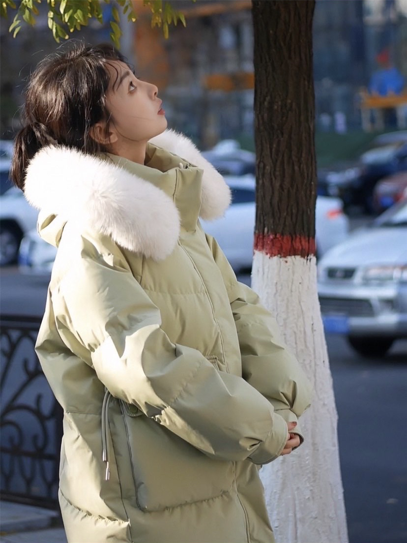 羽绒服也可以这么好看~! 🍞去买面包的路上 有软乎乎的大毛领可以rua~~ 清新的回绿色直接显白几个度 🛋️衣服背后有小桃心C 还有大口袋的设计 里面只要穿一个薄打底 🎏轻轻松松就能抵御寒冷啦~ 显瘦包容,高颜值,实用的中长款式 明亮配色上镜吸睛,防风还保暖!