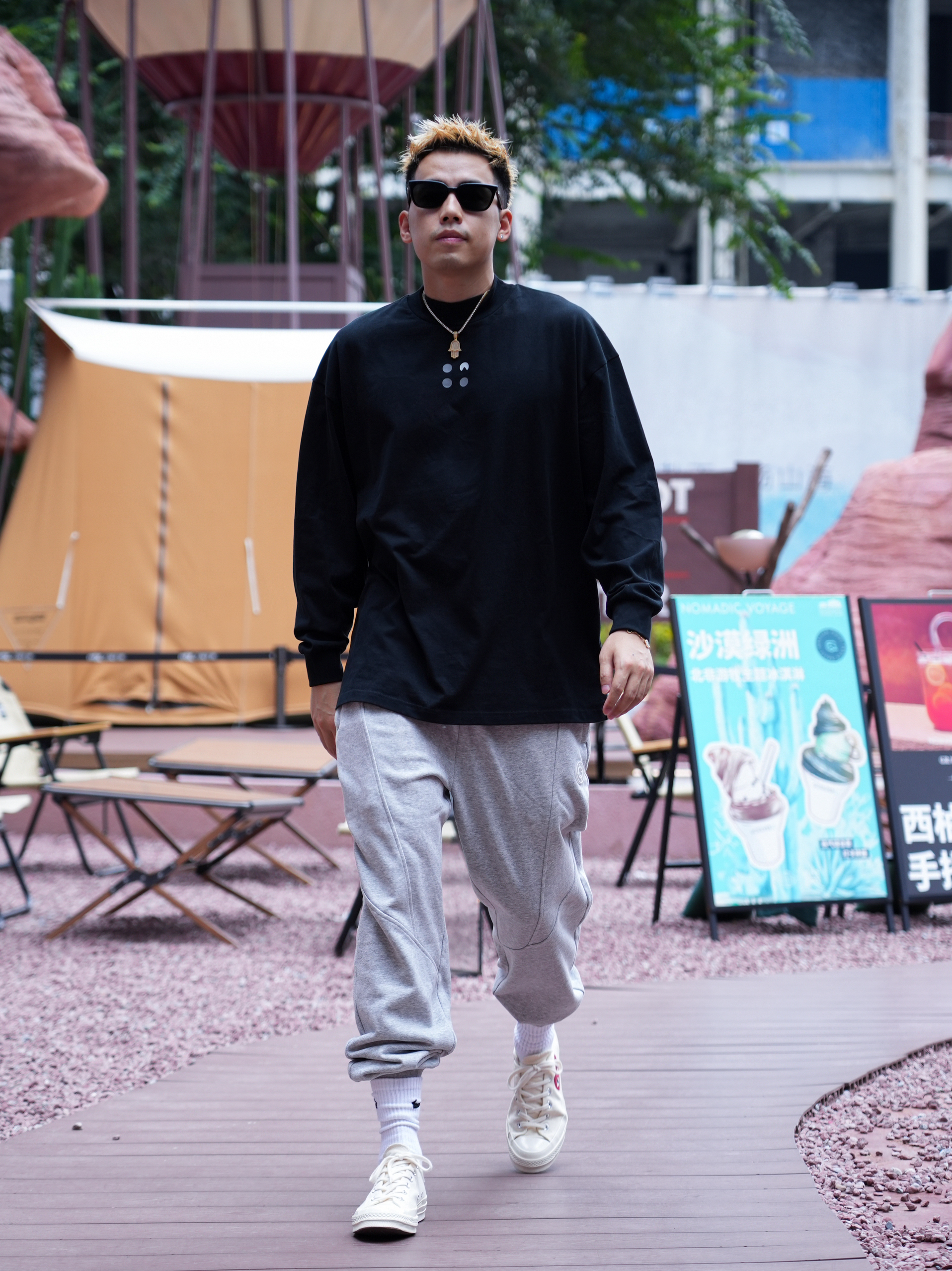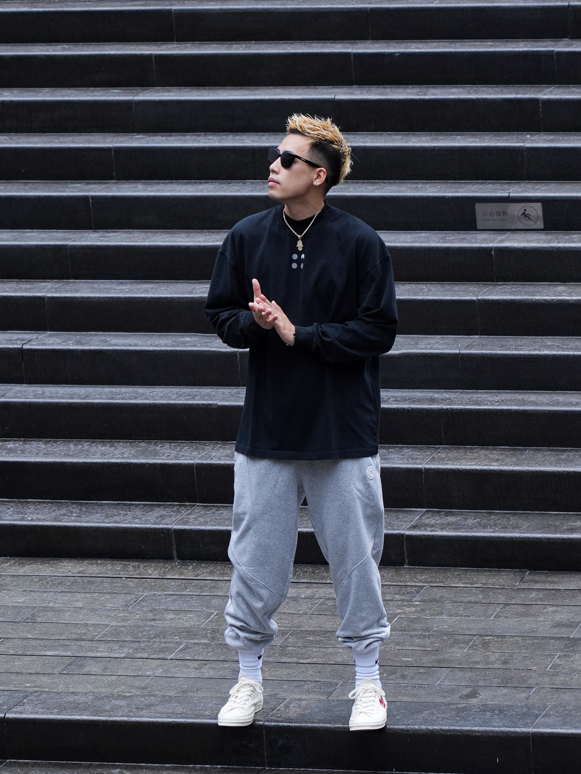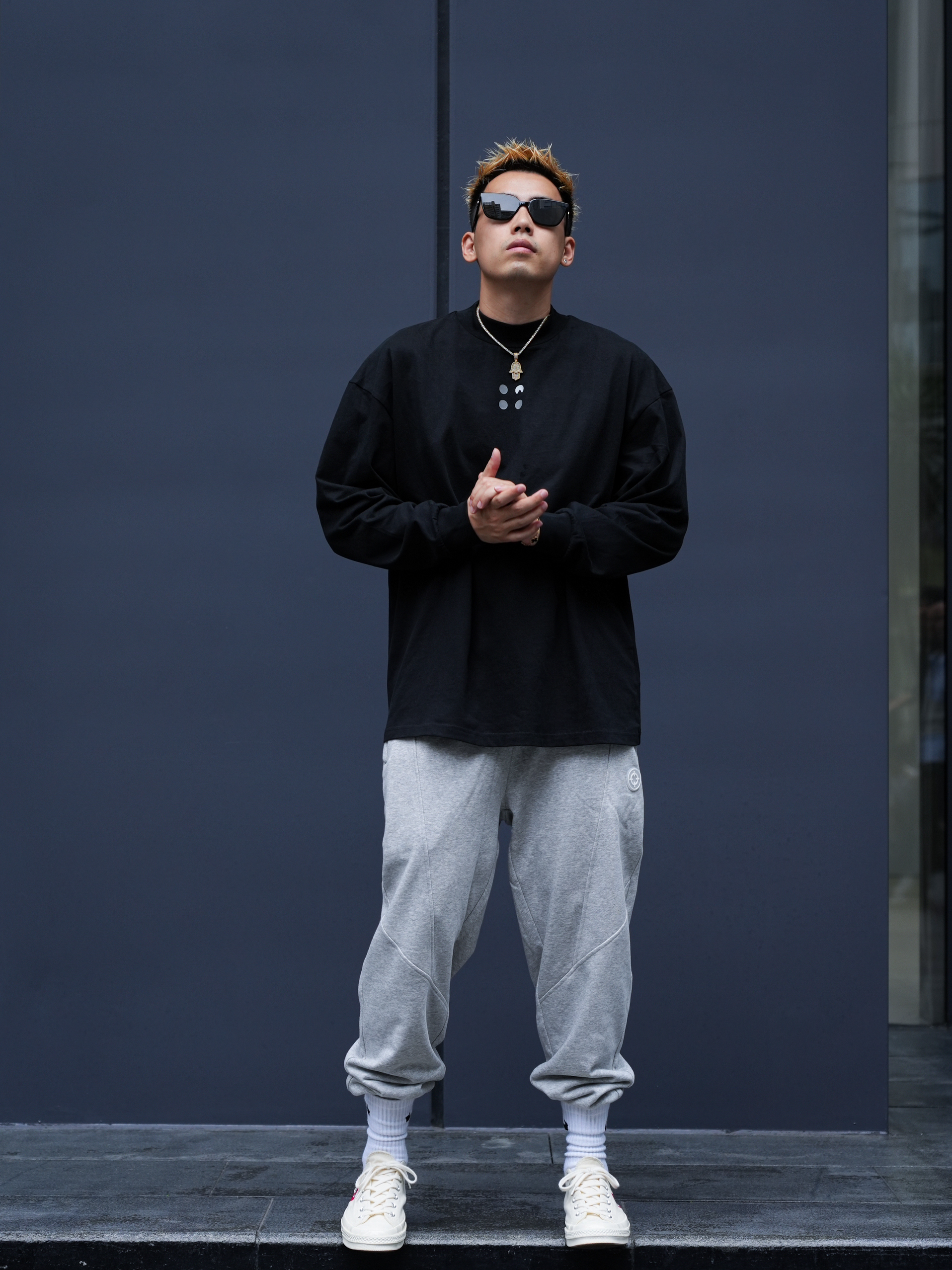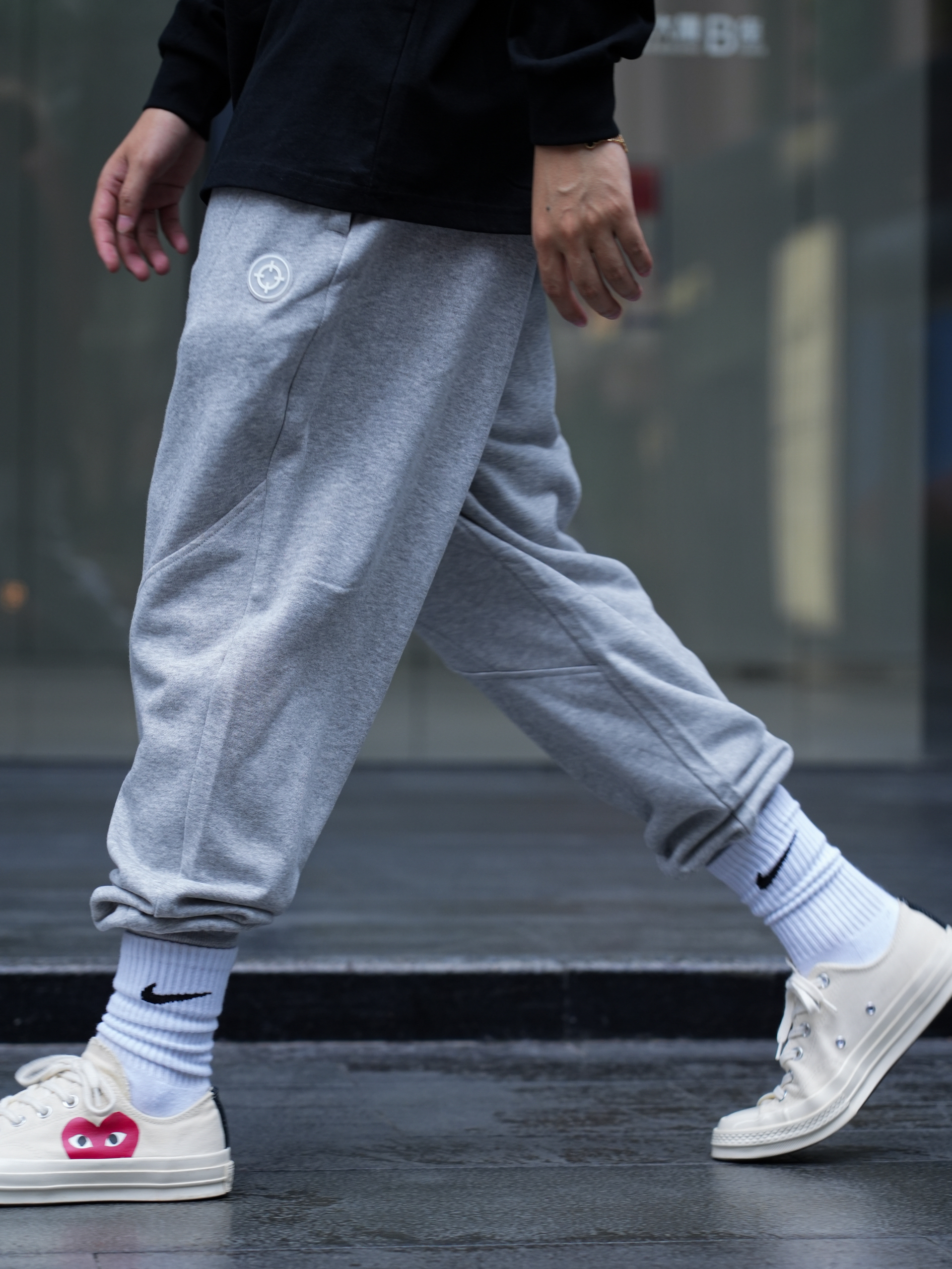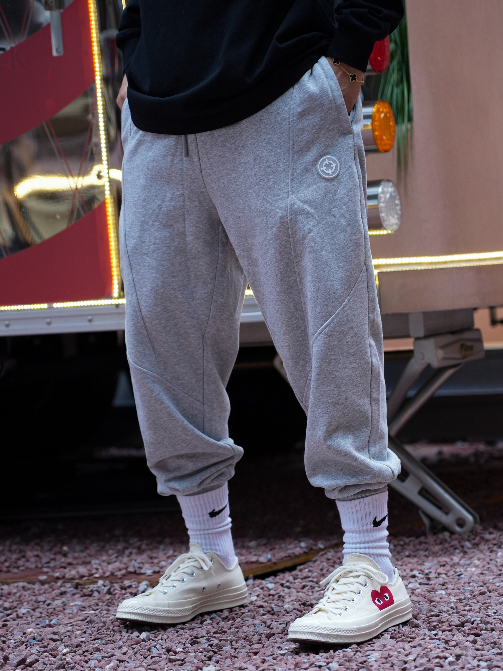 秋冬才是穿搭的主战场 没想到运动风单品也能这么帅 准者射线篮球灰色卫裤 既显腿长又很百搭 基础宽松直筒版型的剪裁 不挑身材运动日常搭配都ok 搭配一件黑色长袖 既可运动又能出街 你学会了吗 鞋:converse 裤:准者