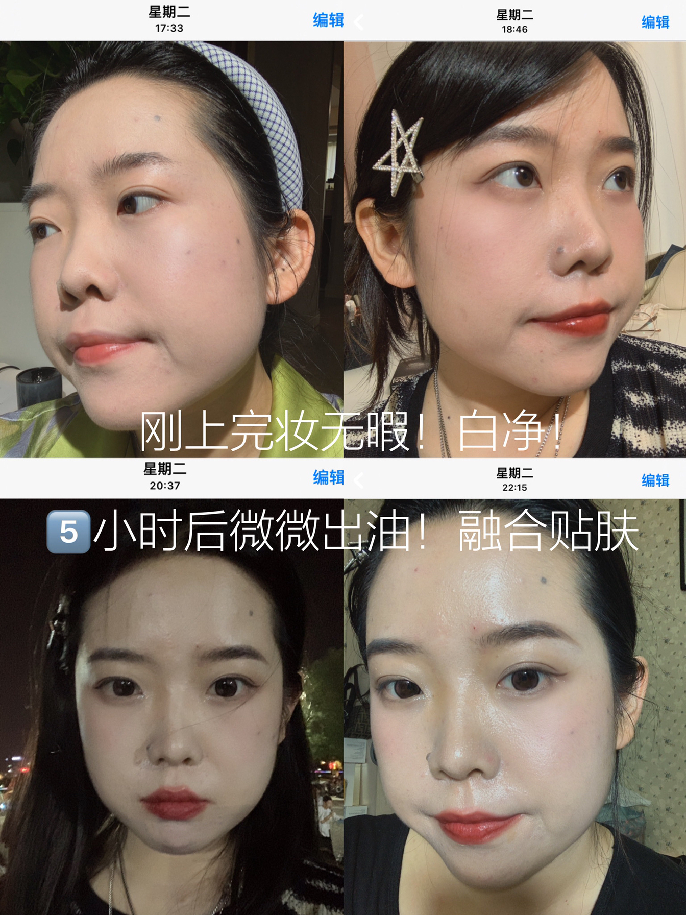 刚拿到手习惯性看了下网上的评论,居然一水儿说不好用不会用?气得我连夜翻了几十篇笔记研究了之后总结出来我的一套用法: ‼️本人夏天混油皮,额头t区下巴都会疯狂出油,但是脸颊干的有时候还会卡粉起皮斑驳。 1⃣️做好补水保湿,让皮肤润润的,但上脸前面部保持干燥,不要太水或太油。 2⃣️我一般是涂完防晒会等一下,等到稍微成膜一点不那么黏再上脸。 3⃣️注意⚠️干皮请用刷子少量多次上脸,也用了一下自带的粉扑...