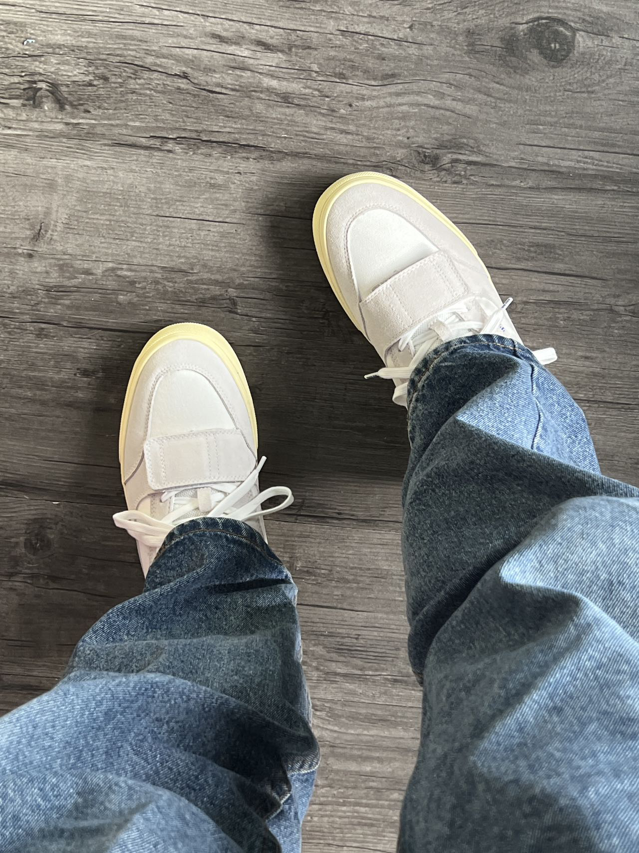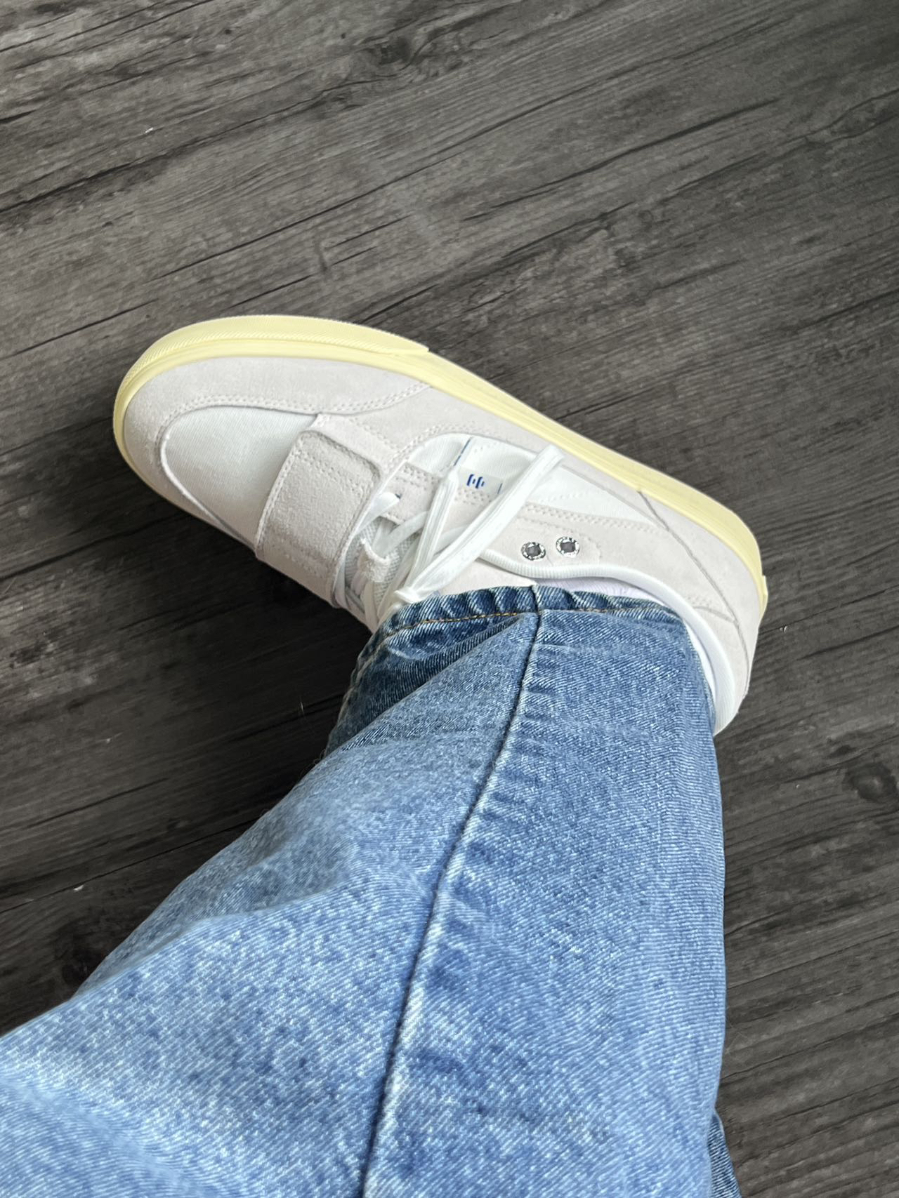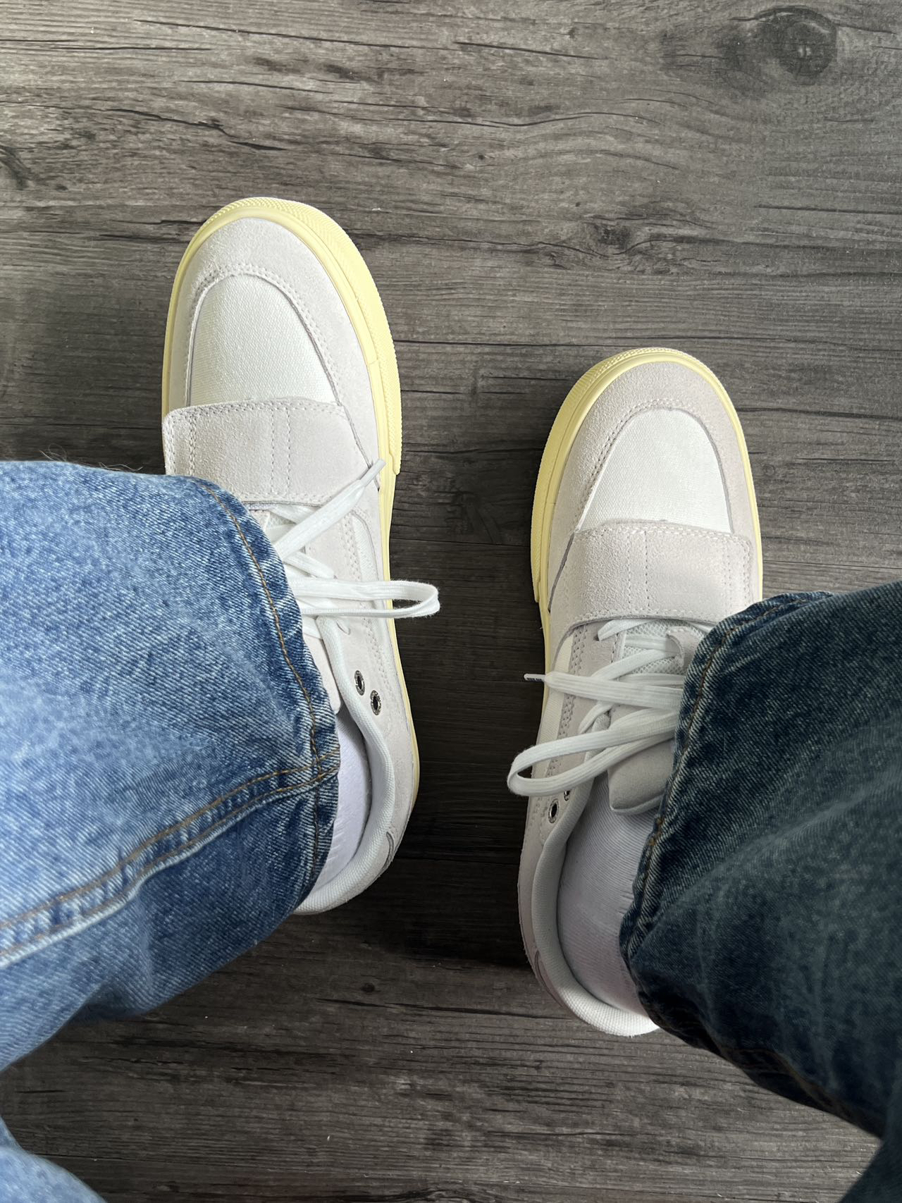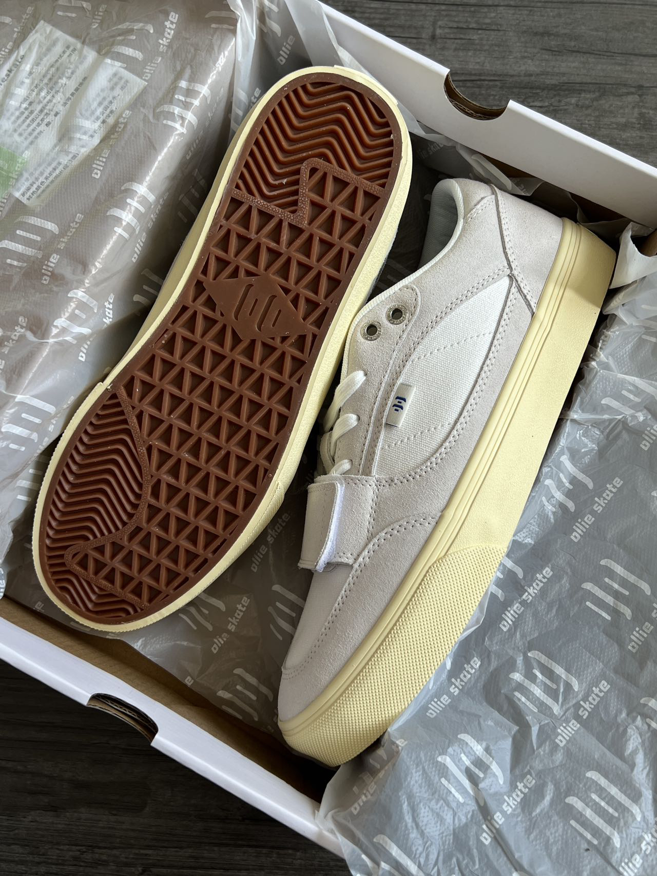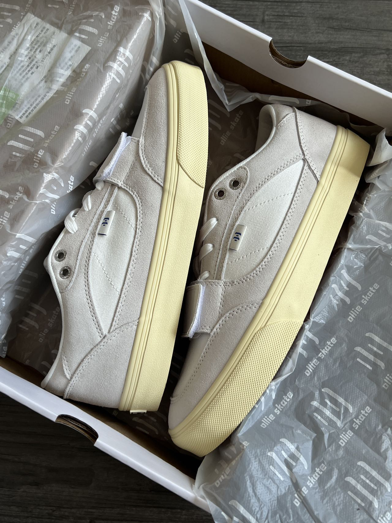 啊啊啊!真的抵挡不住好看的鞋子👋 顽刻新款奶油白魔术贴滑板鞋还怪好看的~ 配色很干净,妥妥的校园感(加分)💯 上脚很轻便,穿着玩板巨巨巨舒服☁️ 焦黄鞋底,看起来有点复古的感觉,很绝! 超爱这双的~太🆒