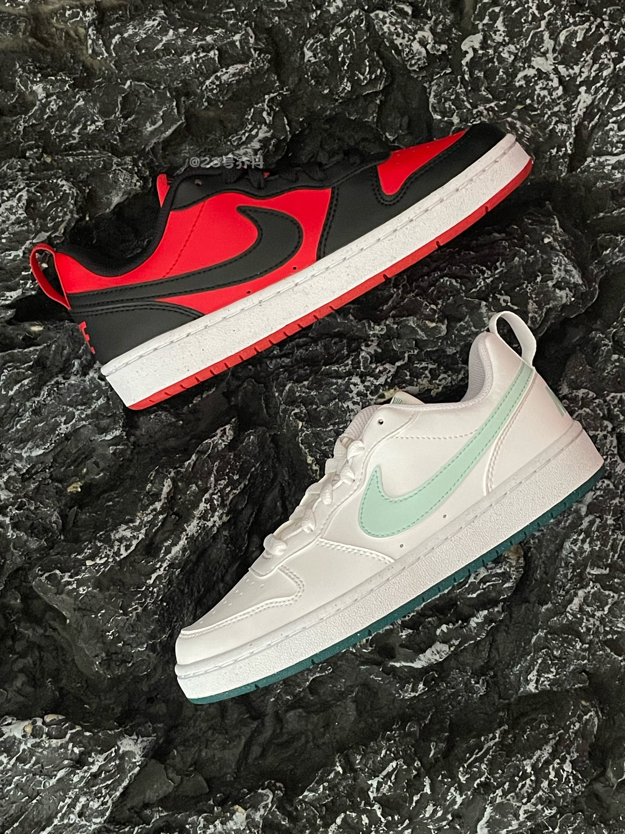 今天给大家分享两双颜值和性价比都不错的板鞋 Court Borough Low『白绿』&『黑红』 🌟『白绿』由白色为主色调 细节部分运用蒂夫尼绿进行点缀 白色的中底和青色的多纹路橡胶底收尾 🌟『黑红』采用了经典的黑色和红色搭配 白色的中底和红色的多纹路橡胶底收尾 鞋面部分都选用了易于打理的光滑皮革材质 鞋头的密集透气孔设计保证了良好的透气性 鞋舌与鞋尾均设计有品牌Lo...