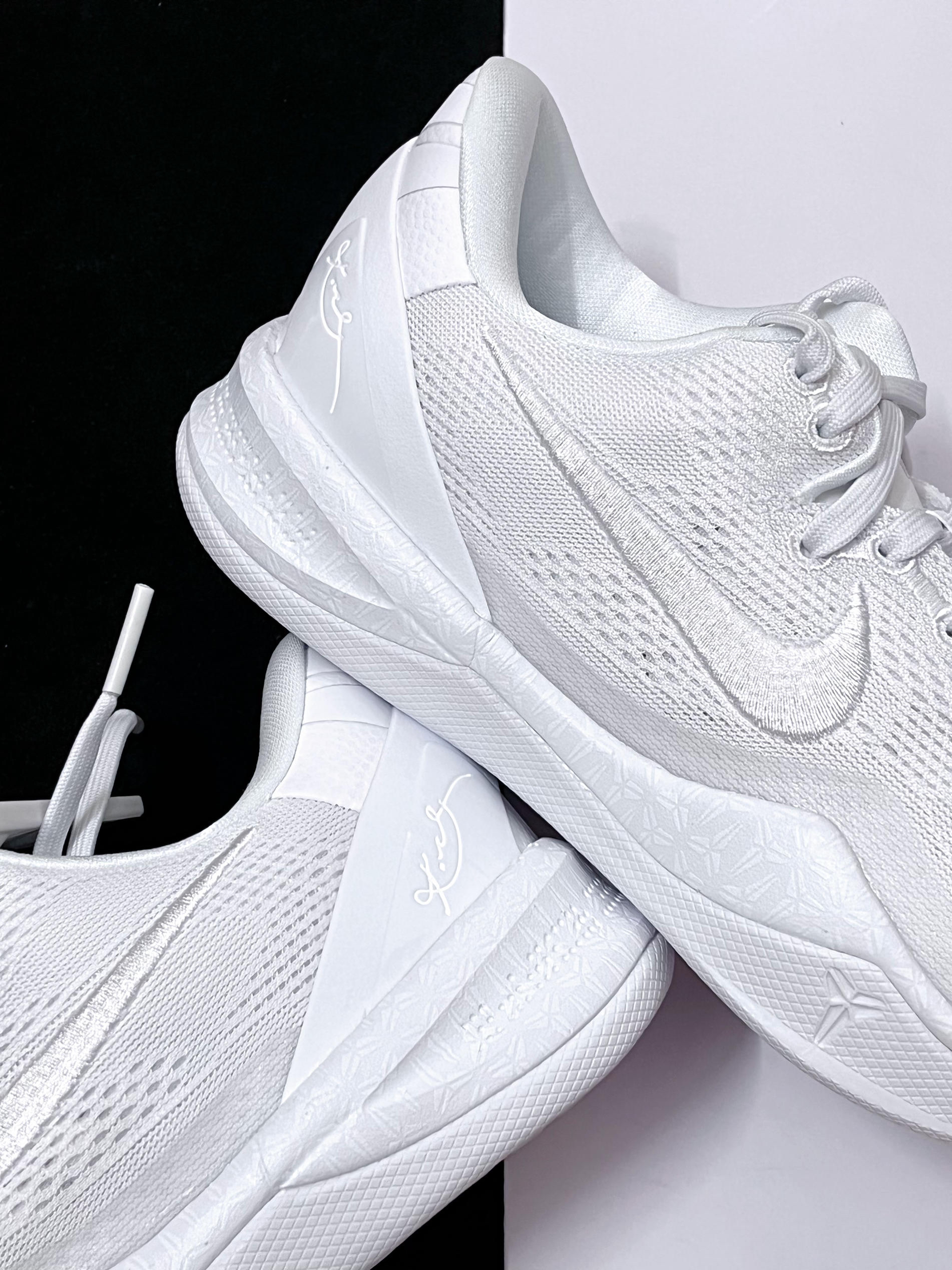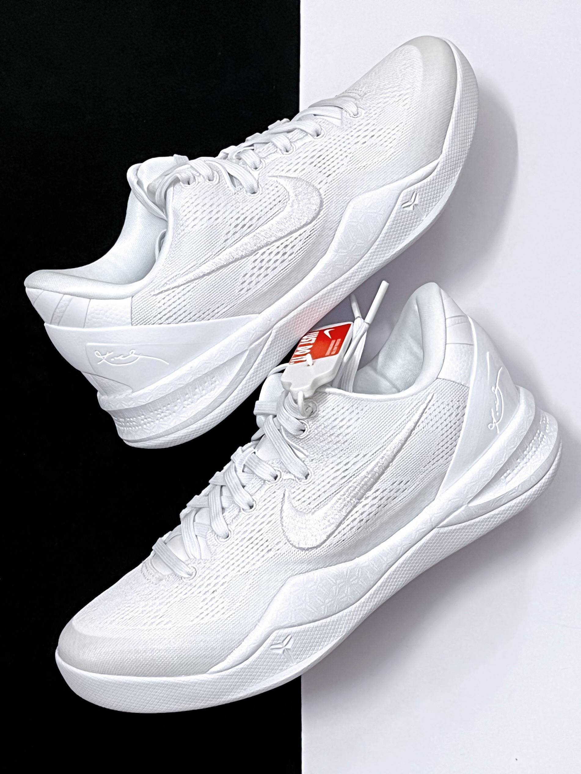 ⚪️终于如愿入手到了这双科比8白龙实战鞋,虽然它的实战性能很不错,颜值很高,但是纯白配色太容易脏了,我不太忍心穿去篮球场实战。 ⚪️它的鞋面材质有点像跑步鞋那种飞织材质,上脚的一个透气性很不错,并且不容易变形,作为一款日常通勤鞋穿,我觉得会更合适,舒适性到位,颜值高且百搭。 ⚪️马上就要迎来开学季了,你们会把这一双科比8,作为一款实战鞋穿,还是校园里的日常通勤鞋穿呢?
