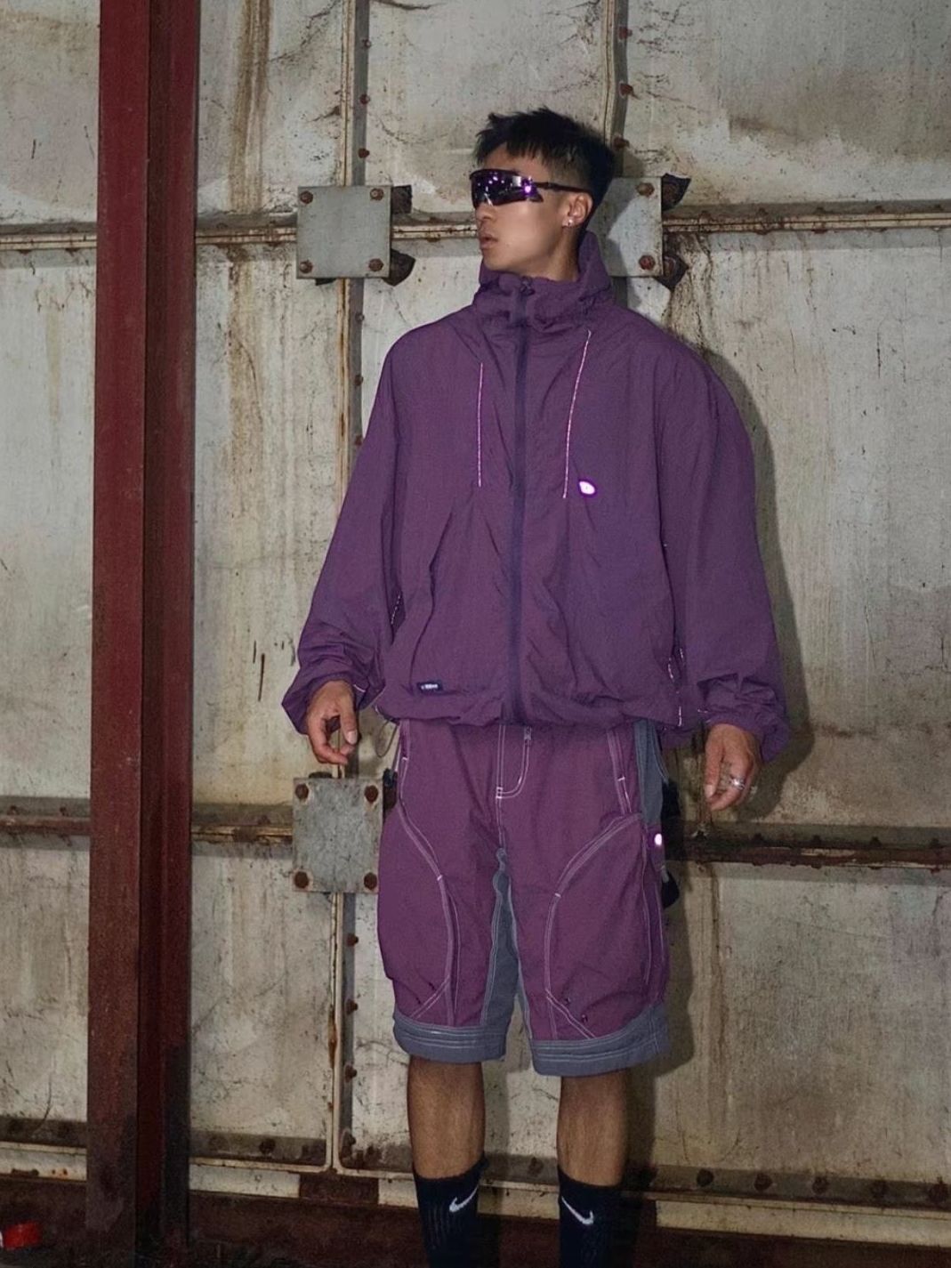 今天一身紫色穿搭出街 机能风外套搭配工装短裤 夏日出街必须佩戴墨镜 不用再皱眉看路,可以更好地直视阳光,而且还非常🈶型 一双拖鞋穿遍整个夏日 不论刮风下雨这样的穿搭都丝毫不怕,雨季要功能也要有型~ 图源网络侵删