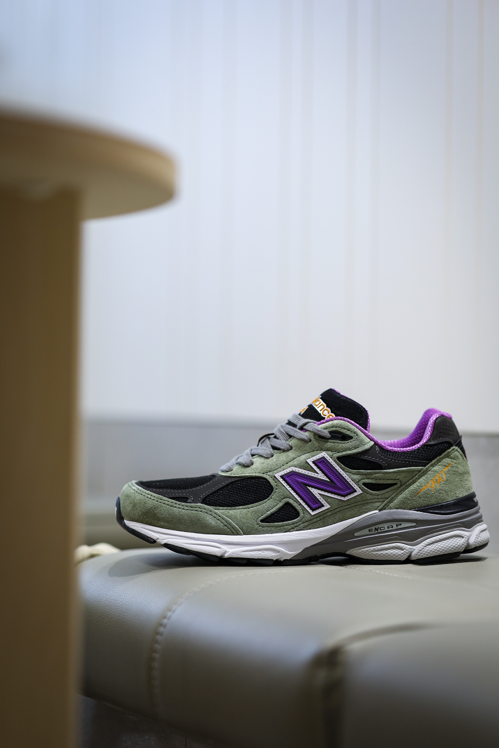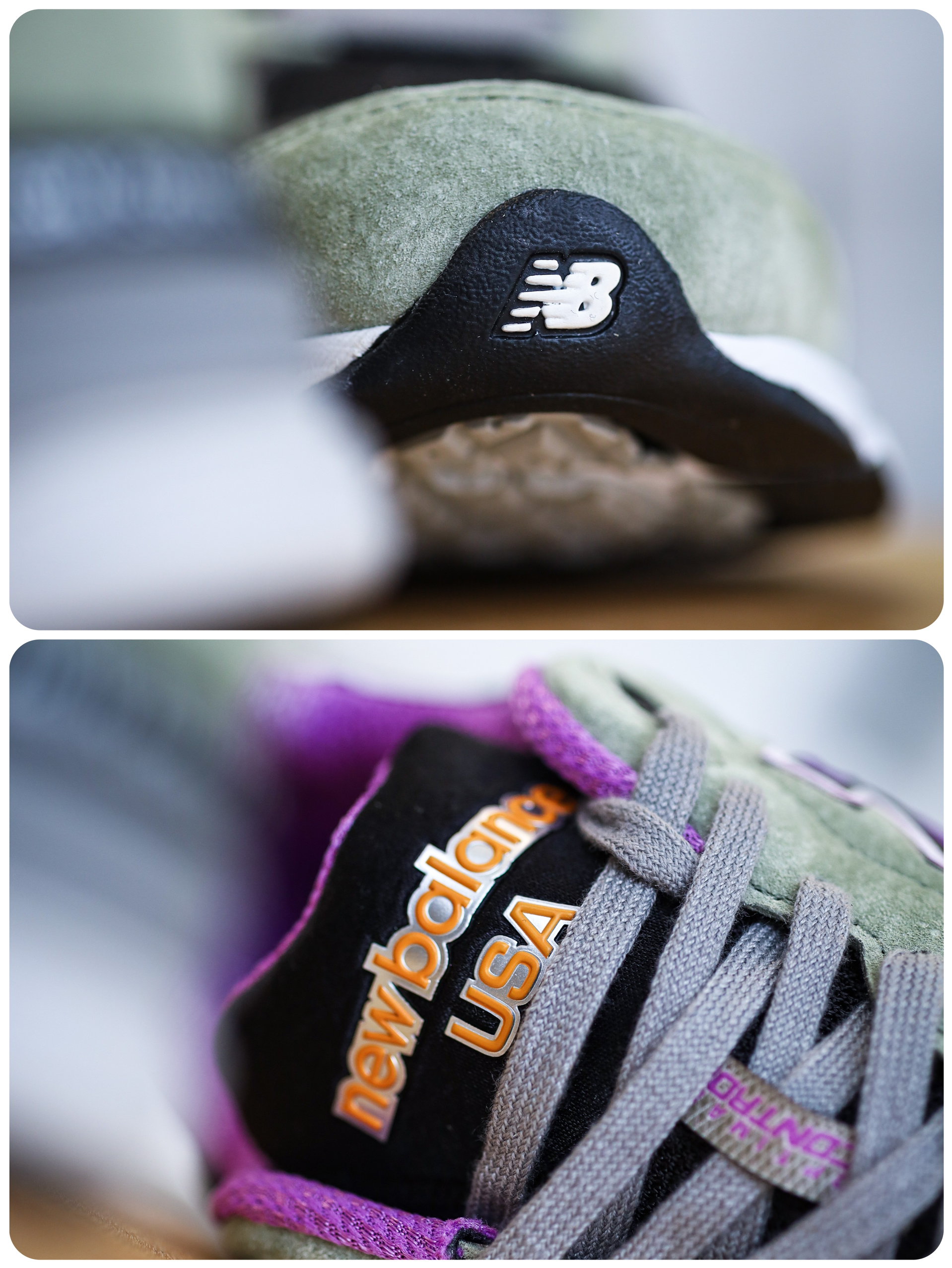 今日份的复古跑开箱,还是来自好兄弟的New Balance,今天分享的这双990 V3 Teddy Made,不知道你们觉得怎么样呢? 鞋面是军绿色麂皮与黑色网面拼接而成,麂皮部分的质感和手感都不错。鞋身侧面的logo和内衬则是用紫色点缀。 这种撞色的设计比较特别和吸睛,但是必然就会有一部分朋友觉得紫色驾驭不了,比如我,哈哈~ 不过实话实说,这双鞋的做工还是很不错的,质感也在线。能够接受这个配色的...
