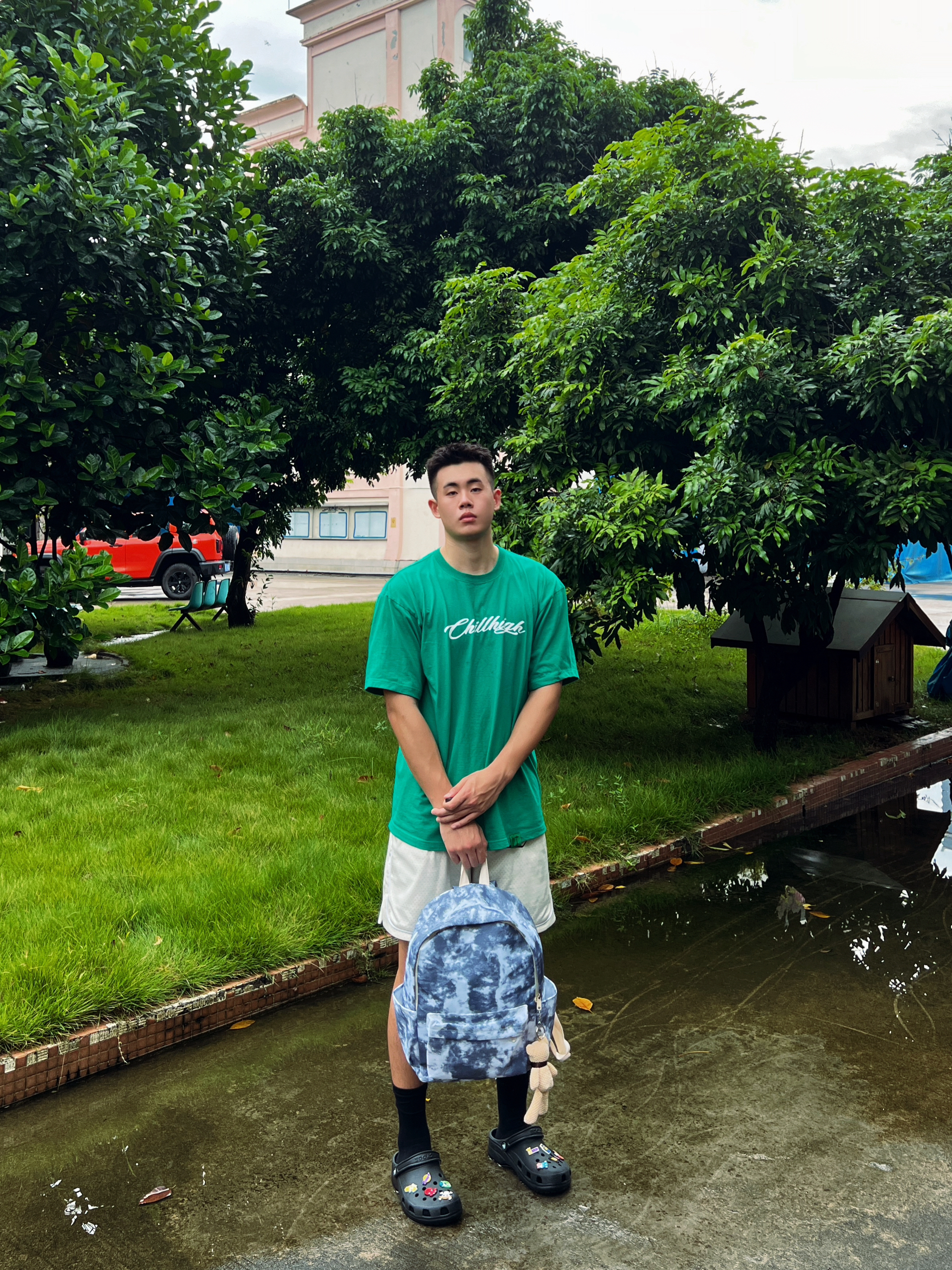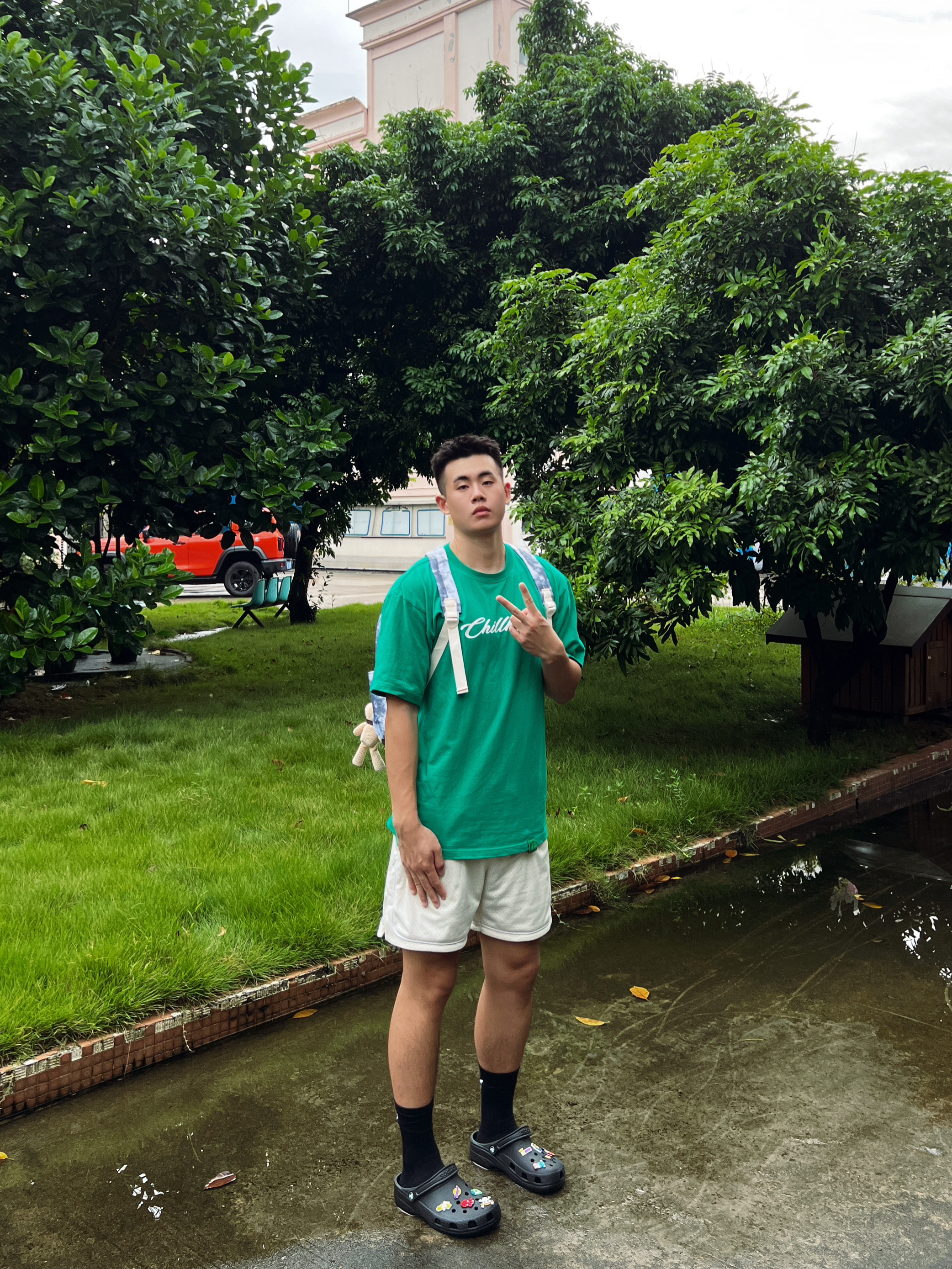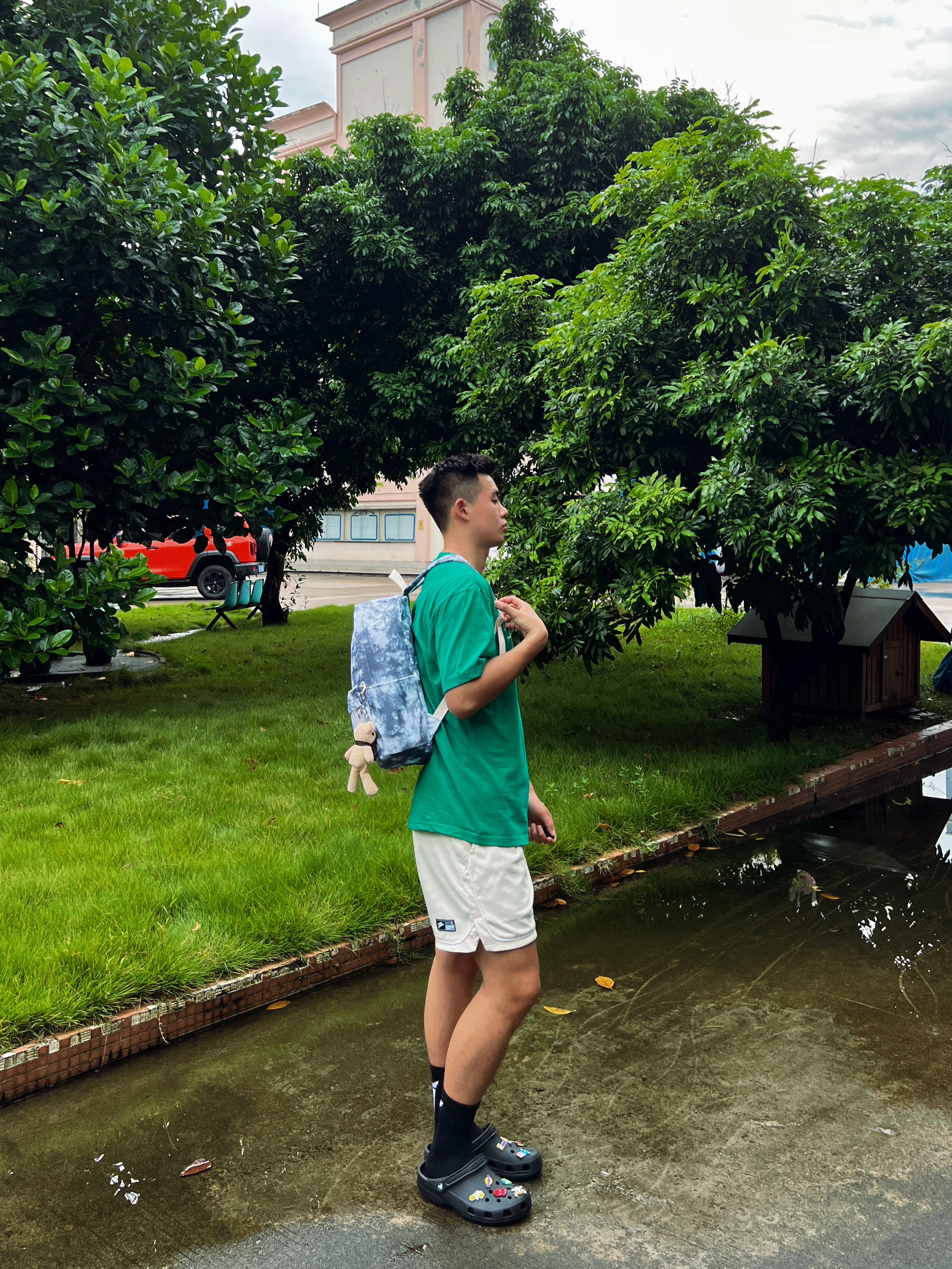 分享一下今日的穿搭,一件绿色基础短袖,简约宽松的版型,这个颜色很复古,搭配一件米白色的短裤,呼应一下,短裤是不过膝盖的设计,显腿长,搭配一双CROCS的洞洞鞋,出门玩舒服又透气,这样一身你打几分?喜欢的话可以参考一下。