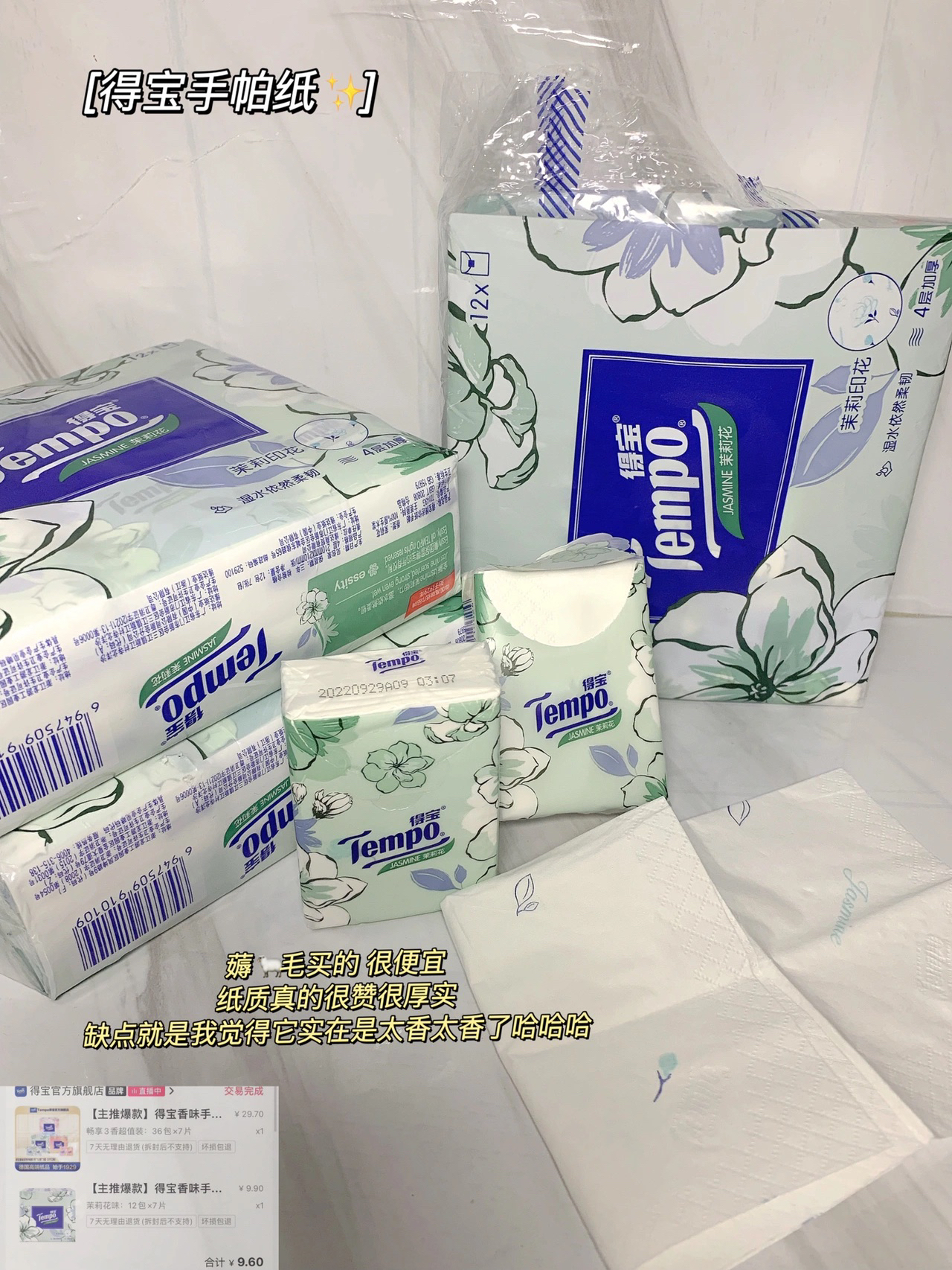 本篇笔记关联了Tempo/得宝 夏季限定夏野茉莉 7张/包 手帕纸加厚印有香印花 便携式无香茉莉花香 香味 12包、实在巧 奶皮系列 湿厕纸 袋装 擦屁股 基础色等商品,为用户提供真实的使用体验和购买参考。