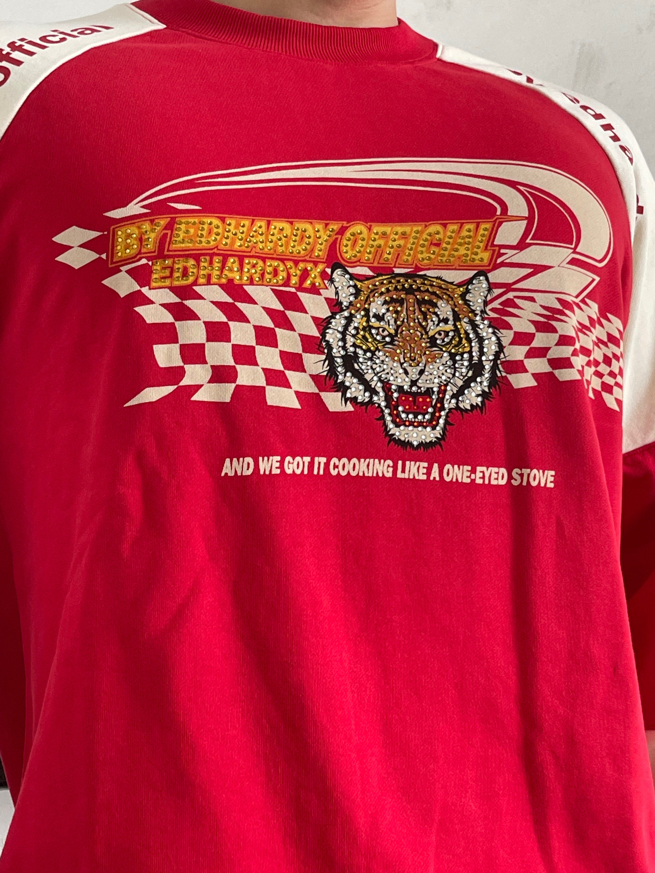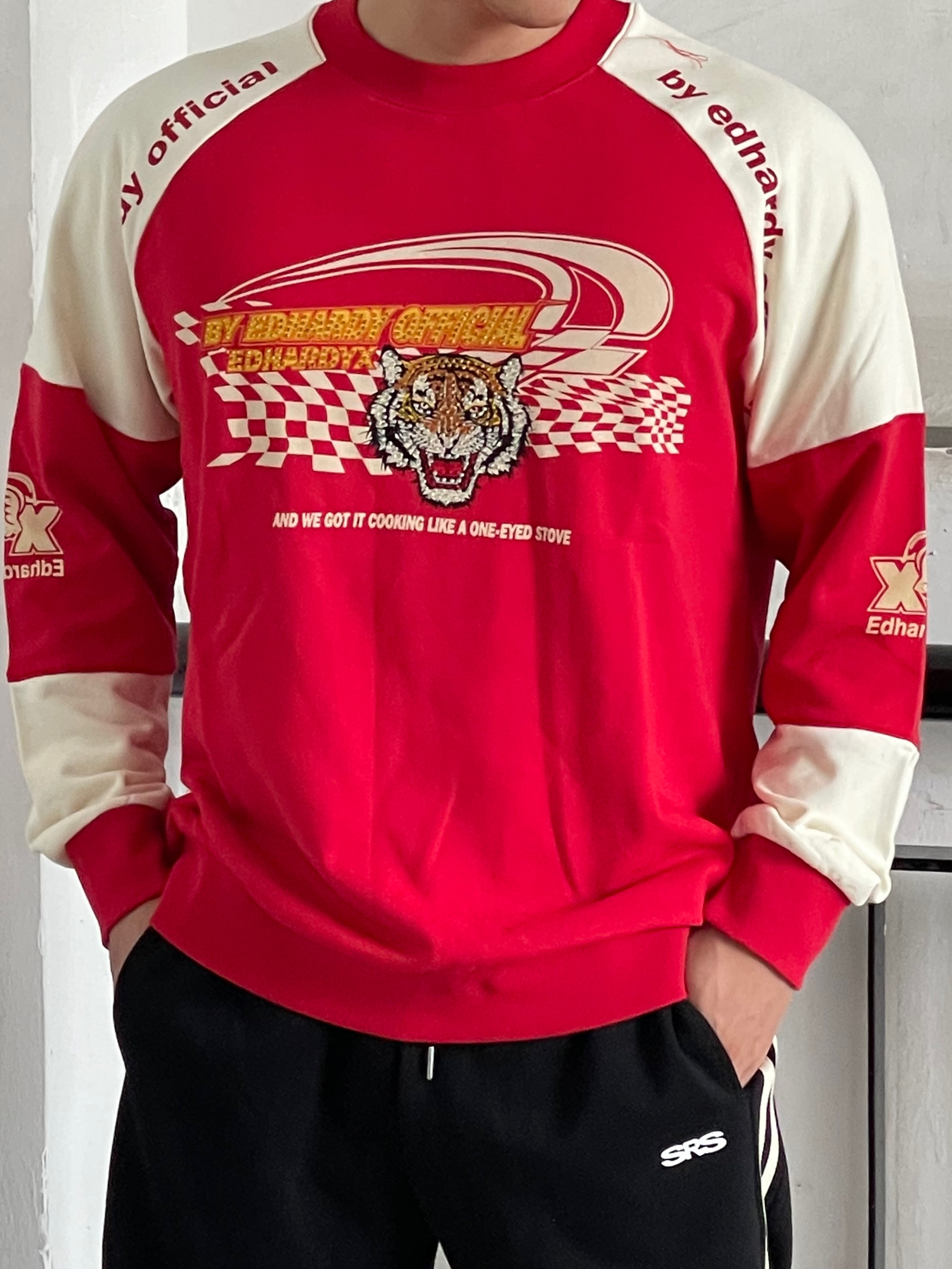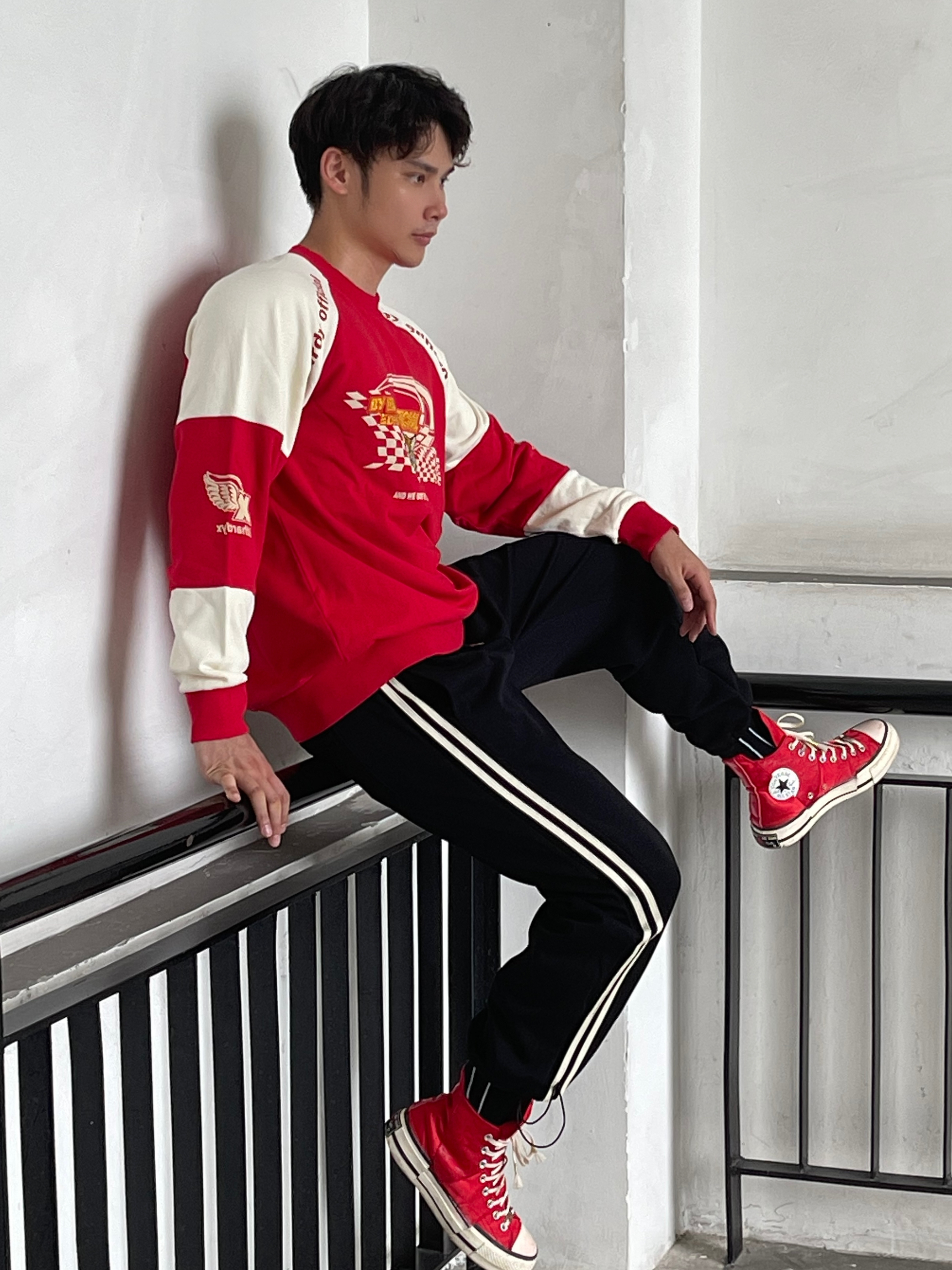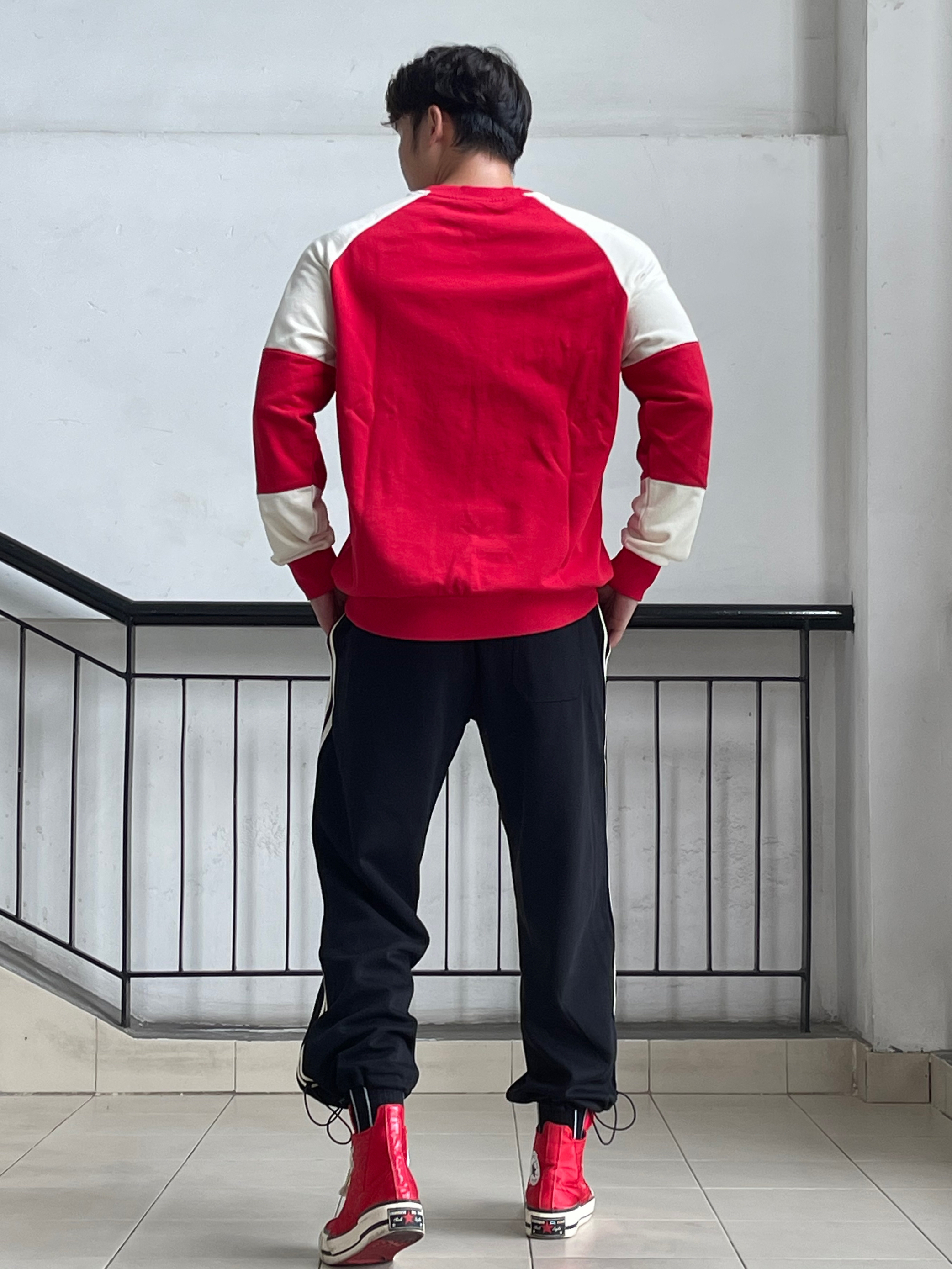 目👀测今年秋冬男生穿搭要被红色系承办了 这还不该火🔥吗❓ 红色系卫衣不仅提气色 简约里还透漏着高级feel👌🏻 就是普通人穿起来都会很好看的色系😍 真的不允许🈲帅哥们没有红色系的搭配 当然,也可是像我这样尝试一下红色➕黑色 🔴⚫️搭配也真的很可以‼️ —————— 卫衣:ED HARDY X 束脚裤:SRME 👟:匡威兔年限定
