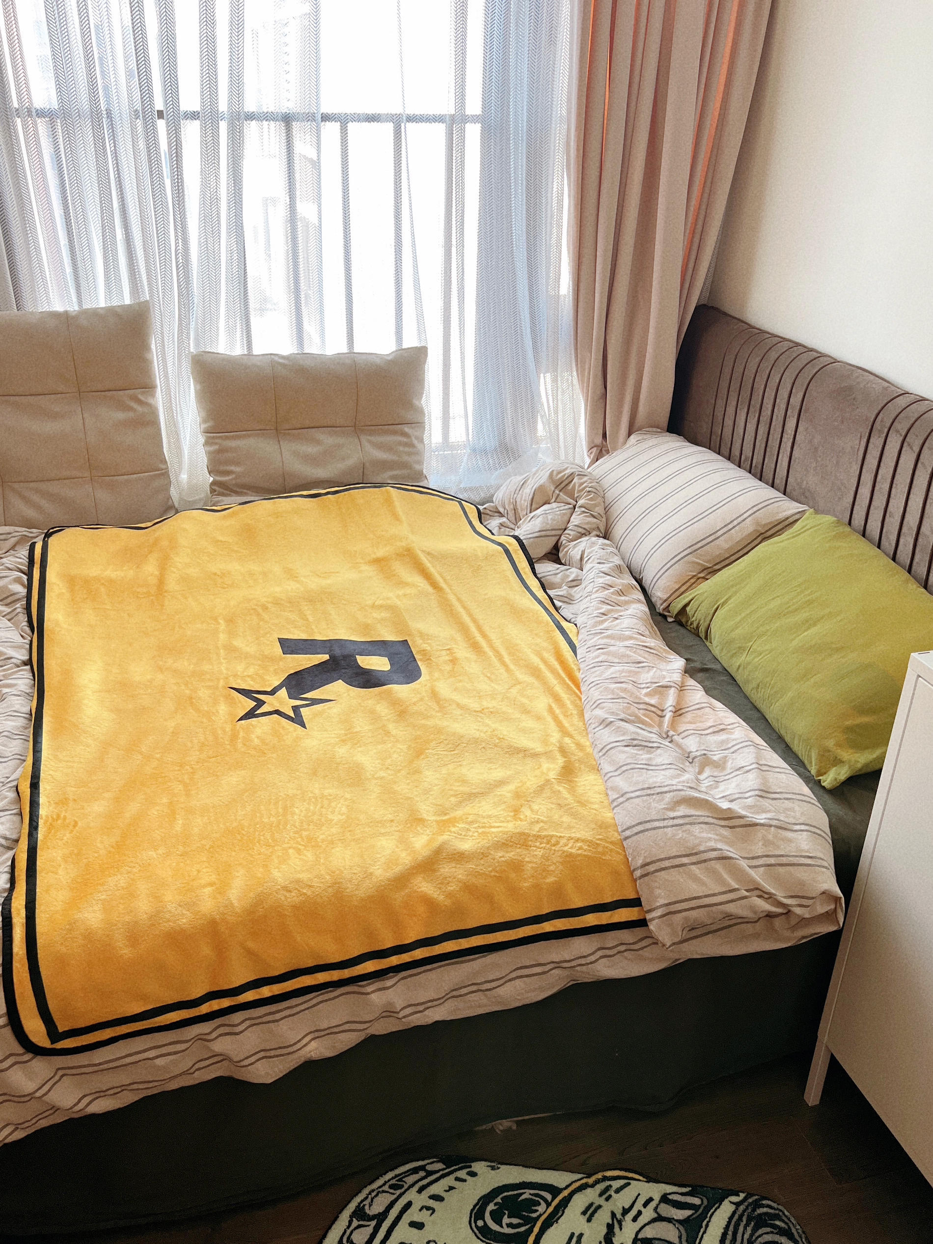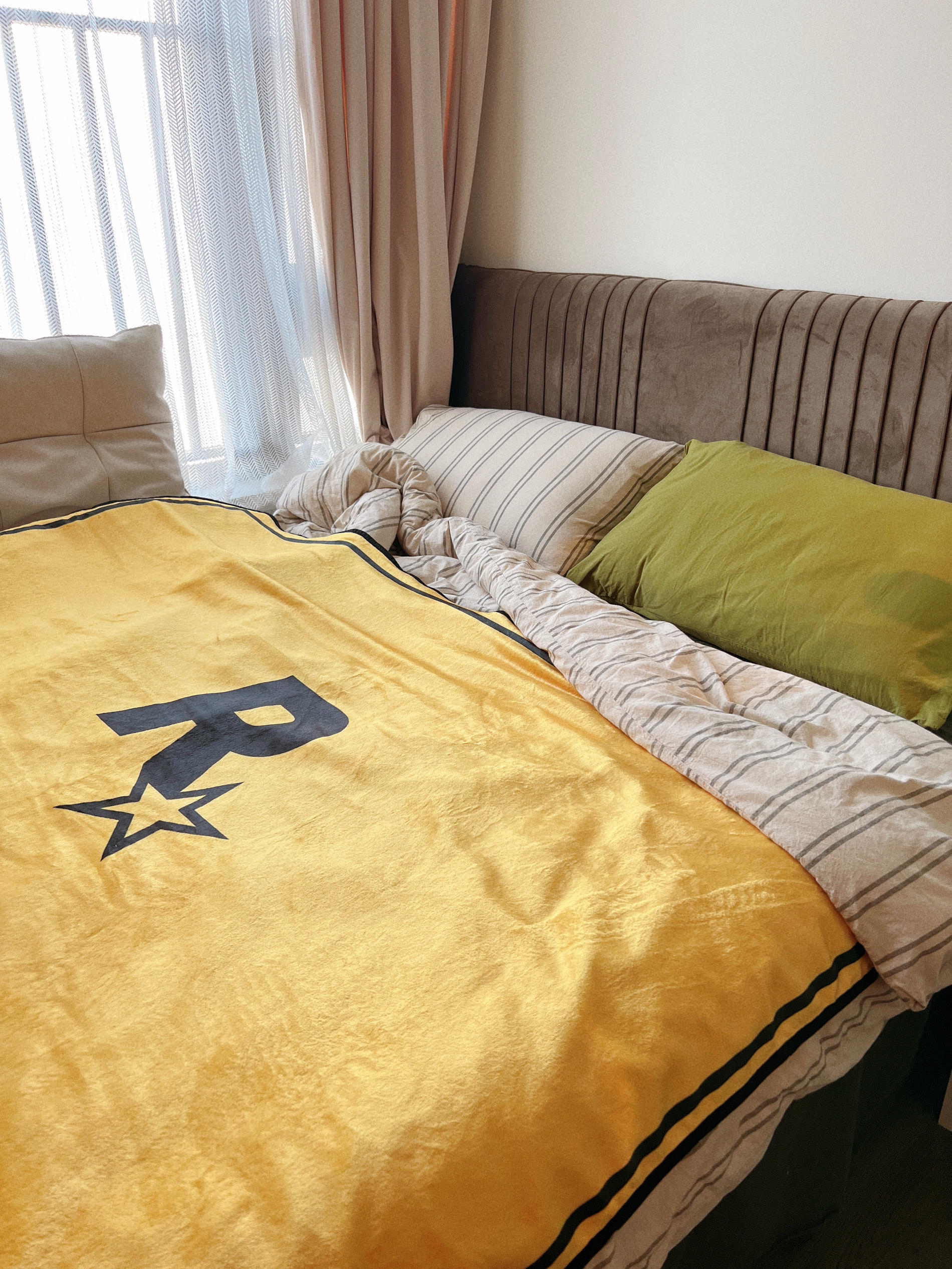 ⭐️R星主题的空调毯get‼️软软糯糯的手感,空调房里当盖被很是实用~这一抹亮黄是点睛之笔,点亮了💡整个房间的色调 盖上好看的毯子追剧刷手机简直不要太享受😎